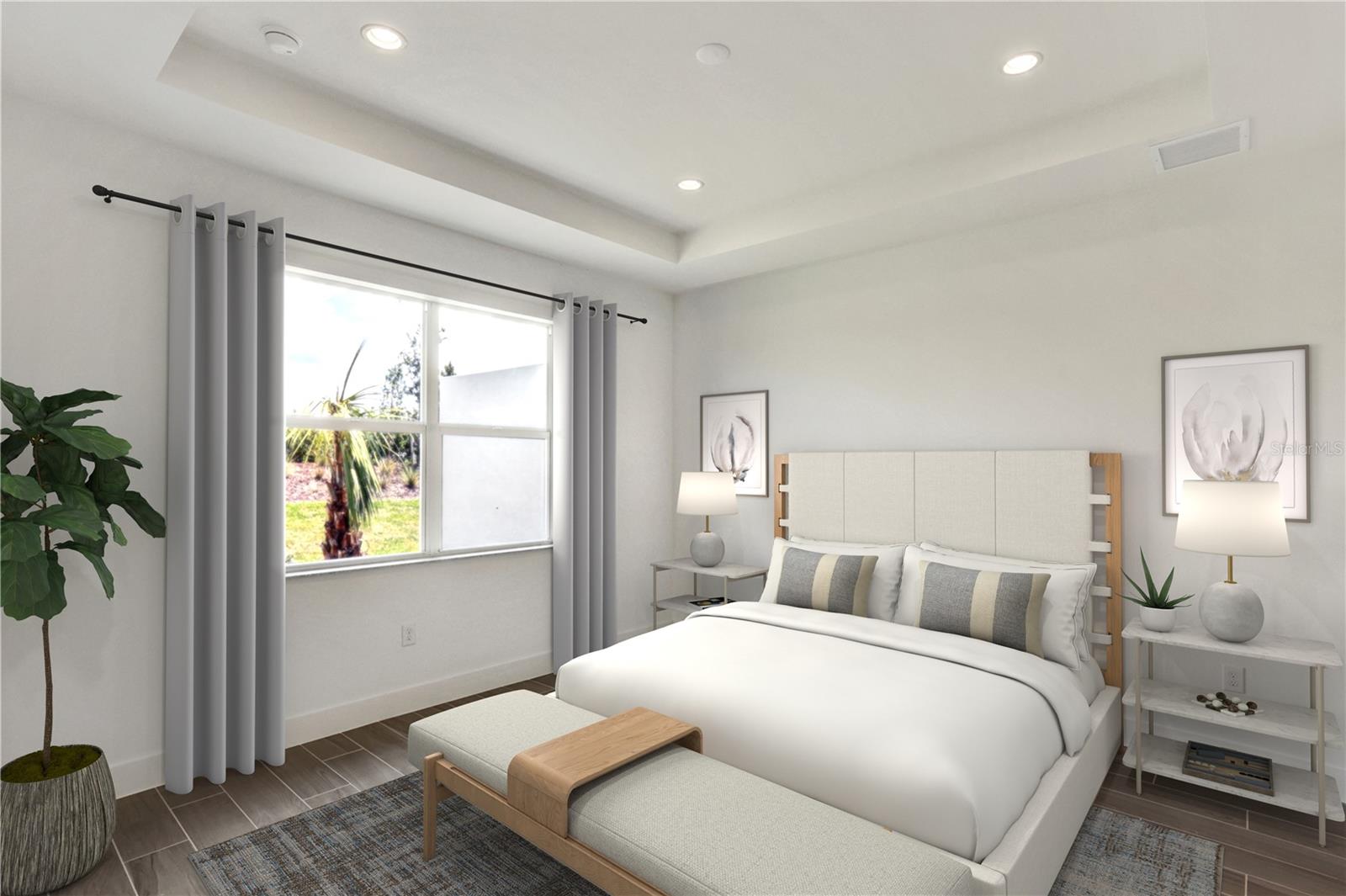 MOVE-IN READY NEW CONSTRUCTION VILLA! Located in the ever-growing and innovative Babcock Ranch master-planned community. This 1,602 square feet Meranti Coastal quick move-in paired villa includes three spacious bedrooms, two full bathrooms, and a large two-car garage. This home features upgraded architectural elements including two tray ceilings in the primary bedroom and great room creating luxurious 10' tall ceilings in your main living areas. Your home includes upgraded grey, tile flooring throughout your entire house, no carpet in ANY rooms! In your gourmet chef's kitchen we have hand-picked your design selections to include beautiful, upgraded Viatera quartz countertops, soft-close Pivot cabinets and drawers, Kohler pull-down sink faucet and a large, stainless steel, farmhouse Kohler sink! Your home includes Whirlpool appliances including refrigerator, dishwasher, gas oven, and range microwave. Step outside through your 8' tall sliding glass doors to your amazing outdoor living area with pre-plumbing for your future outdoor kitchen station underneath your shaded, covered lanai with screen enclosure. Inside your luxe primary bathroom includes upgraded Viatera quartz countertops, upgraded soft-close Pivot cabinets and drawers, Kohler porcelain double-sinks and faucets, a spacious walk-in shower with beautiful, upgraded shower floor and wall tile, a large pull-out glass door and upgraded Kohler shower head and nozzle. Don't forget about your spacious walk-in laundry room with side-by-side Whirlpool gas dryer and washer. Hurricane impact glass windows and doors throughout your entire home creates adequate safety during hurricane season. Regency at Babcock Ranch in Punta Gorda, FL is the only gated 55+ community for active adults within the desirable Babcock Ranch master plan, offering low-maintenance luxury home designs in a serene setting with exclusive resort-style amenities. Brand new construction home, up to all the latest building codes with builder warranty.