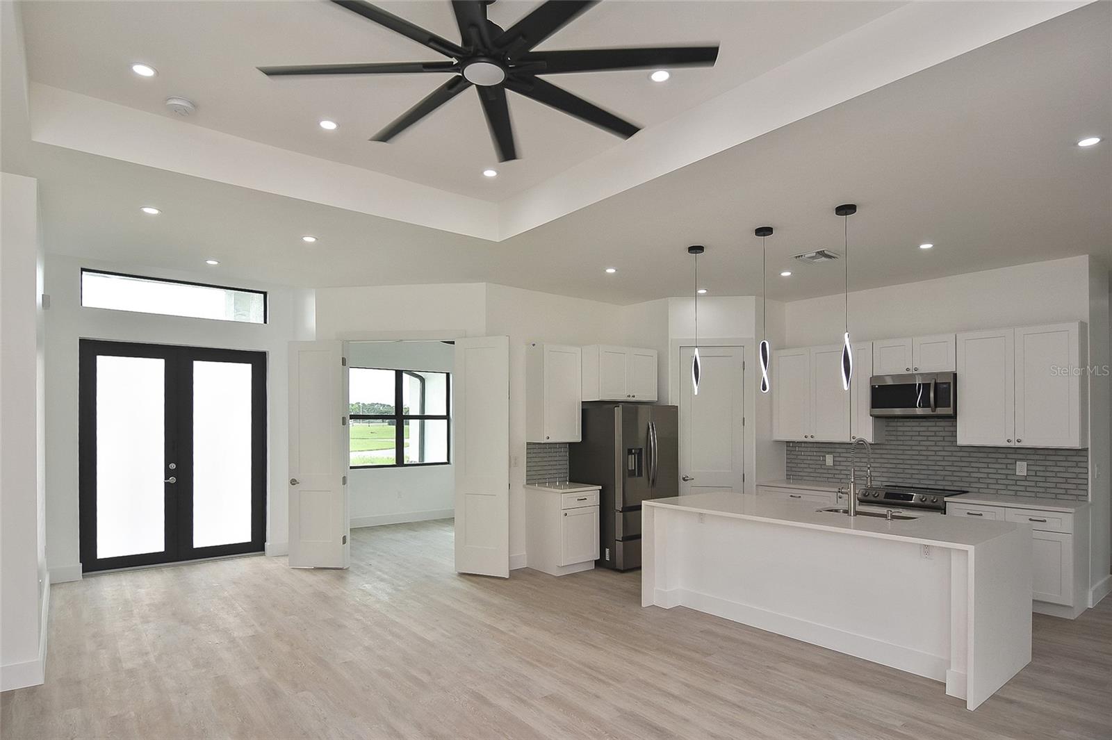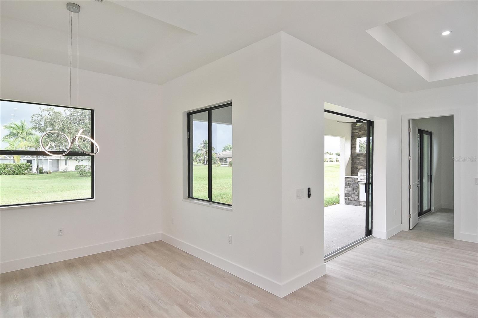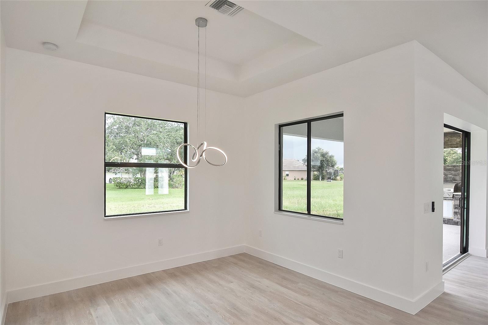 PRICE IMPROVEMENT !! PRICED TO SELL! FANTASTIC HOME IN BURNT STORE LAKES. This builder has added many new touches of excellence. 4 Bedroom or 3 Bedroom with Flex room. 2 Full Baths 2 car Garage with Flex Painted Flooring. Enter the Grand Double Doors to see High coffered ceilings, all Elegant LED Lighting. This home offers a true open floor plan with high-quality Samsung appliances soft close cabinetry, a custom kitchen backsplash, and a large Island with electricity for your convenience. The laundry room has a beautiful matching front-load washer & dryer. Find an Extra Bonus Storage Cabinet adjacent to the laundry and kitchen. Double glass pocket doors lead from the living area onto the large covered lanai. You and your guest can enjoy hours of entertainment with your new outdoor kitchen, built-in gas grill wine cooler, and sink and storage. If you want a pool there is room and the builder can quote a price. The whole neighborhood will be repaved est. Early 2025 The Burnt Store Lakes Community has a Homeowners Association with low HOA Fees, including a large pavilion, a picnic area with bathrooms, and a playground area with a jungle gym. Special Kayak/Canoe Launch area with access to Charlotte Harbor. WELCOME HOME TO YOUR NEW NEIGHBOOR. YOU DESERVE IT!