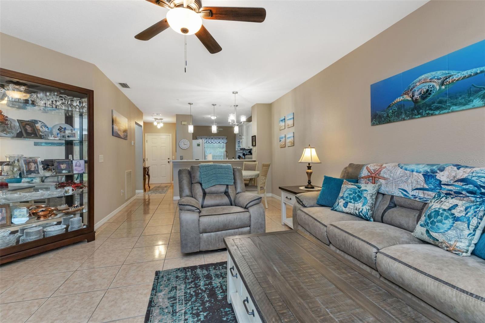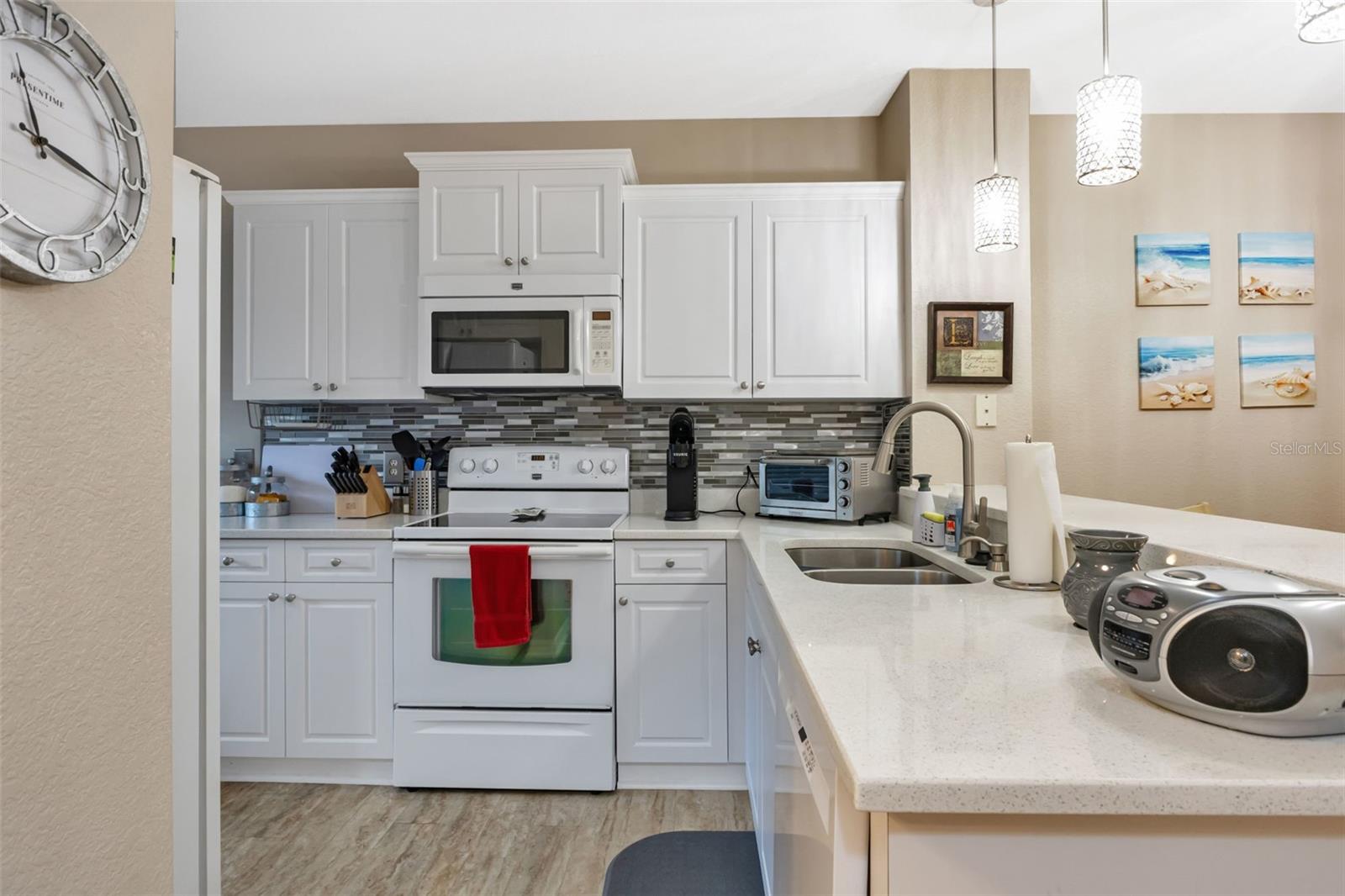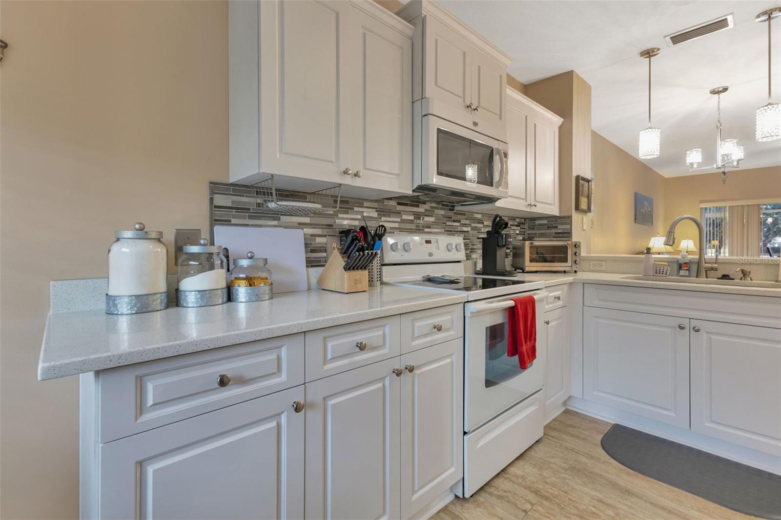 Discover your new home in this well-maintained and spacious 2-bedroom, 2-bathroom ground floor condo, which combines modern updates with a central location. This charming residence features a new A/C unit (2018), a water heater (2019), and recent updates including a new disposal (2022), a new fridge (2019), and a brand-new dishwasher (2023). The bedrooms boast fresh carpeting installed in 2020, while the kitchen has been beautifully updated with new cabinets, quartz countertops, pull-out drawers, and a new faucet with an undermount sink, all completed in 2024. The master bath has also been recently renovated, featuring new cabinets with pull-out drawers, quartz countertops, an undermount sink, and a new faucet, all updated in 2024. The guest bath received a stylish upgrade in 2023 with a cultured marble countertop and an undermount sink. A highlight of this condo is the large 10x15 lanai that overlooks two tranquil ponds, providing a perfect spot to relax and enjoy your morning coffee. Situated in a gated community, this home offers peace and security, making it an ideal choice for comfortable living. From swimming in the pool to playing pickleball or tennis, there is a lot to keep you occupied without leaving the community. Come see it today and experience all it has to offer!