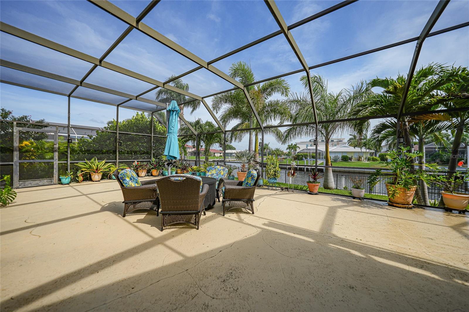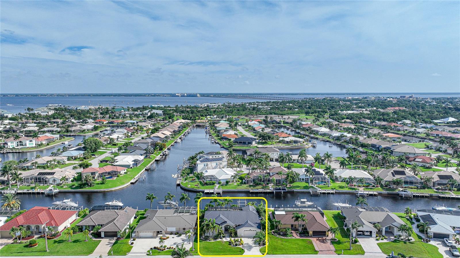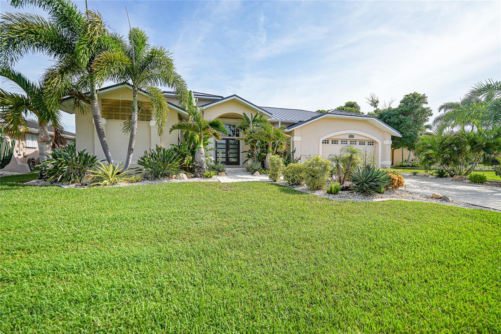 Welcome to your dream waterfront home in the highly coveted Punta Gorda Isles! This exceptional move-in-ready property boasts everything you’ve been envisioning for luxurious, waterfront living. This stunning residence offers 3 spacious bedrooms, 2 well-appointed bathrooms, and a 2-car garage, all gracefully positioned on a picturesque canal with direct Gulf Access. Step outside to your private 45-foot concrete dock, featuring water and electricity, a 10,000lb boat lift, and a concrete seawall maintained by the City of Punta Gorda. With these premium features, you'll enjoy effortless access to the Gulf of Mexico. Recent enhancements include a new metal roof and a Generac Generator, ensuring peace of mind and durability. Upon entering, you are greeted by double doors leading into a bright and airy living room, accentuated by vaulted ceilings and elegant tiled floors throughout. The expansive sliders offer breathtaking views of the lanai and canal, seamlessly blending indoor and outdoor living. Host unforgettable gatherings in the formal dining room, or prepare meals in the gourmet kitchen, complete with abundant cabinetry, granite countertops, a breakfast bar, built-in desk, an island, a walk-in pantry, and high-end stainless-steel appliances including a new induction range. The kitchen flows effortlessly into the family room, where you can savor stunning canal views. The master suite is a serene retreat, featuring a bay window, a cozy sitting area, plush carpeting, and private access to the lanai. The luxurious ensuite bathroom boasts dual walk-in closets, an L-shaped vanity, a soaking tub, and a separate shower. The thoughtful split bedroom floor plan offers privacy for guests with two additional bedrooms and an updated second bath. The expansive screened-in lanai is perfect for entertaining, complete with a new tiki bar, fresh tile flooring, a remote-controlled awning, and panoramic water views. There's ample space to add a hot tub, enhancing your outdoor living experience. Additional features include public water and sewer, no HOA fees, fresh window treatments with remote blinds, and a convenient laundry room with newer appliances. Don’t miss this incredible opportunity to own a slice of paradise. Schedule your showing today and discover all the exceptional features this waterfront gem has to offer!