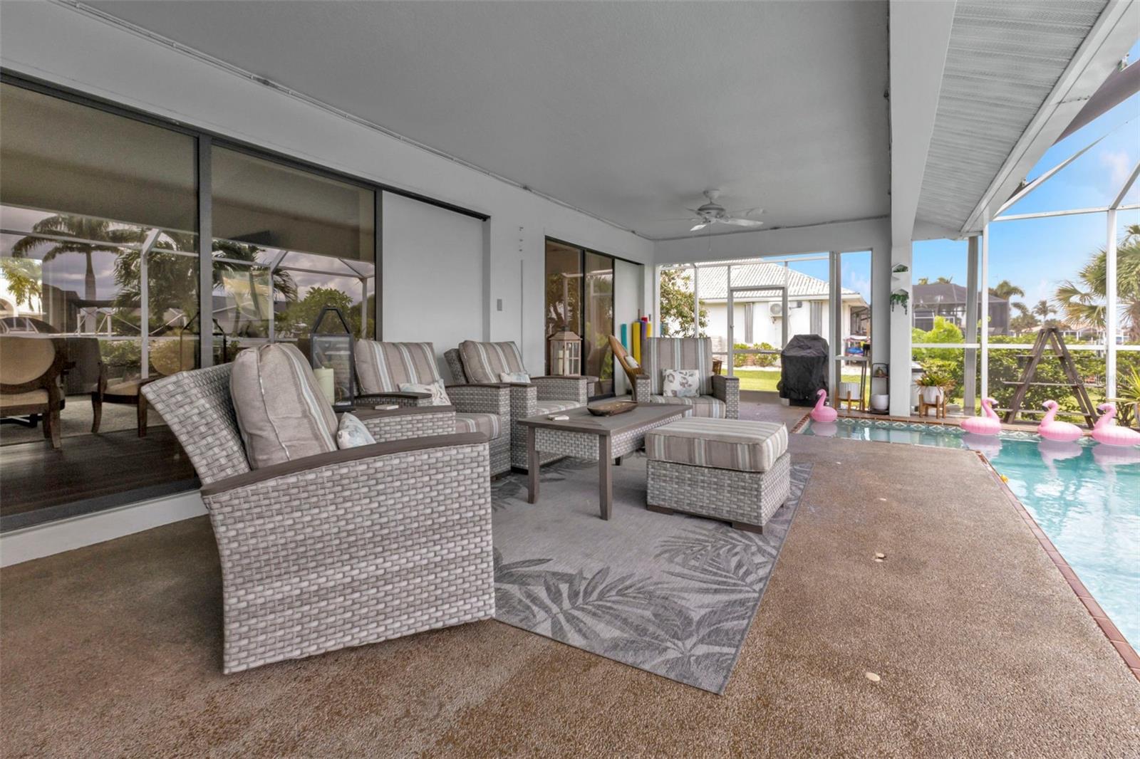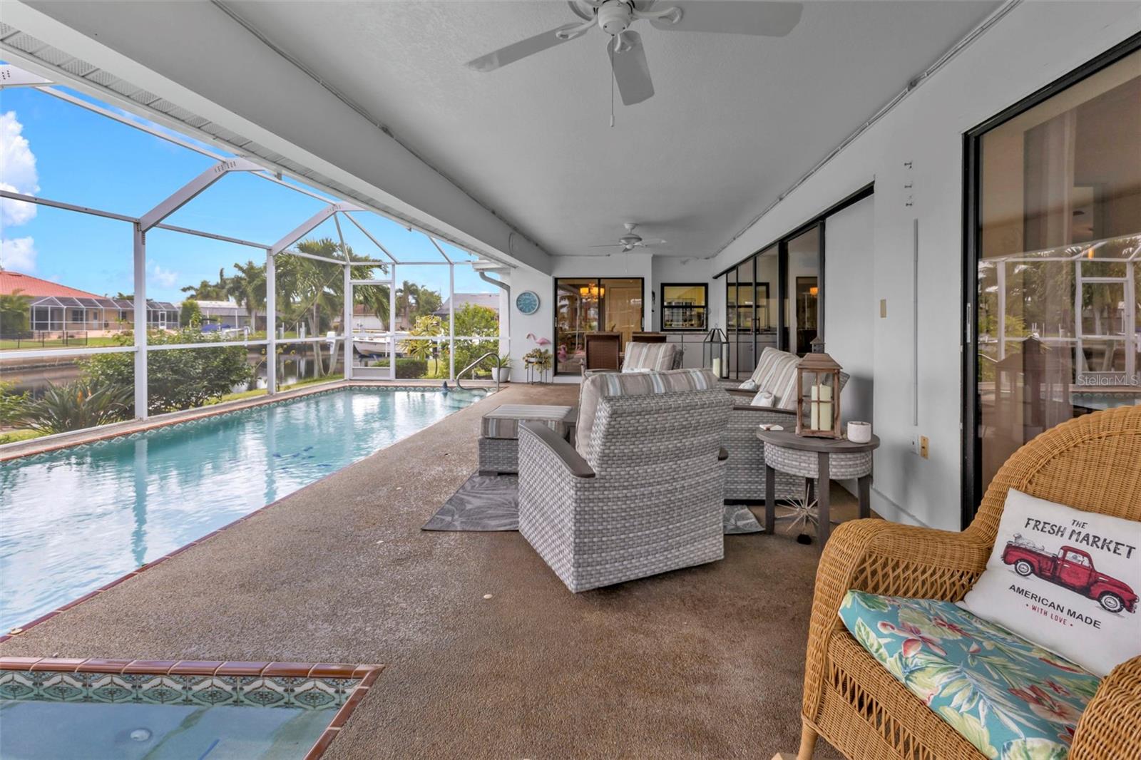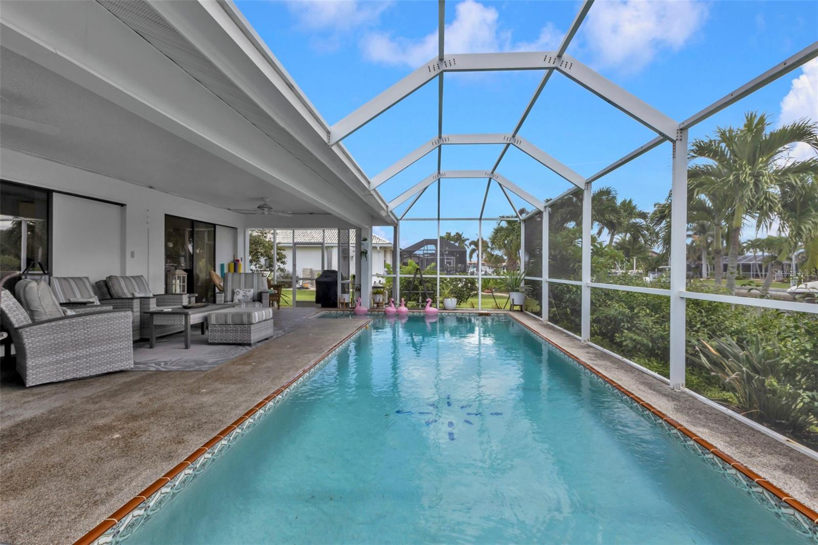 Great opportunity to own a beautiful home in Florida! This spacious 3 bedroom 2 bath home pool home has a little more than the average Punta Gorda Isles house, it has 100' of seawall to expand or just enjoying a bit of privacy. This home has impact windows and rubber coated "barrel tile" METAL ROOF which gives a traditional look to the roof and can stand up to any foul weather. This open concept home has wonderful flow for entertaining. When you open those 16' sliding doors to enjoy the breezes and beautiful smell of all the exotic blossoms that surround you you'll want to live right here in this home. Make an appointment and see what this home has for you!. You won't be disappointed.