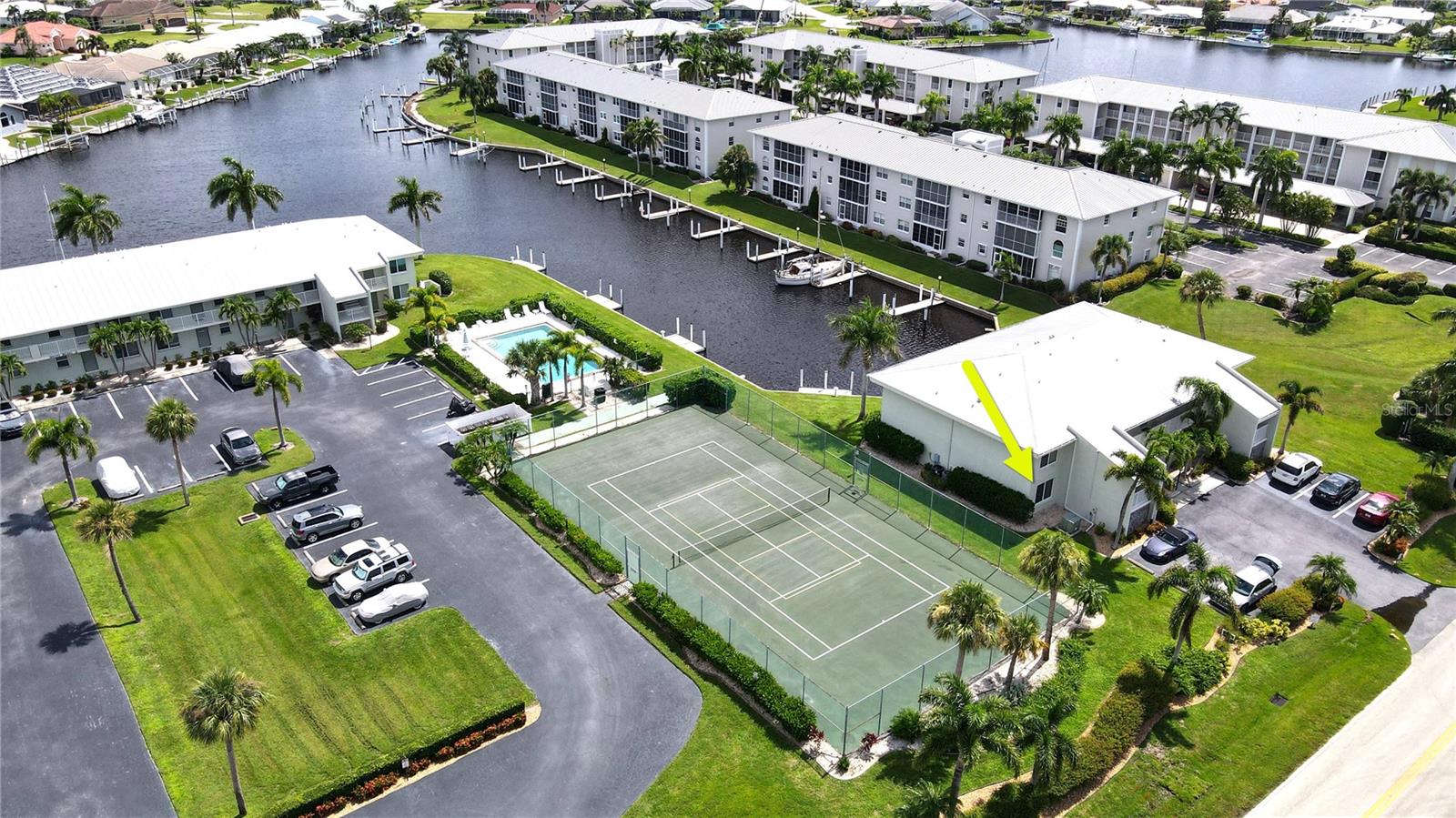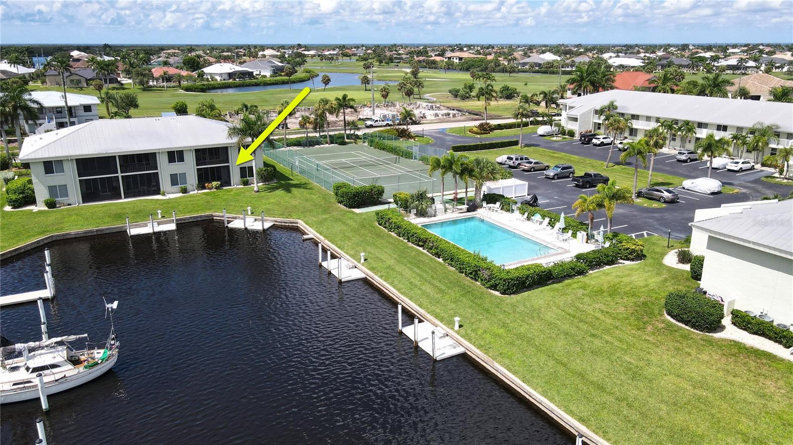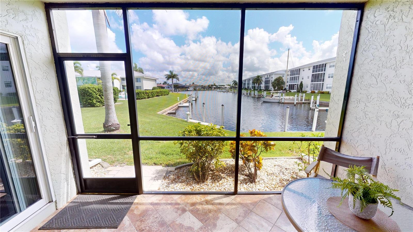 PUNTA GORDA ISLES WATERFRONT – MAINTENANCE-FREE LIVING! AVAILABLE FOR SEASONAL RENTAL....CALL FOR DETAILS! WOW – Incredible value for true waterfront! Park your boat right in your backyard. Discover the best of coastal living in this charming 2-bedroom, 2-bath waterfront condo, perfect as a tropical Southwest Florida getaway or an easy-care option for downsizing. The open floor plan and tile flooring throughout the main living area create a bright atmosphere ideal for both relaxing and entertaining. Wake up to tranquil waterfront views from your screened lanai, or take off from your deeded concrete dock for a quick trip to Charlotte Harbor and the Peace River. Boat lifts are permitted with board approval. Impact windows, interior laundry, and TURNKEY furnishings (with a few exceptions) make moving in a breeze. Maintenance fees include water, sewer, and trash—only interior insurance is needed. Located across from St. Andrews South Golf Club and minutes to shopping, dining, and all the charm of Punta Gorda, this home offers the perfect balance of convenience and lifestyle. Don’t miss your chance to own a slice of waterfront paradise!. ****Please enjoy the 3D Virtual Tour****