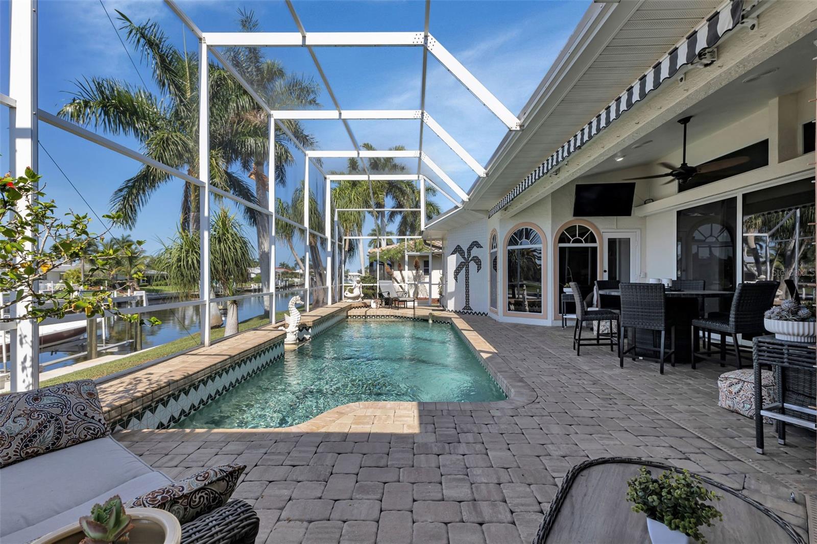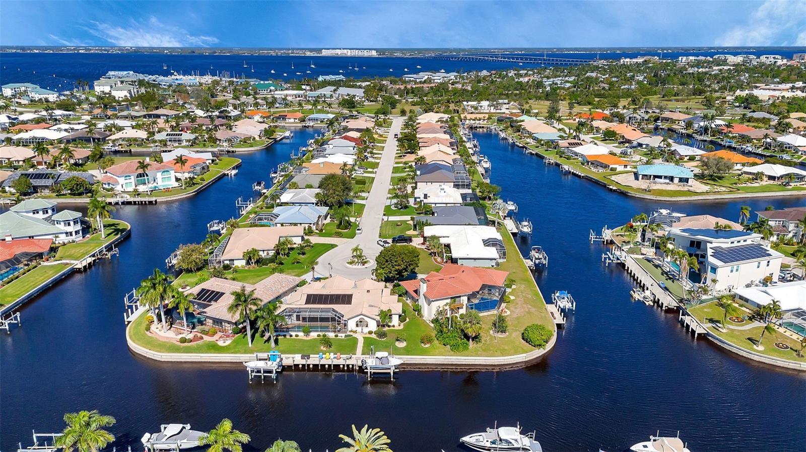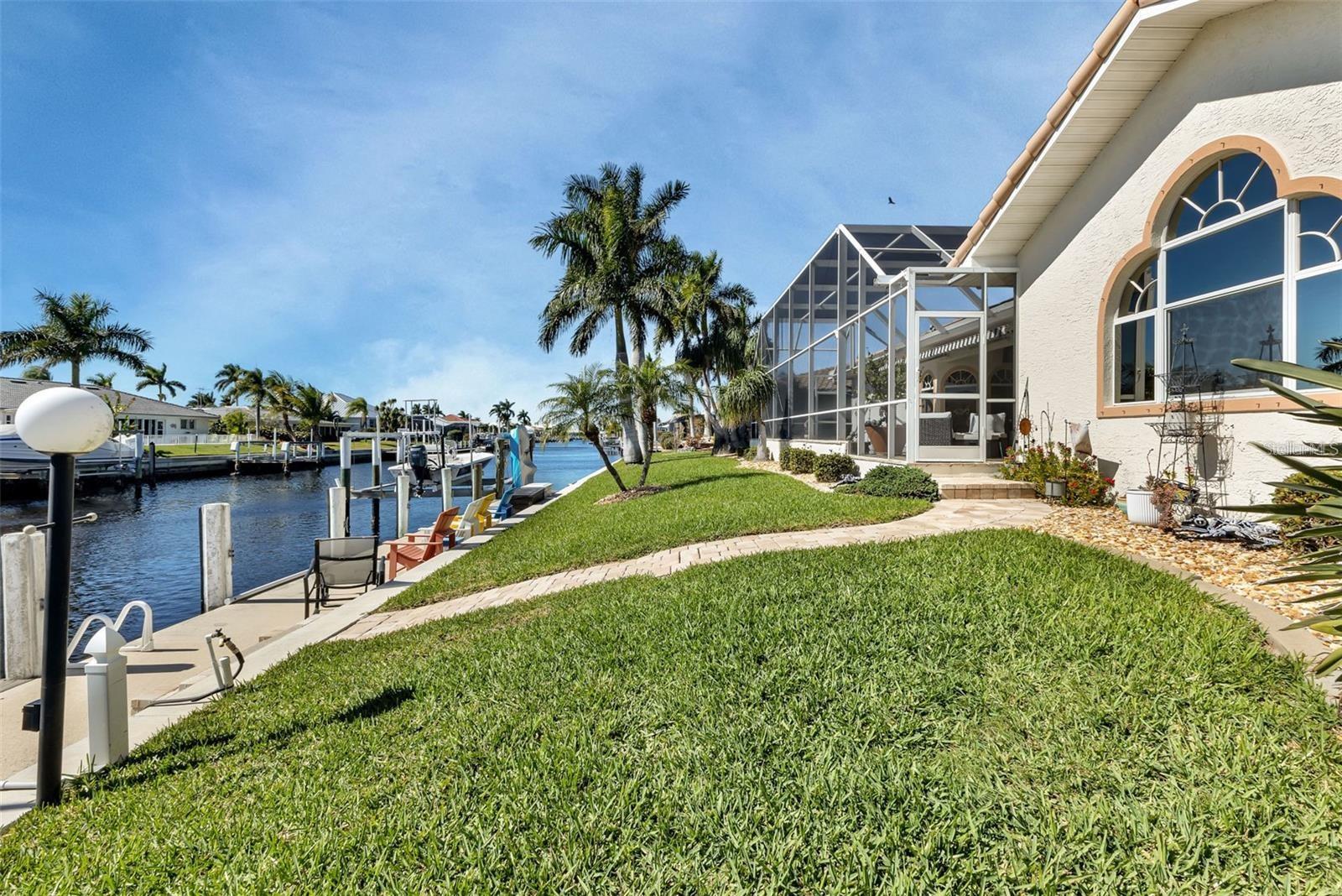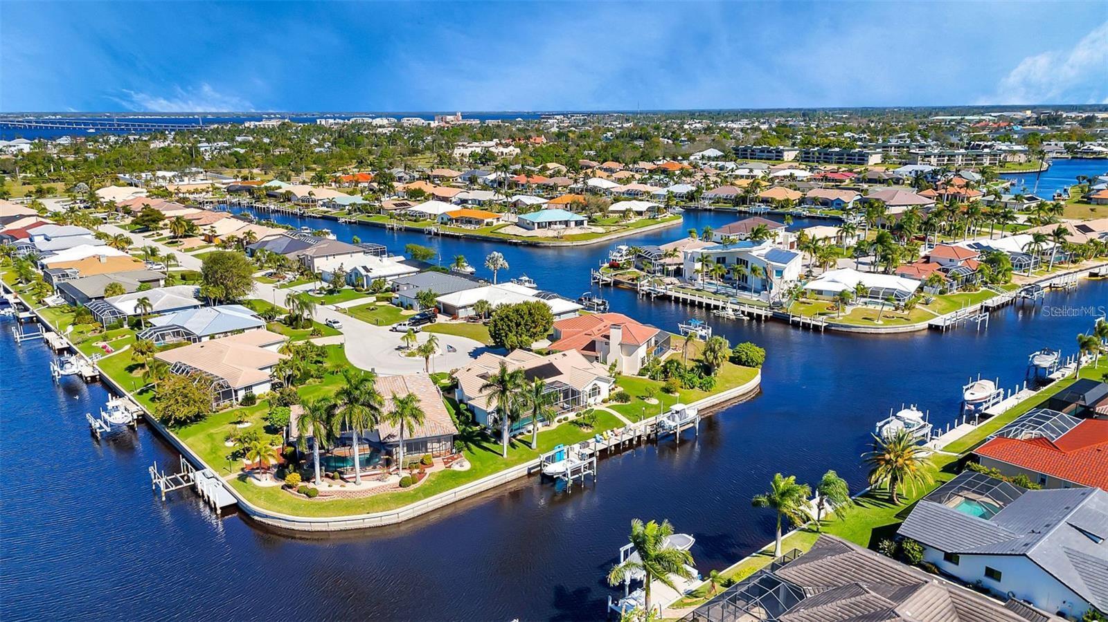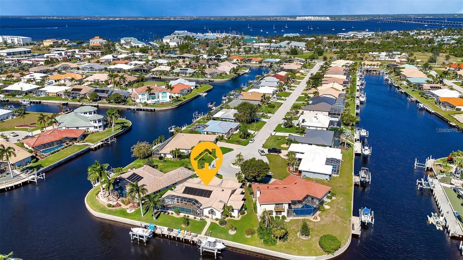 What an amazing location on & off the water in the sought after community of Punta Gorda Isles! 140ft of concrete seawall offers a 5 minute powerboat access to Charlotte Harbor leading to the Gulf of Mexico. Your boat will rest comfortably on 2 lifts to pick from, a 10K & 20K. Fisherman's Village, a Punta Gorda favorite, is very close in proximity! It is just a short bike ride or walk away to explore! The hallmark of this home is the unobstructed captivating views worth a million dollars! Dramatic outdoor living with an expansive lanai and pool creating a spectacular backyard paradise! Southern facing with a remote controlled awning to provide the ultimate of shade. Fero built so enjoy the architectural details spanning from the interior to the exterior. Kitchen complete with granite and stainless steel appliances. With plenty of cabinets, counters, and a walk in pantry, there is no shortage of space for the chef in the family! Expansive great room, perfect for entertaining. Exquisite dining room for large family gatherings. Cozy as can be sunlit family room to unwind. Split floor plan for the ultimate of privacy for guests and owners. Unparalleled workmanship throughout creating a harmonious balance of style, space, and custom designed features. Punta Gorda is a vibrant waterfront community with a connected and relaxed lifestyle. Running for two & a half miles along the beautiful Charlotte Harbor shoreline, Harbor Walk connects Bayfront Health to Fishermen’s Village. With Mangrove forests, sweeping vistas, shops, waterfront dining, historical sites, and Laishley & Gilchrist Parks there is always something to see and do along this vibrant pathway.