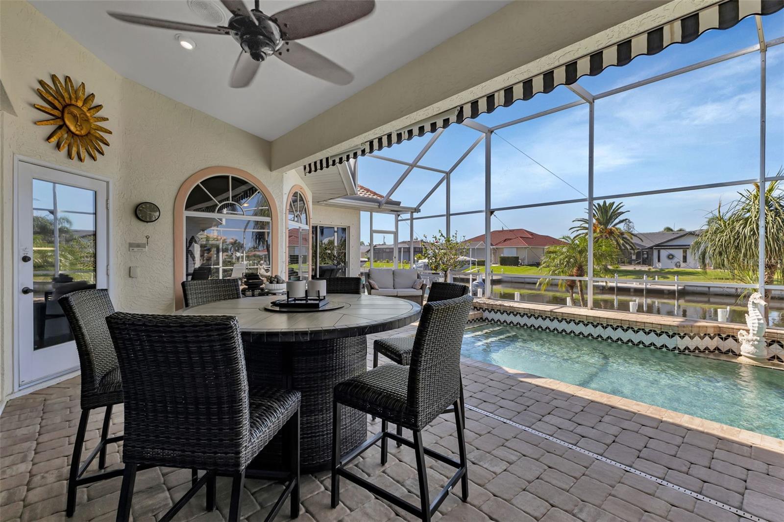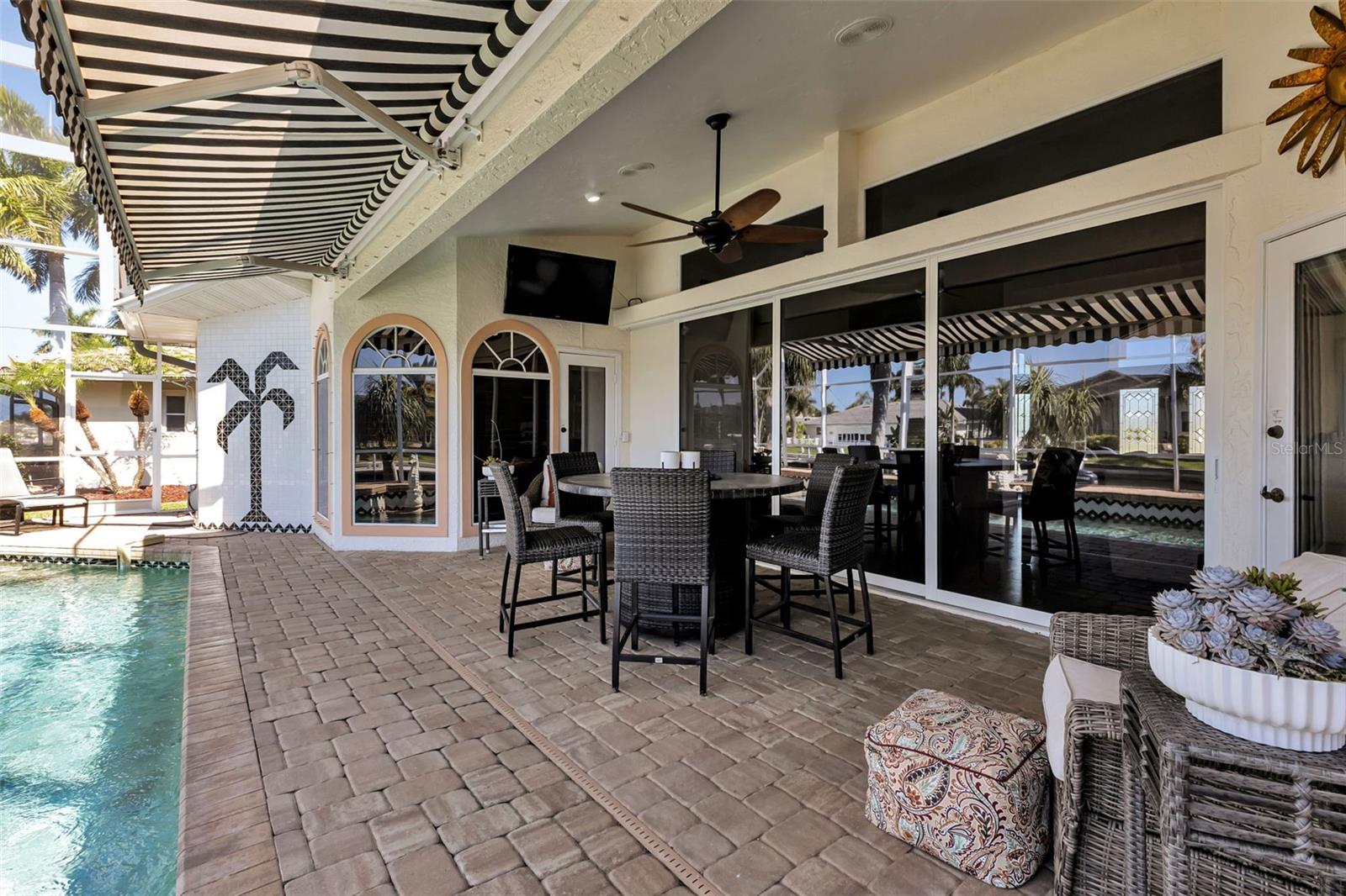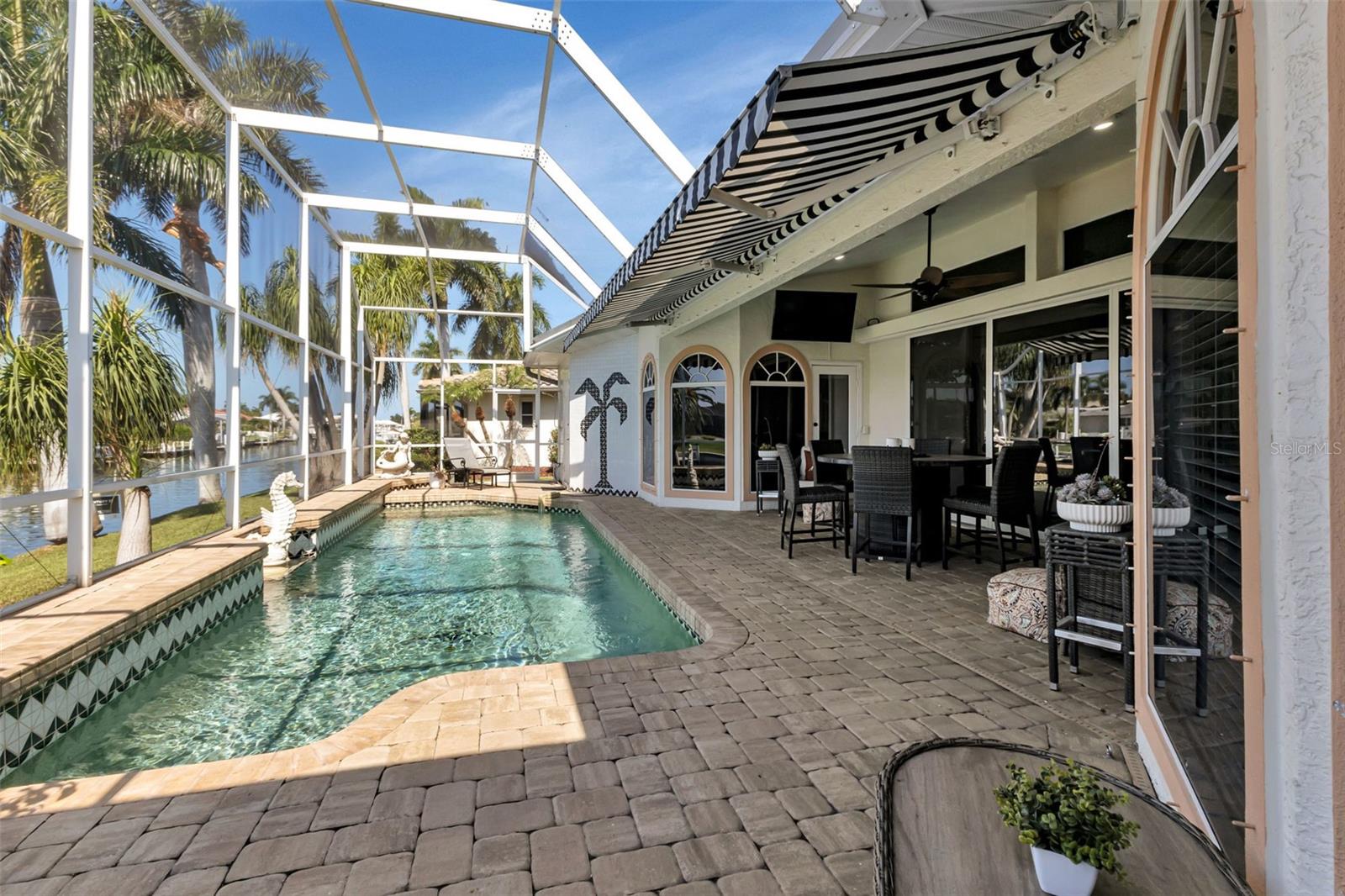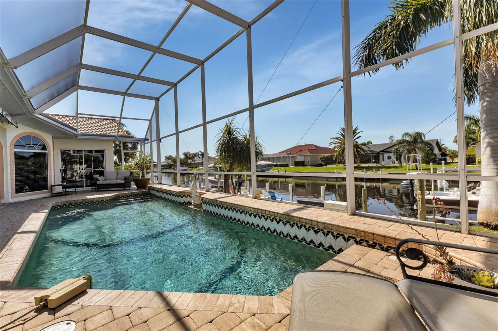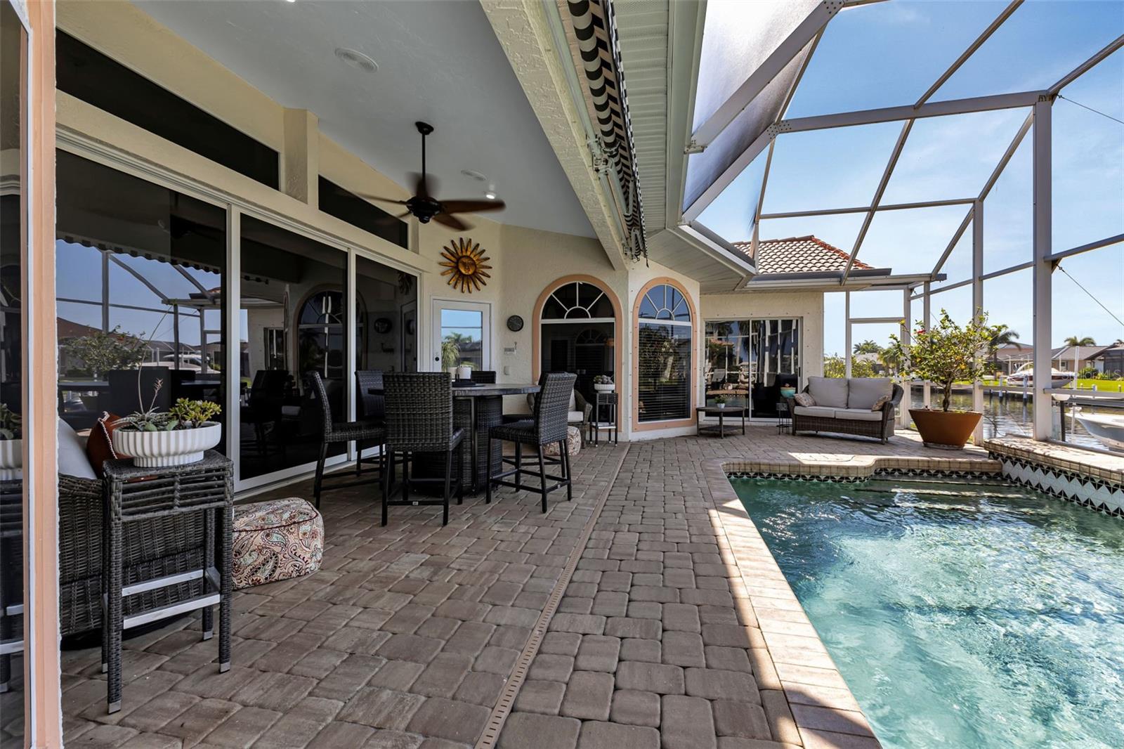 What an amazing location on & off the water in the sought after community of Punta Gorda Isles! 140ft of concrete seawall offers a 5 minute powerboat access to Charlotte Harbor leading to the Gulf of Mexico. Your boat will rest comfortably on 2 lifts to pick from, a 10K & 20K. Fisherman's Village, a Punta Gorda favorite, is very close in proximity! It is just a short bike ride or walk away to explore! The hallmark of this home is the unobstructed captivating views worth a million dollars! Dramatic outdoor living with an expansive lanai and pool creating a spectacular backyard paradise! Southern facing with a remote controlled awning to provide the ultimate of shade. Fero built so enjoy the architectural details spanning from the interior to the exterior. Kitchen complete with granite and stainless steel appliances. With plenty of cabinets, counters, and a walk in pantry, there is no shortage of space for the chef in the family! Expansive great room, perfect for entertaining. Exquisite dining room for large family gatherings. Cozy as can be sunlit family room to unwind. Split floor plan for the ultimate of privacy for guests and owners. Unparalleled workmanship throughout creating a harmonious balance of style, space, and custom designed features. Punta Gorda is a vibrant waterfront community with a connected and relaxed lifestyle. Running for two & a half miles along the beautiful Charlotte Harbor shoreline, Harbor Walk connects Bayfront Health to Fishermen’s Village. With Mangrove forests, sweeping vistas, shops, waterfront dining, historical sites, and Laishley & Gilchrist Parks there is always something to see and do along this vibrant pathway.