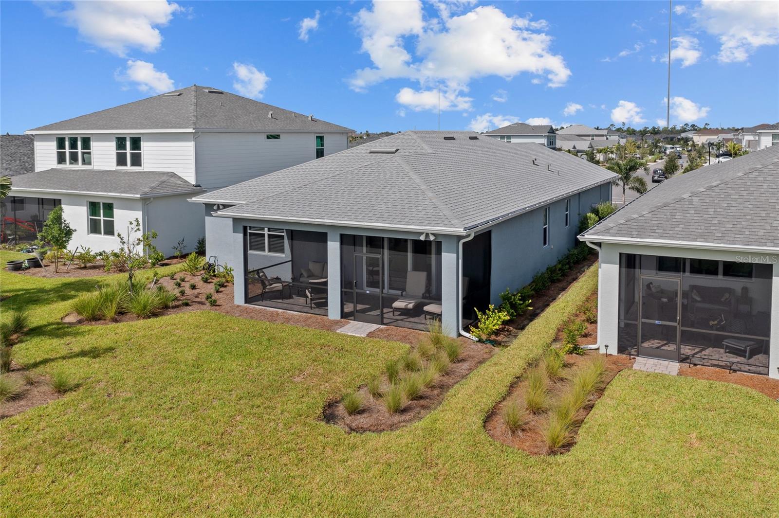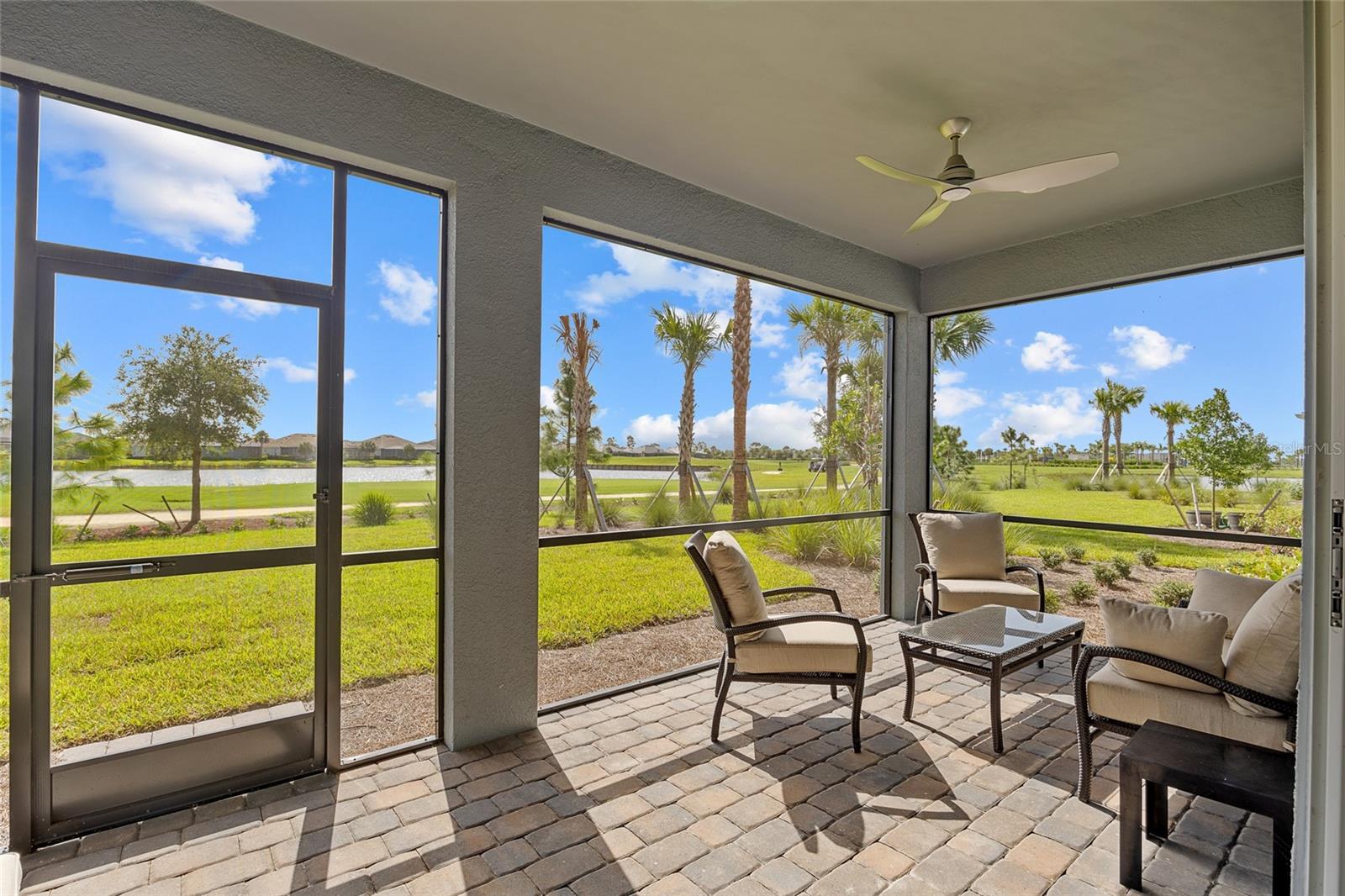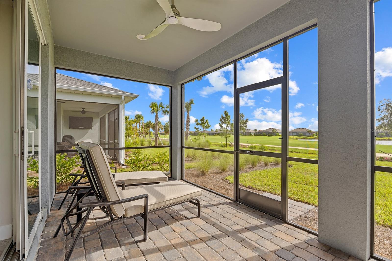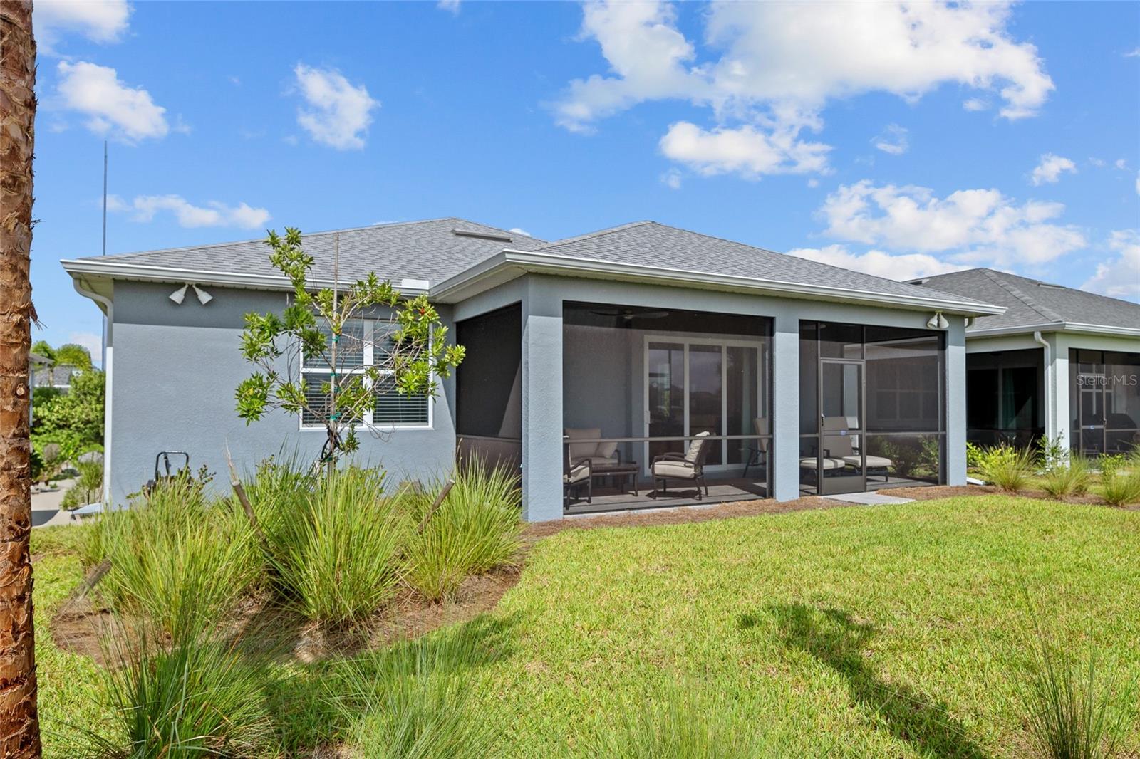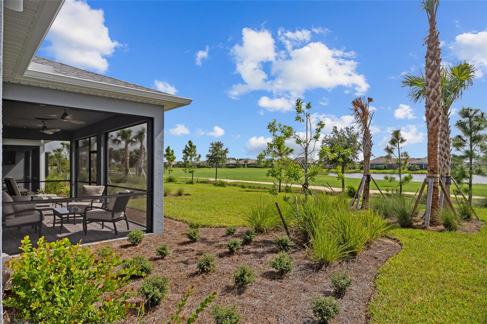 BUILT IN 2023 WITH MANY UPGRADES! POPULAR GATED NORTHRIDGE COMMUNITY IN BABCOCK RANCH! BEAUTIFUL 3 BEDROOM PLUS DEN, 2 BATH, 2-CAR GARAGE HOME LOCATED ON THE 10TH HOLE OF BABCOCK NATIONAL GOLF CLUB WITH LAKE VIEWS! This 1-year old Pulte-built home has been meticulously maintained and features an open floor plan, contemporary décor and lighting, soothing neutral tones, diagonal tile flooring throughout, convenient floor outlets, large pocketing slider to covered screened lanai overlooking meticulously landscaped backyard. Gorgeous well-equipped kitchen boasts upgraded stainless appliances including gas cooktop, built in microwave and oven, tall cabinetry, quartz counters, tile backsplash and center island with breakfast bar. Primary suite features large walk-in closet and private bath with dual sinks and glass walk-in shower. Private hall leads to two guest bedrooms and separate full bath. Additional special features include energy efficient tankless gas water heater, hurricane impact windows, exterior lighting, security package, irrigation system plus generator hookup and extra storage in garage. Low HOA fee includes full lawn and landscape maintenance, internet, community pool plus you have access to parks, nature trails, lakes and other amenities Florida’s first solar powered town of Babcock Ranch has to offer. There is a full social calendar for residents of all ages. If golf is your interest, residents can play at Babcock National Golf Club. Great location between Punta Gorda and Fort Myers for easy commuting north or south. Don’t miss the opportunity! Schedule your private showing today!