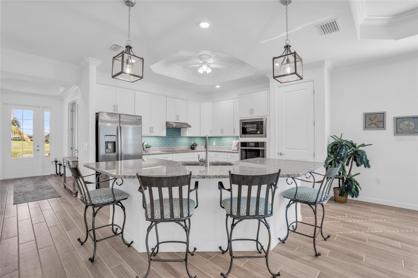 TURNKEY in a resort community! Heritage Landing Golf and Country Club in Punta Gorda, FL is located in the growing Burnt Store Rd area. This like new home is gently used and comes with everything you need to enjoy resort stye maintenance free living. Make it your winter getaway or investors this could be a great income opportunity since it is ready to move right in! The home features 2 Bedrooms Plus a Den with pullout sofa, two full baths and a half bath off the Lanai where you will enjoy your Florida living. The Lanai also features a bult in BBQ grill and plenty of entertaining space as you look out over the 9th green of the golf course. Inside the kitchen features Shaker cabinets, Backsplash, Stainless GE Profile Appliances, above and below cabinet lighting and plenty of Granite countertops space. The Main Bedroom comes with a King Sleep Number Bed for your restful enjoyment and has two closets and an on-suite bathroom with separate shower and tub plus dual sinks and a private water closet. The second bedroom is set far enough away for guests to have privacy with a second bath nearby. The Den is great for additional guest space or for work from home. Enjoy a peaceful view of the lake across the street during your zoom calls. The open floor plan with tile wood look plank flooring and crown molding presents a luxury feel to the home. The lifestyle is what it is all about here. Relax at the day spa or by the resort pool with a drink from the Tiki bar. For the competitive types there are fierce pickleball competitions as well as tennis, bocci ball and corn hole. A 24-hour onsite gym makes it easy to stay in shape! The Club house and activities director provide a nice social balance to the community. With best beaches less than an hour away, two airports to travel from and Sunseekers just up the way you will always find something to do!