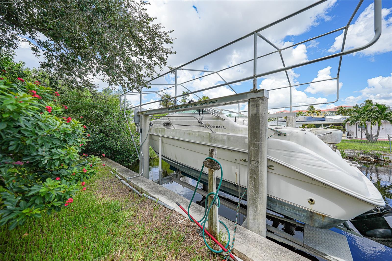 NO Storm Damage, NO Water Intrusion/Flooding Beautiful 3 Bed, 2 Bath Saltwater Canal Home Featuring over 120 Feet of Concrete Seawall and Boating Access to Charlotte Harbor and the Gulf. 10K # Covered Boat lift with Water and Electricity. Huge 23'X20' Screened Lanai for Outdoor Entertainment as well as a Covered Patio Area with Spa and Butterfly Garden Overlooking the Waterway. The home is bright and airy with high volume ceilings and lots of natural lighting. Beautifully Updated En suite. Open Concept Family Room/Kitchen with Breakfast Bar. Split Bedroom Plan. New Roof 2022, New Appliances 2021. Wired for Whole House Generator. Well for Irrigation. Hurricane Shutters and an Assumable Flood Insurance Policy. All this and located in the highly desired community of Charlotte Harbor. No HOA restrictions or dues required. Golf Carts are allowed. Boating, Fishing, and just a short distance to downtown Punta Gorda's shopping, dining, pickleball and more. Make your appointment today!