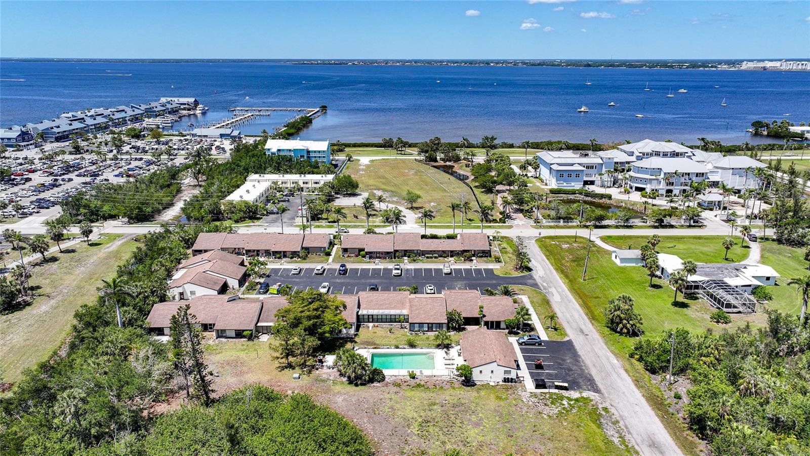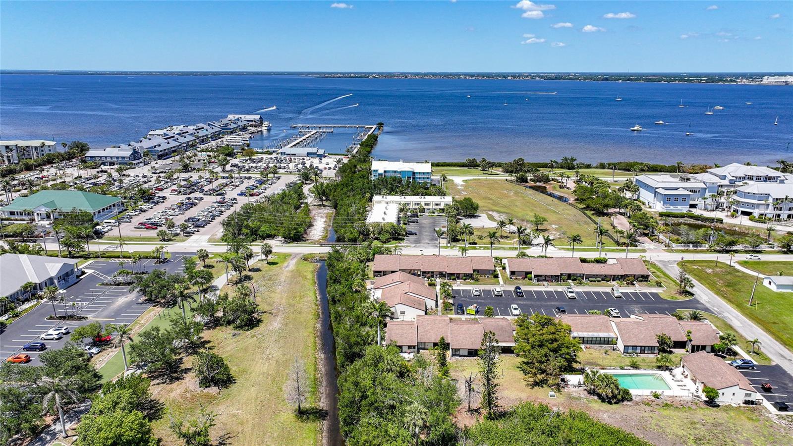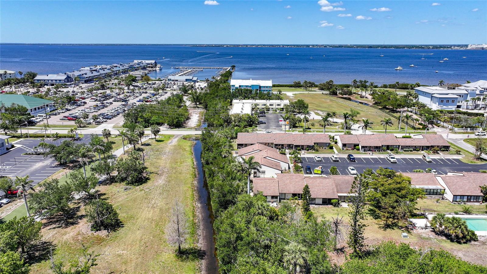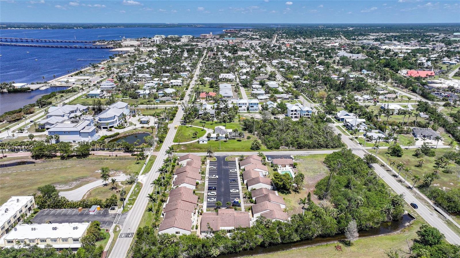Experience the pinnacle of downtown living with this charming, fully renovated two-bedroom, one-bathroom end-unit condo. Nestled in the vibrant heart of downtown Punta Gorda, this home is perfectly positioned for those who want to enjoy stunning sunsets over Charlotte Harbor, just a short walk away.As you approach, you'll be welcomed by newly laid rock and Florida native plants adorning both the front and back of the unit. Step inside to discover a stunning new kitchen featuring a textured subway tile backsplash, sleek granite countertops, and chic navy blue cabinetry. Modern light fixtures, ceiling fans, and high-end appliances enhance the space. The condo boasts tile flooring throughout, fresh paint, and new closet doors. Enjoy the convenience of an in-unit laundry room. Sliding glass doors lead to a serene lanai and backyard, situated at the end of the row. With a one-month minimum rental requirement, this unit is an excellent option for short-term or long-term rental opportunities if you're not here full time. The updated bathroom features contemporary light fixtures and a new vanity. Adjacent to the city’s recreational trail, the Harbor Walk, this location is ideal for sunset strolls or bike rides along the waterfront. The monthly association fee of $410 covers city water, sewer, trash, grounds maintenance, escrow reserves, exterior insurance, clubhouse access, and community pool.Pet lovers will appreciate the allowance for pets up to 20 pounds. Whether you're seeking a new home or a lucrative investment opportunity in historic downtown Punta Gorda, this property fits the bill. Walk to nearby attractions including Gilchrist Park, Fisherman’s Village, the Farmer’s Market, downtown eateries and shops, and the Dog Park. BRAND NEW A/C! Don’t miss out—call today to schedule your showing!