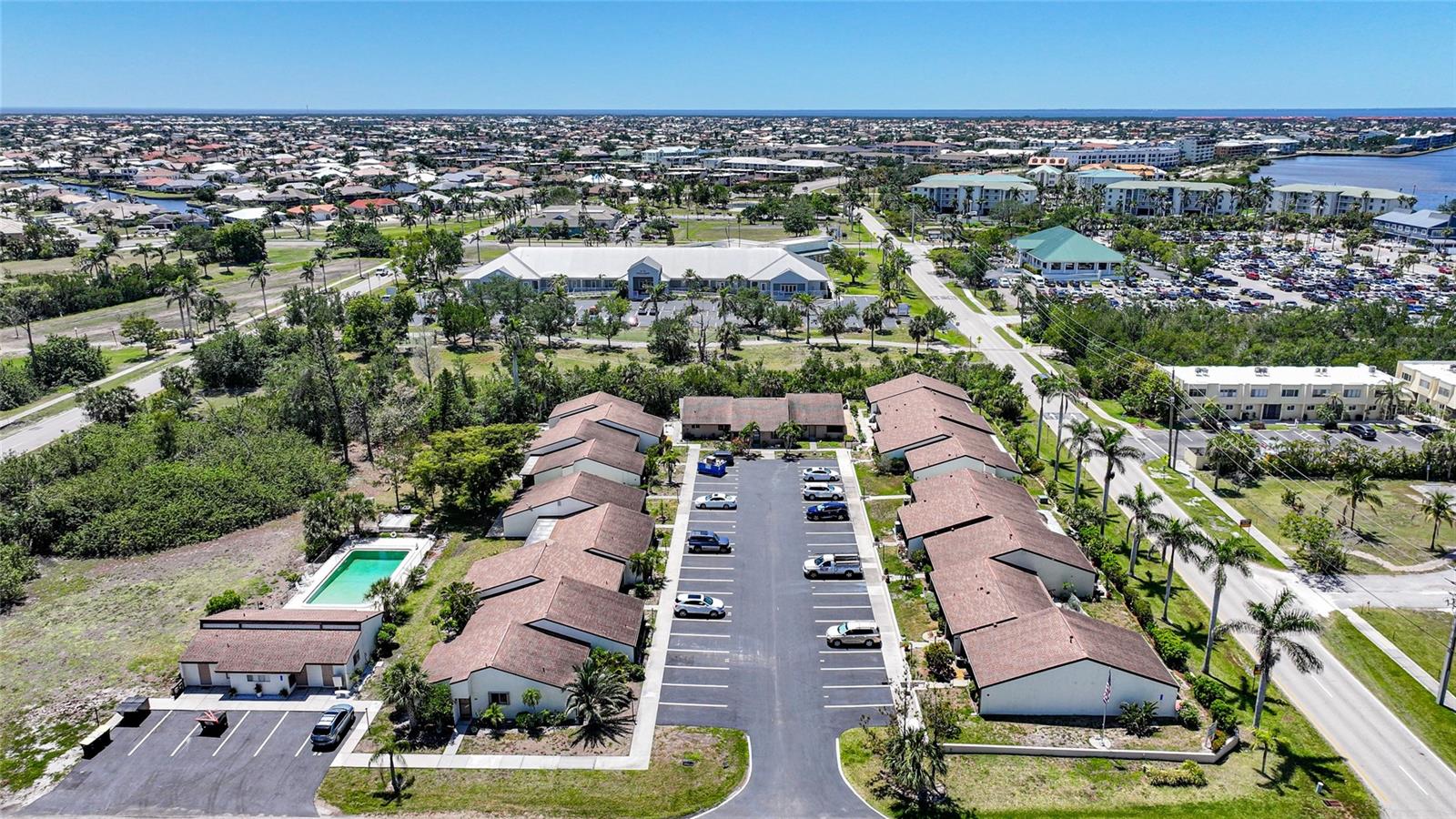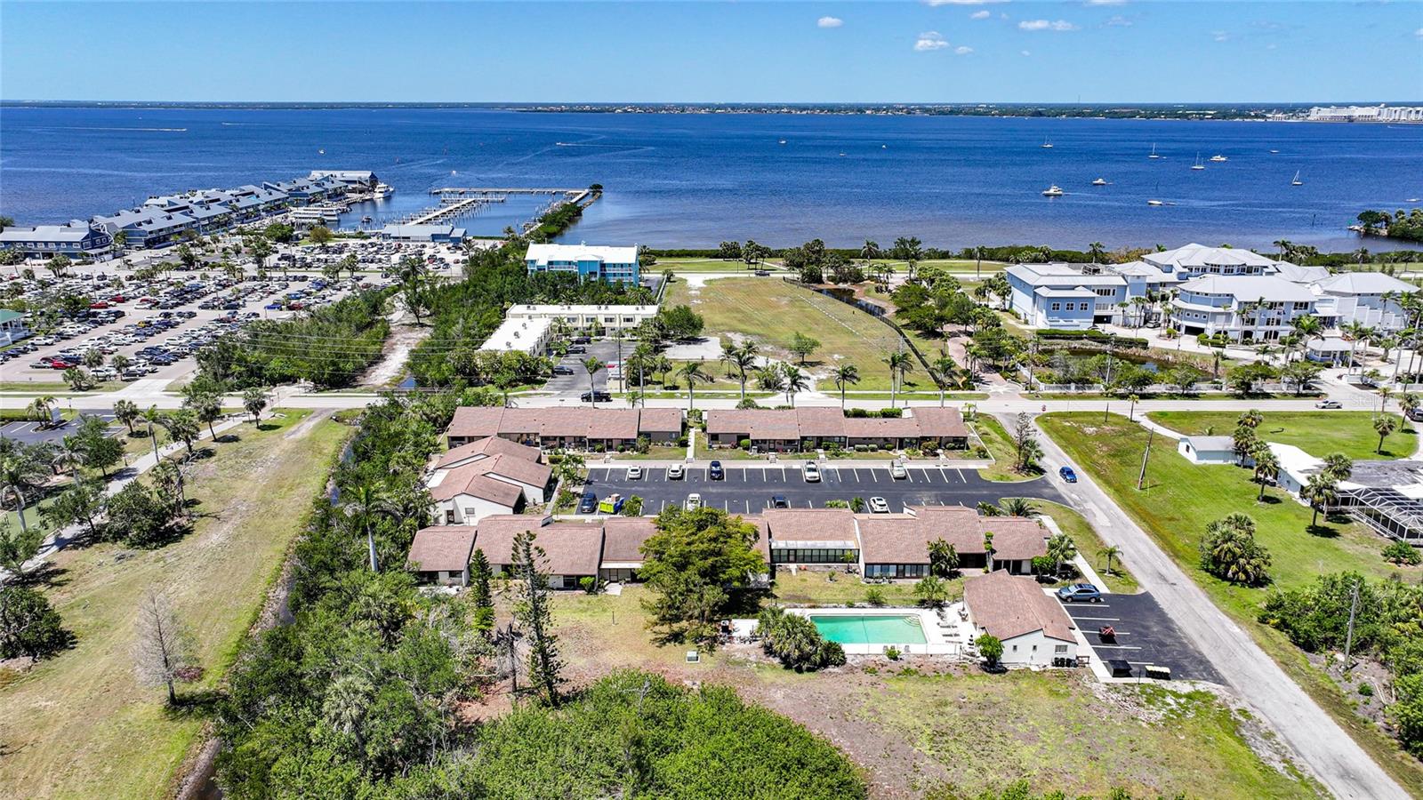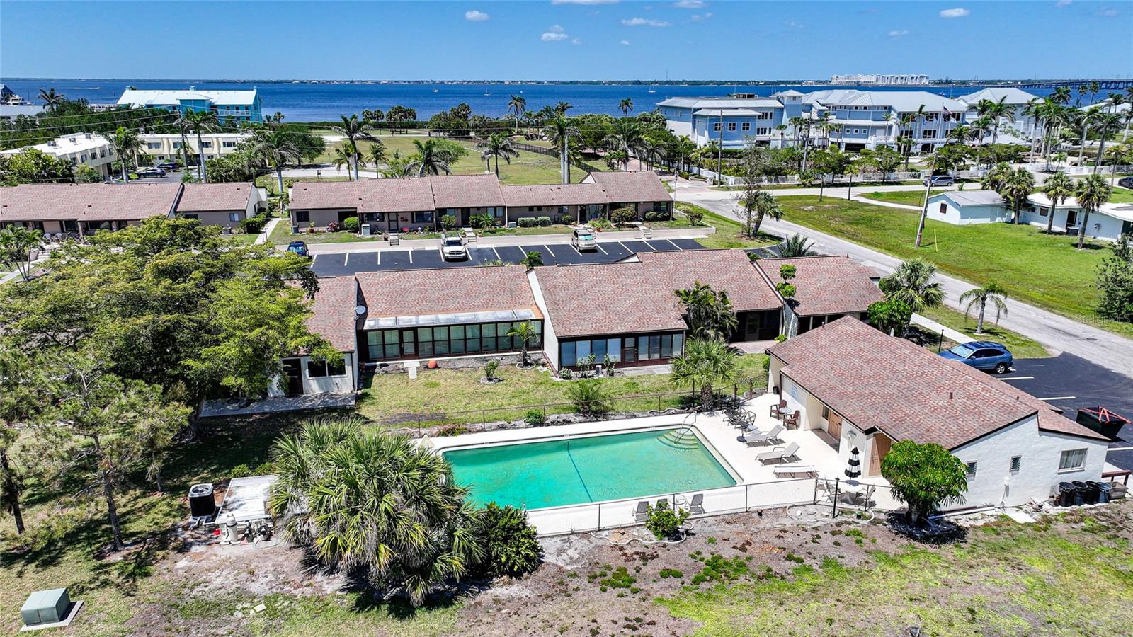 Experience the pinnacle of downtown living with this charming, fully renovated two-bedroom, one-bathroom end-unit condo. Nestled in the vibrant heart of downtown Punta Gorda, this home is perfectly positioned for those who want to enjoy stunning sunsets over Charlotte Harbor, just a short walk away.As you approach, you'll be welcomed by newly laid rock and Florida native plants adorning both the front and back of the unit. Step inside to discover a stunning new kitchen featuring a textured subway tile backsplash, sleek granite countertops, and chic navy blue cabinetry. Modern light fixtures, ceiling fans, and high-end appliances enhance the space. The condo boasts tile flooring throughout, fresh paint, and new closet doors. Enjoy the convenience of an in-unit laundry room. Sliding glass doors lead to a serene lanai and backyard, situated at the end of the row. With a one-month minimum rental requirement, this unit is an excellent option for short-term or long-term rental opportunities if you're not here full time. The updated bathroom features contemporary light fixtures and a new vanity. Adjacent to the city’s recreational trail, the Harbor Walk, this location is ideal for sunset strolls or bike rides along the waterfront. The monthly association fee of $410 covers city water, sewer, trash, grounds maintenance, escrow reserves, exterior insurance, clubhouse access, and community pool.Pet lovers will appreciate the allowance for pets up to 20 pounds. Whether you're seeking a new home or a lucrative investment opportunity in historic downtown Punta Gorda, this property fits the bill. Walk to nearby attractions including Gilchrist Park, Fisherman’s Village, the Farmer’s Market, downtown eateries and shops, and the Dog Park. BRAND NEW A/C! Don’t miss out—call today to schedule your showing!