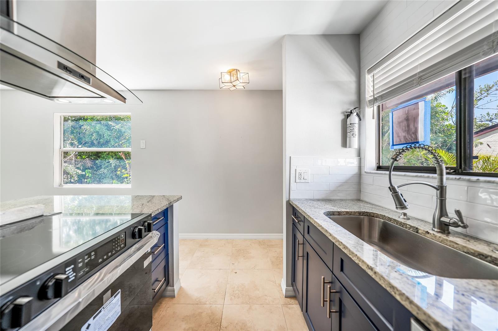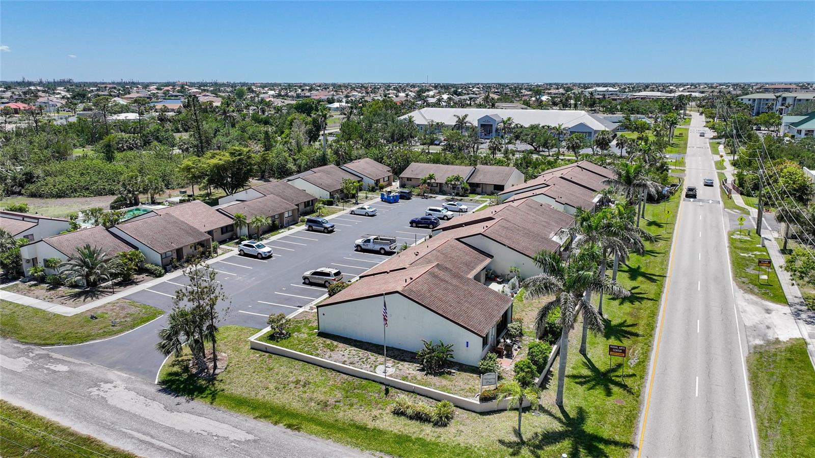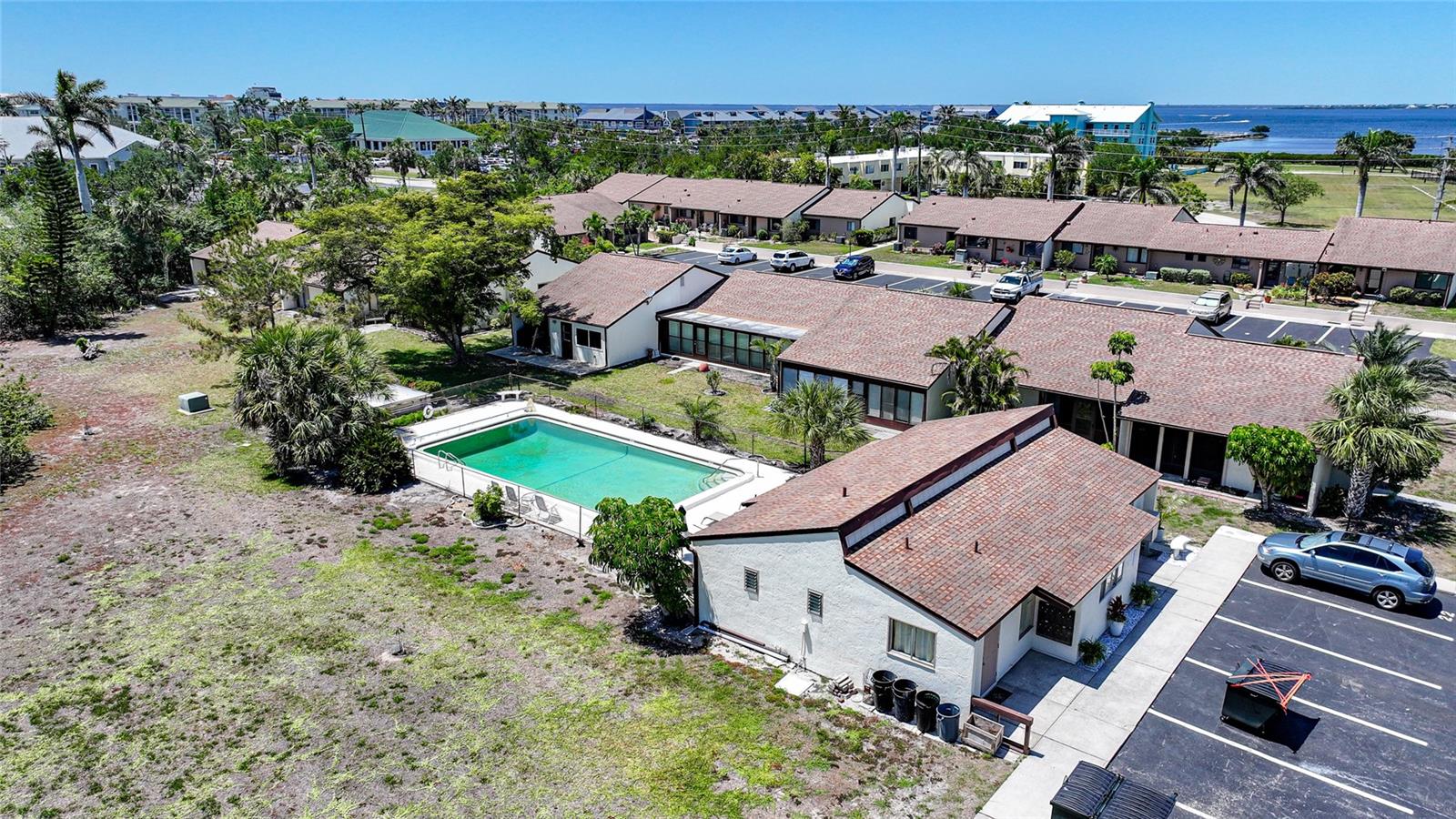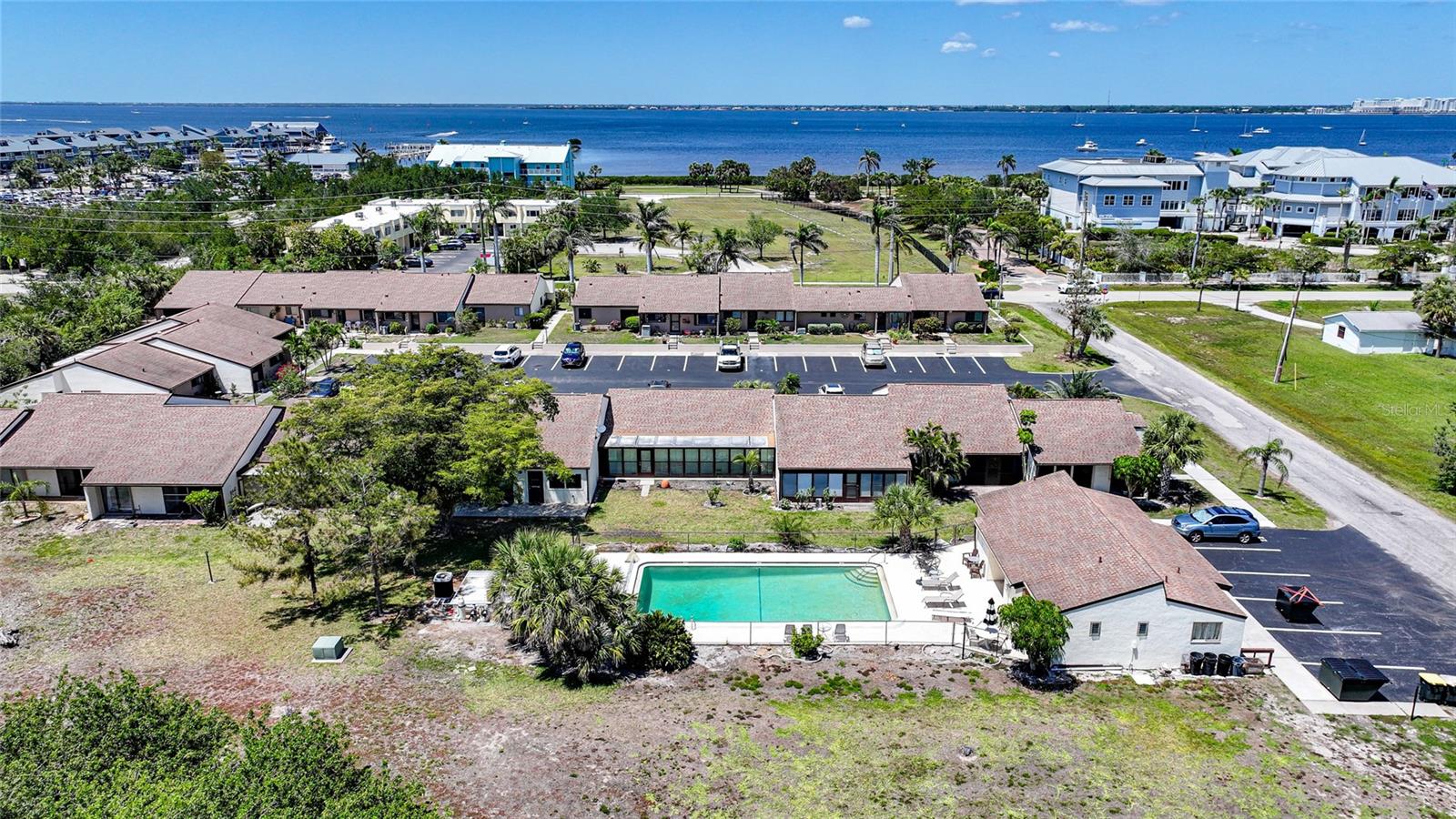 Experience the pinnacle of downtown living with this charming, fully renovated two-bedroom, one-bathroom end-unit condo. Nestled in the vibrant heart of downtown Punta Gorda, this home is perfectly positioned for those who want to enjoy stunning sunsets over Charlotte Harbor, just a short walk away.As you approach, you'll be welcomed by newly laid rock and Florida native plants adorning both the front and back of the unit. Step inside to discover a stunning new kitchen featuring a textured subway tile backsplash, sleek granite countertops, and chic navy blue cabinetry. Modern light fixtures, ceiling fans, and high-end appliances enhance the space. The condo boasts tile flooring throughout, fresh paint, and new closet doors. Enjoy the convenience of an in-unit laundry room. Sliding glass doors lead to a serene lanai and backyard, situated at the end of the row. With a one-month minimum rental requirement, this unit is an excellent option for short-term or long-term rental opportunities if you're not here full time. The updated bathroom features contemporary light fixtures and a new vanity. Adjacent to the city’s recreational trail, the Harbor Walk, this location is ideal for sunset strolls or bike rides along the waterfront. The monthly association fee of $410 covers city water, sewer, trash, grounds maintenance, escrow reserves, exterior insurance, clubhouse access, and community pool.Pet lovers will appreciate the allowance for pets up to 20 pounds. Whether you're seeking a new home or a lucrative investment opportunity in historic downtown Punta Gorda, this property fits the bill. Walk to nearby attractions including Gilchrist Park, Fisherman’s Village, the Farmer’s Market, downtown eateries and shops, and the Dog Park. BRAND NEW A/C! Don’t miss out—call today to schedule your showing!