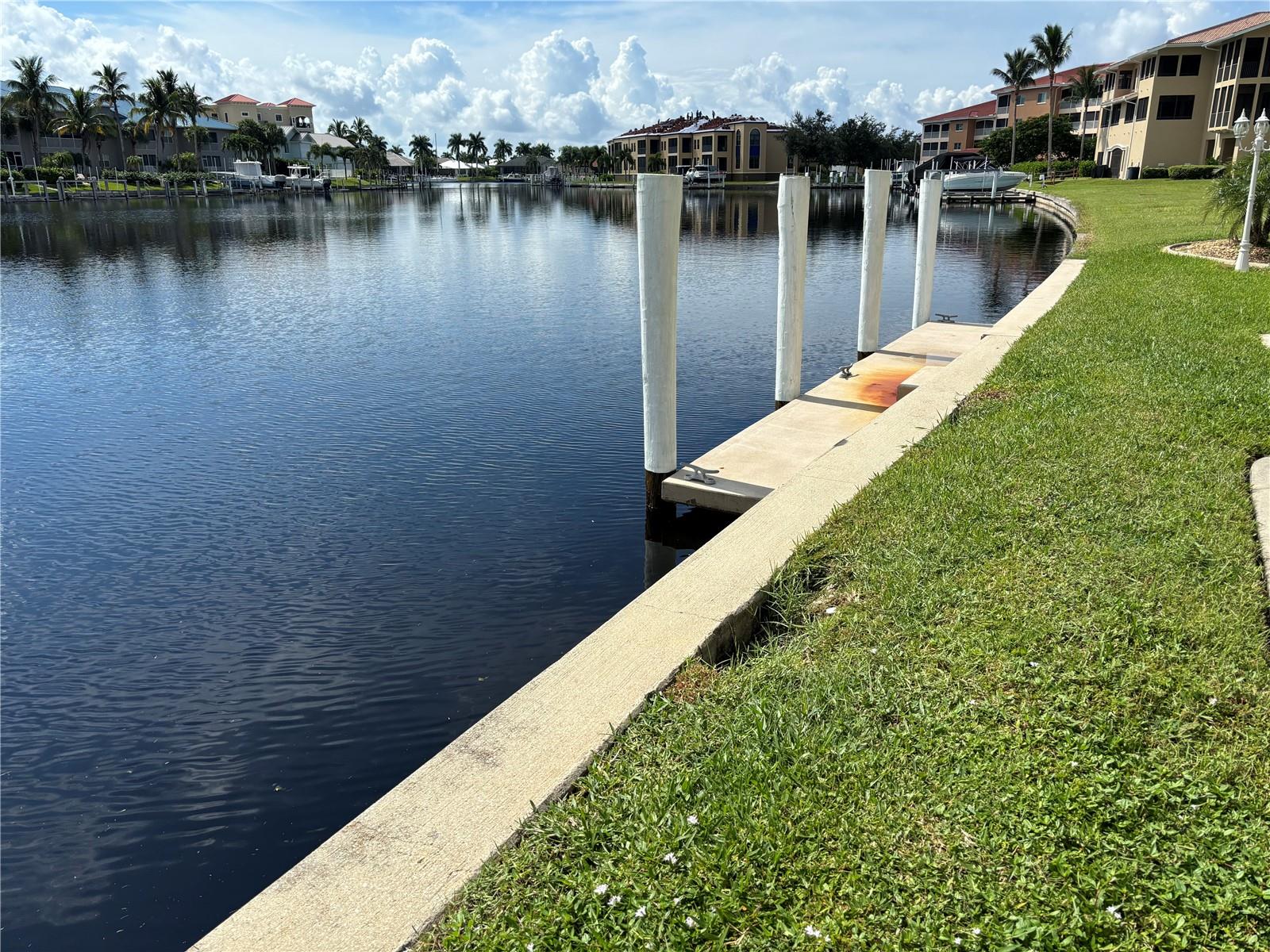 WOW! PRICE IMPROVEMENT!!! Seller will consider buyer concessions. Highly desirable condo in Punta Gorda Isles with a waterfront view and 57 Ft deeded dock space. This is a first floor, end unit that is convenient to everything that Punta Gorda offers. There are ceiling fans throughout and planation shutters make the unit feel like an oasis. The kitchen displays granite counters with lots of space. The kitchen island has pull out drawers offering lots of counter space and storage.Plantation shutters regulate the light during the day and privacy at night. There are 3 bedrooms and 2 bathrooms with plenty of room for friends or guests.The guest bathroom is off the bedroom and displays a double sink and a tub/shower. If you love to boat the 57FT deeded dock is right out your lanai door.Dock has electric and water. NEW ROOF WAS PUT ON IN 2023, EXTERIOR WAS PAINTED IN 2023, FLOOD INSURANCE IS COVERED IN THE HOA FEES. There are no fixed bridges and access to sailboat water. Fishing, kayaking, walking trails are all available right out your door. Perfect for seasonal living or boat owners. Seller is highly motivated. This unit will not last long, take a look and fall in love.