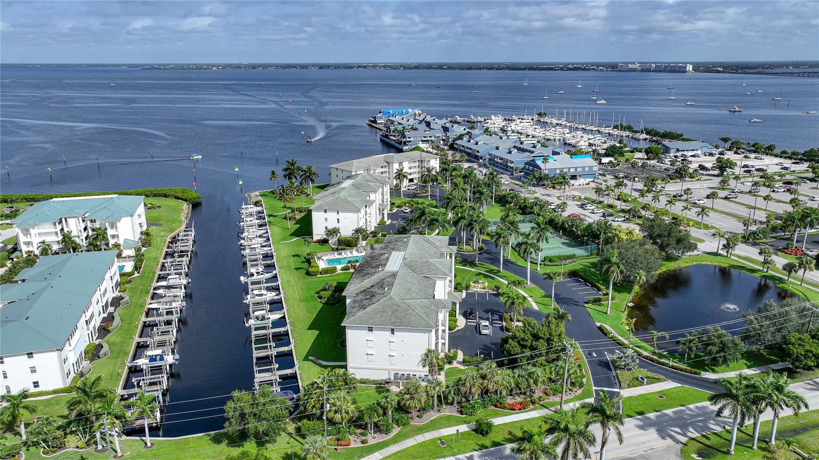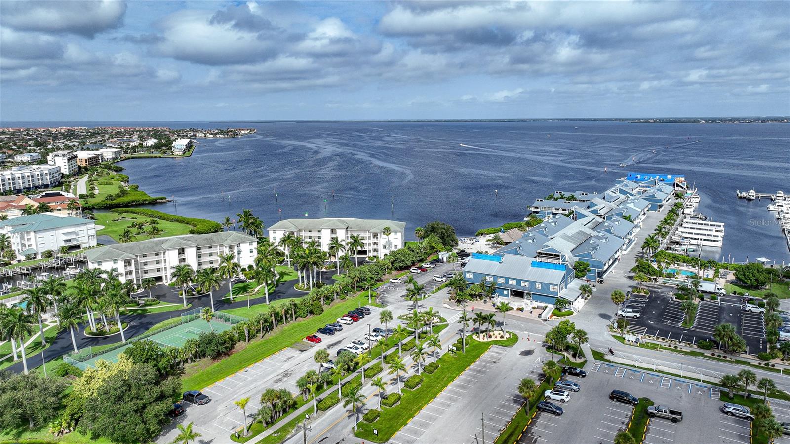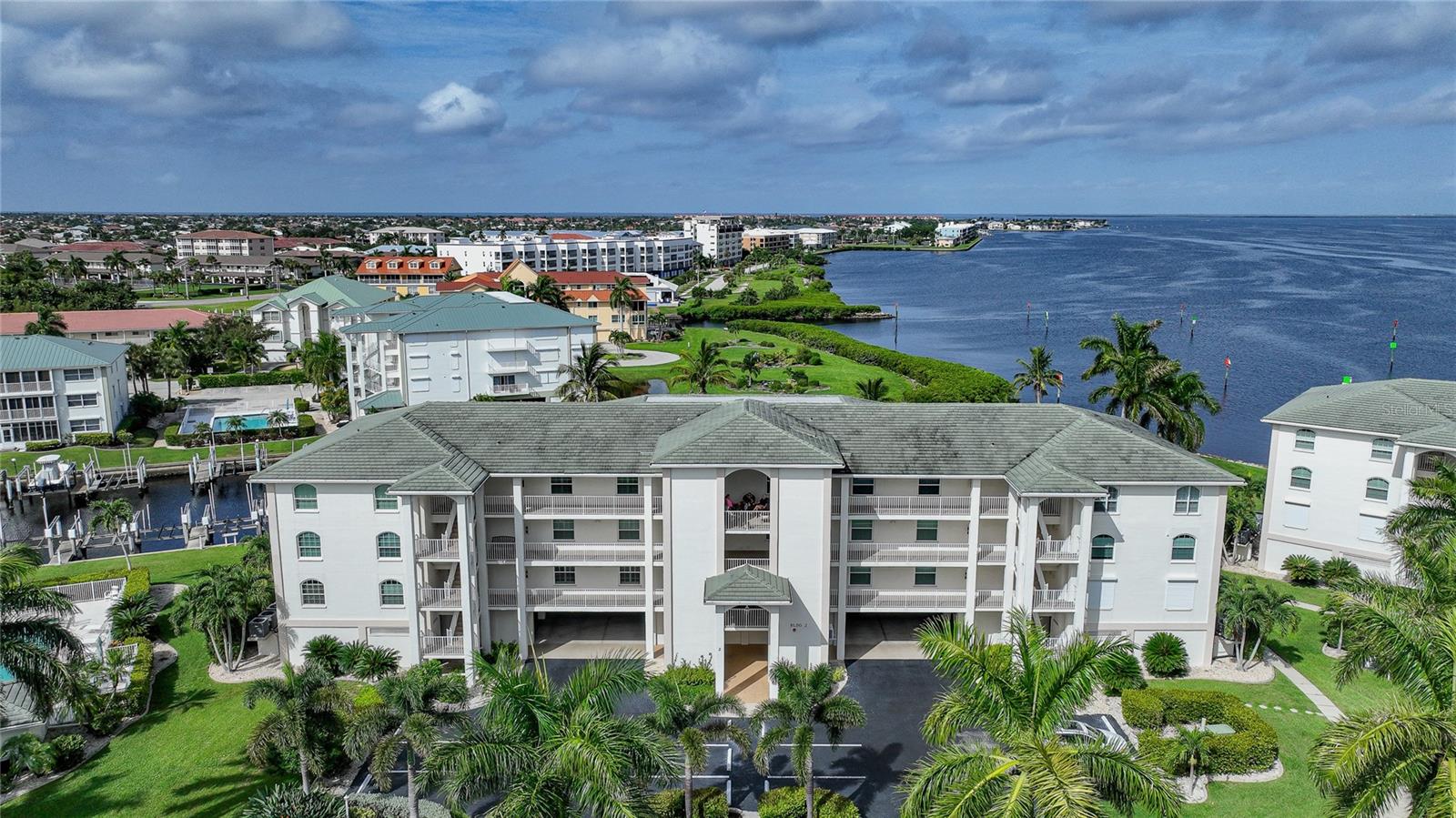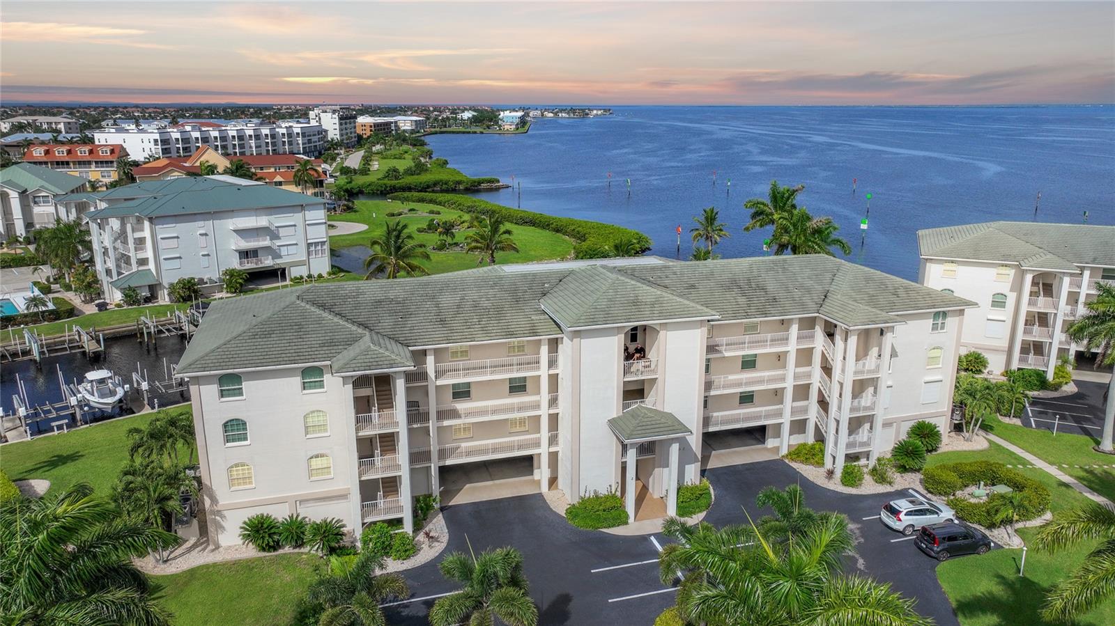 PLEASE SEE PRICE ADJUSTENT! STUNNING HARBOR VIEWS, RESORT INSPIRED LIVING, PRIVATE DOCK & a 10k LIFT! STARBOARD Point is one of the very few condominiums developments in Punta Gorda Isles with BOTH Harbor Views & Boating Access via a PRIVATE dock! WOW. ENJOY FRONT ROW SEATING to nightly golden/orange sunsets, over the sun-kissed- sparkling waters of Charlotte Harbor! Watch the fireworks on the 4th from your favorite comfy lounger in air- conditioned comfort. Location- Location-Location! Private gated access to the famous Fisherman's Village- Boutique Shops, Restaurants and the TIKI BAR with sandy beach. Your personal STAY-cation / location. The GROUNDS are amazing as well, Royal Palm Lined entrance, flowering Hibiscus & Bamboo grace the community. Heated POOL ***PICKLEBALL*** Tennis, private Gazebo on the water. Park your car out of the sun and rain in under-building designated parking! Additional 8x10 Storage Closet in the parking area is perfect for bikes, a motorcycle, golf clubs, paddle board, beach chairs, etc.! Additional parking in front of the building. ***ELEVATOR provides ease of access!! And makes "bringing in the groceries" so much easier! ***UPDATED: 2100+ sq ft! KITCHEN with granite counters, lots of updated wood cabinetry, tiled backsplash, SS appliances. The Living Room is enormous and opens wide to the former lanai area. Floor to ceiling windows provided SHOW-STOPPER WATER VIEWS, watch the boats go by, the dolphins at play and enjoy the blue skies and swaying palms. Spacious dining area to entertain guests, with huge built-in storage cabinetry and wine cooler. PRIMARY SUITE, with water views, walk-in closet with custom storage, remodeled ensuite bath with gorgeous shower. 2 additional BEDROOMS, SPLIT FLOOR PLAN, Guest Bath REMODELED with beautiful shower and wood vanity as well. There is a separate laundry room with cabinetry and designated storage/ utility room with a 2nd fridge, Tankless hot water tank, well maintained HVAC system and whole house water filtration! Handsome, 18" TILE in every room! NO carpets, NO mixed flooring. ***IMPACT WINDOWS THROUGHOUT*** (property is available with most all the furniture as seen- should buyer like it furnished) If you are ready to enjoy waterfront living, boating, pickleball & a tropical lifestyle - STARBOARD POINT is THE PLACE to be. ***And the recent "clean" Engineering STUDY shows "YES" this development has been well cared for, maintained, pride of ownership is evident! YOLO- DON'T SETTLE! There's a SUNSET to celebrate every night.