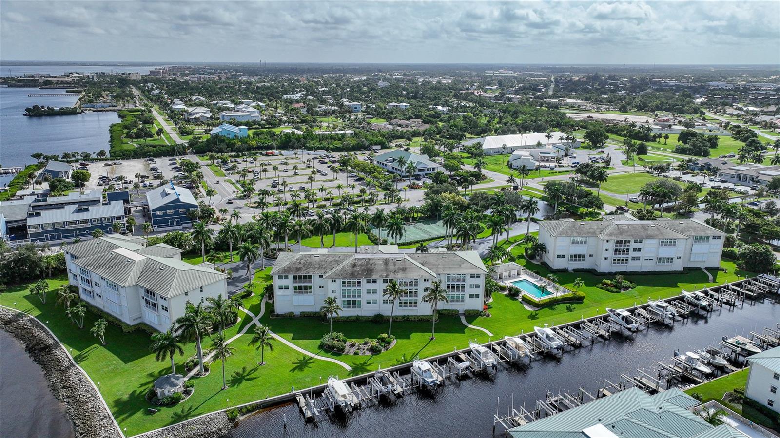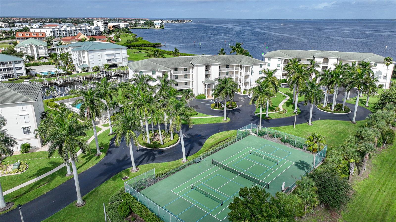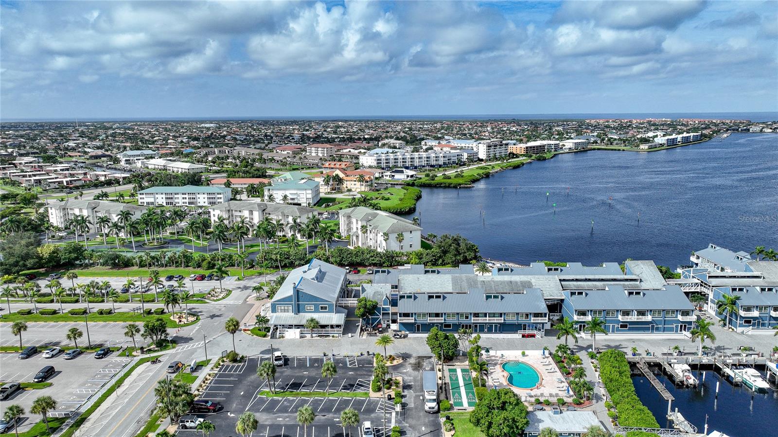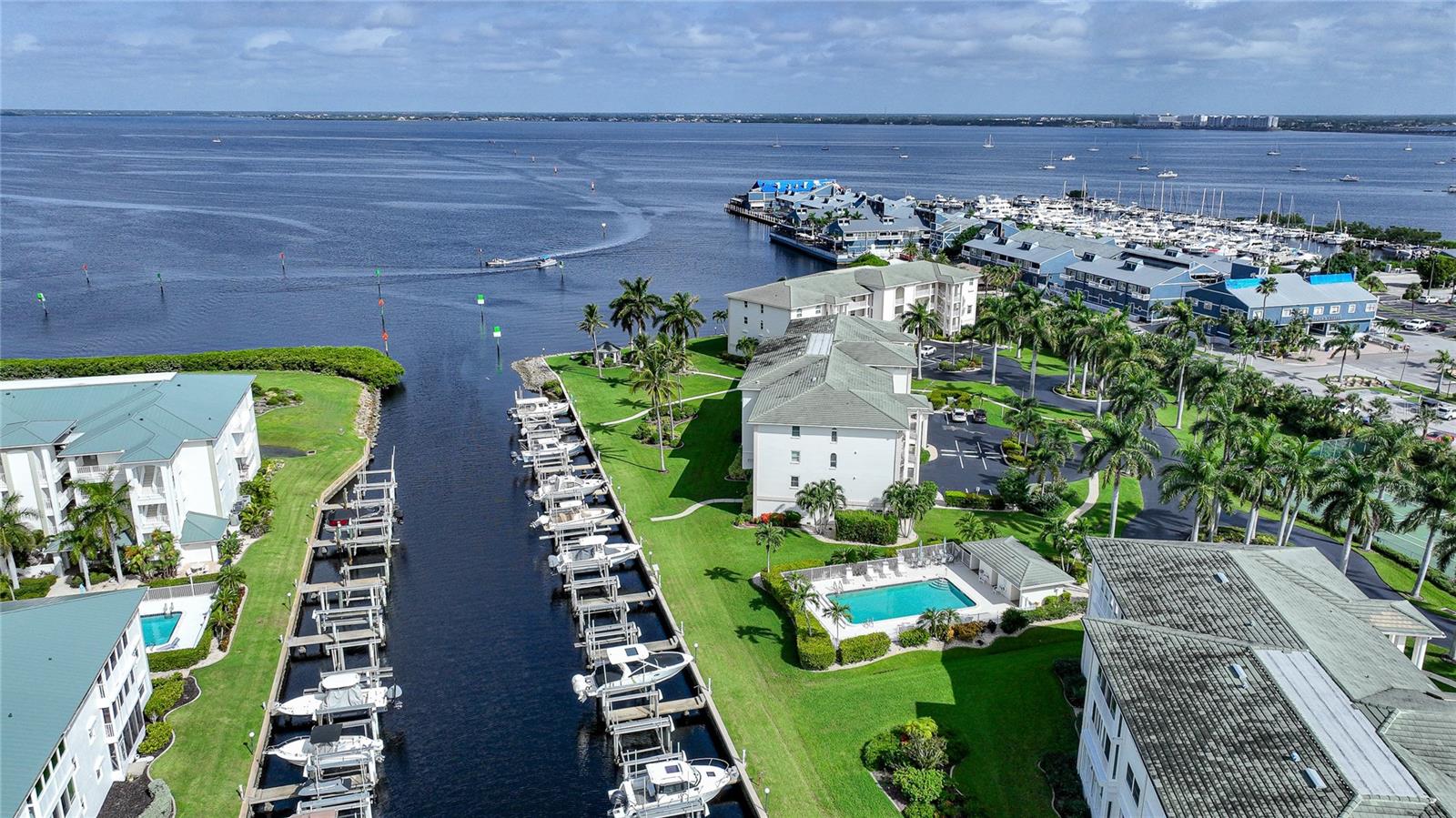 PLEASE SEE PRICE ADJUSTENT! STUNNING HARBOR VIEWS, RESORT INSPIRED LIVING, PRIVATE DOCK & a 10k LIFT! STARBOARD Point is one of the very few condominiums developments in Punta Gorda Isles with BOTH Harbor Views & Boating Access via a PRIVATE dock! WOW. ENJOY FRONT ROW SEATING to nightly golden/orange sunsets, over the sun-kissed- sparkling waters of Charlotte Harbor! Watch the fireworks on the 4th from your favorite comfy lounger in air- conditioned comfort. Location- Location-Location! Private gated access to the famous Fisherman's Village- Boutique Shops, Restaurants and the TIKI BAR with sandy beach. Your personal STAY-cation / location. The GROUNDS are amazing as well, Royal Palm Lined entrance, flowering Hibiscus & Bamboo grace the community. Heated POOL ***PICKLEBALL*** Tennis, private Gazebo on the water. Park your car out of the sun and rain in under-building designated parking! Additional 8x10 Storage Closet in the parking area is perfect for bikes, a motorcycle, golf clubs, paddle board, beach chairs, etc.! Additional parking in front of the building. ***ELEVATOR provides ease of access!! And makes "bringing in the groceries" so much easier! ***UPDATED: 2100+ sq ft! KITCHEN with granite counters, lots of updated wood cabinetry, tiled backsplash, SS appliances. The Living Room is enormous and opens wide to the former lanai area. Floor to ceiling windows provided SHOW-STOPPER WATER VIEWS, watch the boats go by, the dolphins at play and enjoy the blue skies and swaying palms. Spacious dining area to entertain guests, with huge built-in storage cabinetry and wine cooler. PRIMARY SUITE, with water views, walk-in closet with custom storage, remodeled ensuite bath with gorgeous shower. 2 additional BEDROOMS, SPLIT FLOOR PLAN, Guest Bath REMODELED with beautiful shower and wood vanity as well. There is a separate laundry room with cabinetry and designated storage/ utility room with a 2nd fridge, Tankless hot water tank, well maintained HVAC system and whole house water filtration! Handsome, 18" TILE in every room! NO carpets, NO mixed flooring. ***IMPACT WINDOWS THROUGHOUT*** (property is available with most all the furniture as seen- should buyer like it furnished) If you are ready to enjoy waterfront living, boating, pickleball & a tropical lifestyle - STARBOARD POINT is THE PLACE to be. ***And the recent "clean" Engineering STUDY shows "YES" this development has been well cared for, maintained, pride of ownership is evident! YOLO- DON'T SETTLE! There's a SUNSET to celebrate every night.