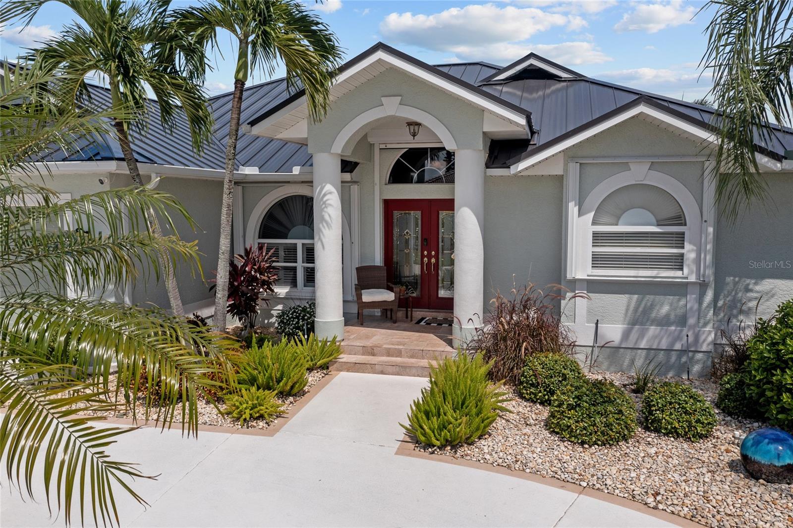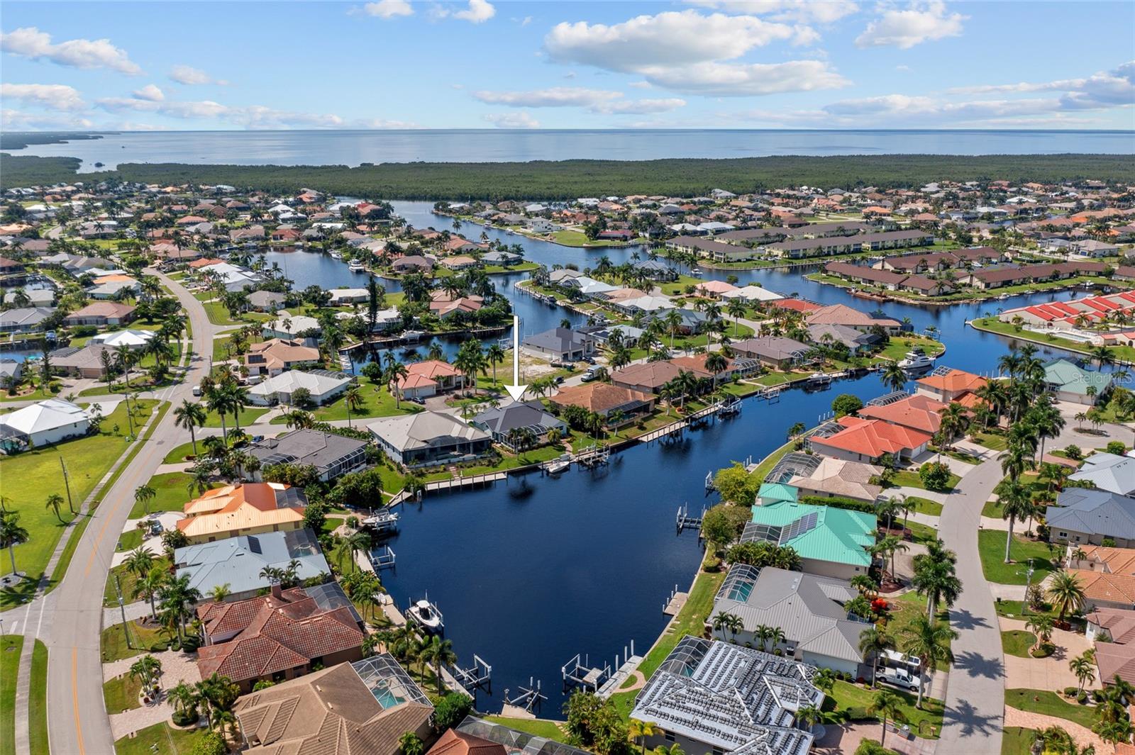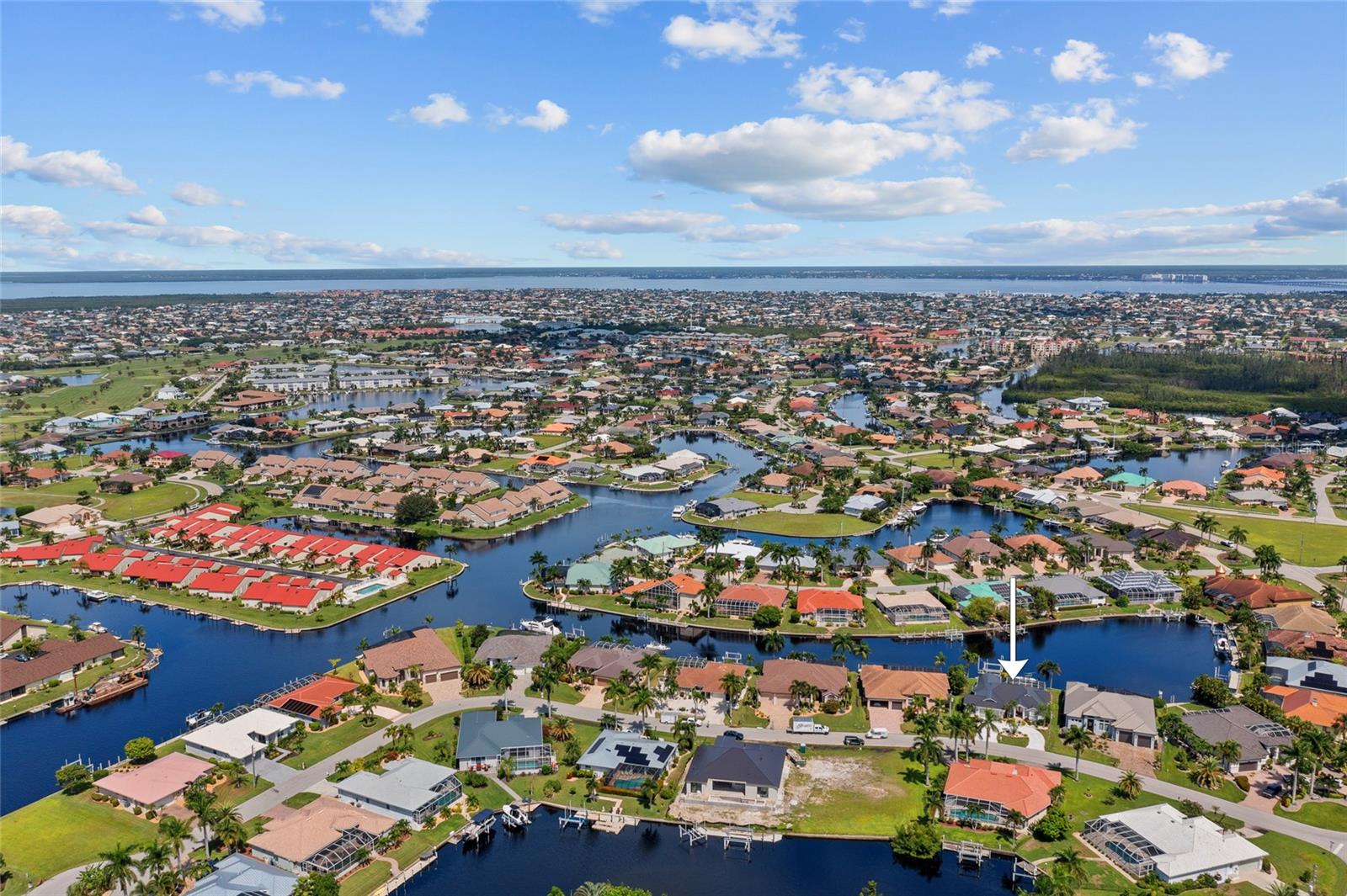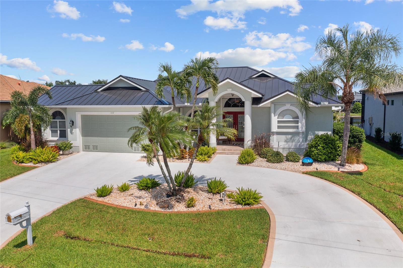 PUNTA GORDA ISLES! GORGEOUS 3 BEDROOM, 2 BATH, 2-CAR GARAGE POOL HOME WITH SAILBOAT ACCESS TO CHARLOTTE HARBOR LEADING TO THE GULF OF MEXICO VIA BUCKLEY’S PASS! A boaters dream with 91’ of waterfrontage, 54’ concrete dock with water and power pedestal, 28,000 lb. boat lift and davit on large deep turning basin. As you approach the home, you'll be greeted by a double door-stained glass entry that opens into an inviting open floor plan with high ceilings, elegant fixtures, indirect lighting for nighttime accents, built-in accents, and tile flooring throughout. Plantation shutters and a soothing décor complement the spacious living area, which features a large slider that seamlessly blends indoor and outdoor living. The beautifully remodeled open kitchen is a chef's dream, featuring granite counters, custom wood cabinetry with pull-out shelves, and stainless appliances, including a new refrigerator and dishwasher. The large center island with breakfast bar and casual dining nook offers stunning views of the pool and waterfront. The updated primary suite is a private oasis, with access to the lanai, double walk-in closets with automatic lighting, dual sinks, a garden bath, and a glass walk-in shower. The split bedroom plan ensures privacy for all, with the second bedroom offering a Murphy bed and the third bedroom providing ample natural light and water views plus separate bath offering an updated walk-in shower with rain shower and jets. Step outside to the covered, rescreened lanai, complete with an outdoor grill and refrigerator, screened heated saltwater pebble Tec pool with waterfall and pool light - perfect for year-round enjoyment plus outdoor paver patio with walkway to dock. Additional special features include a new metal roof, gutters, accordion storm shutters, and remote-control Storm Smart hurricane shutters on the lanai. The home also includes a versatile air-conditioned workshop, security system with surveillance cameras, A/C system with ultraviolet light, generator connection, and convenient circular driveway and lush tropical landscaping. Located in a vibrant golf and boating community, you're just minutes away from St. Andrews South Golf Club, the Yacht Club, Fishermen's Village, and the historic downtown area of Punta Gorda. Enjoy access to arts, community events, entertainment, world-class fishing, boating, fine dining, and beautiful parks, as well as easy access to the Southwest Florida Gulf beaches. Don't miss this opportunity to make this amazing property your new snowbird retreat or permanent home. Schedule your private showing today!