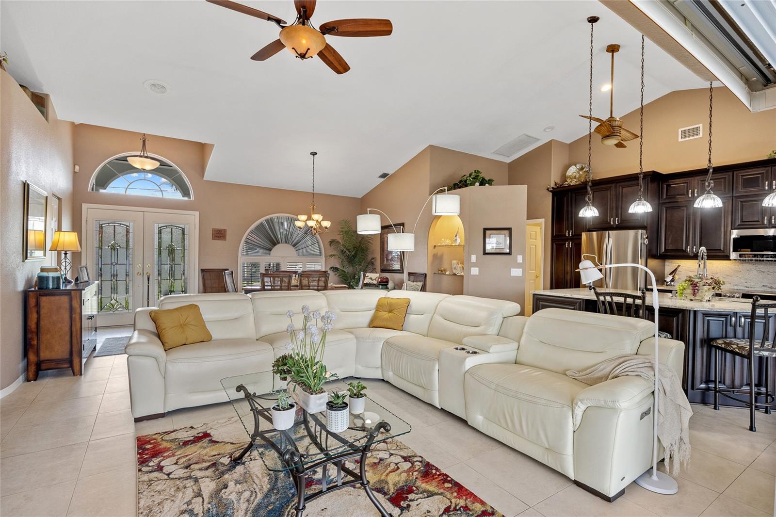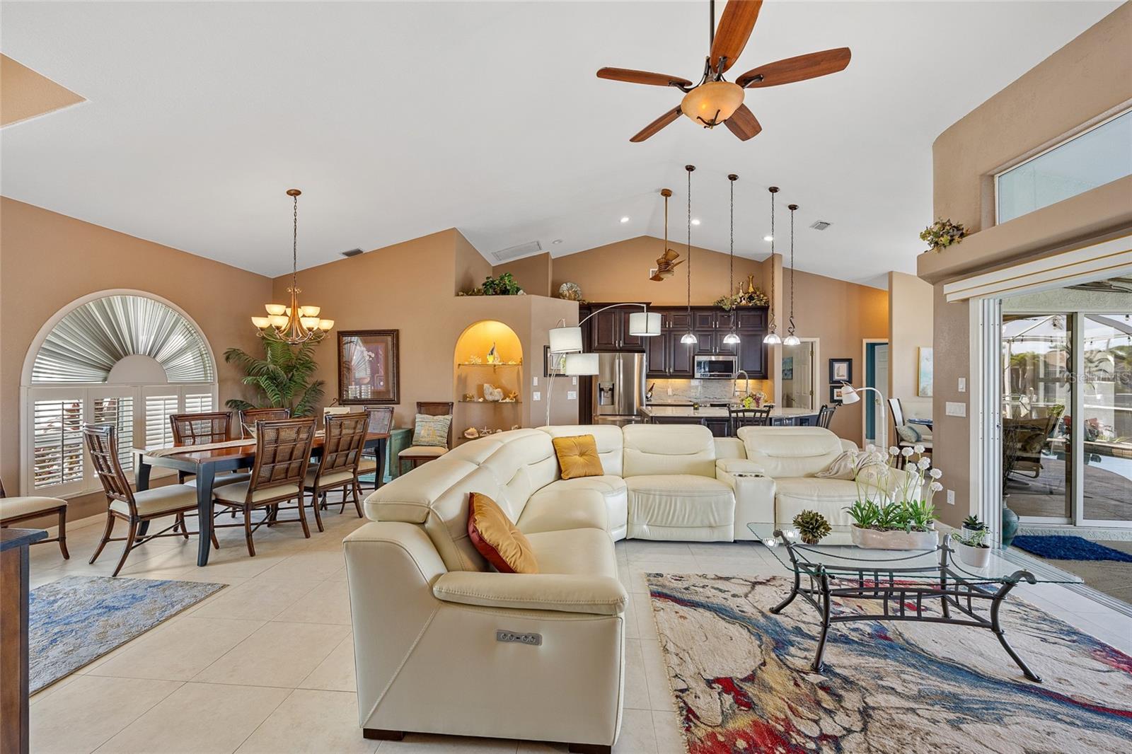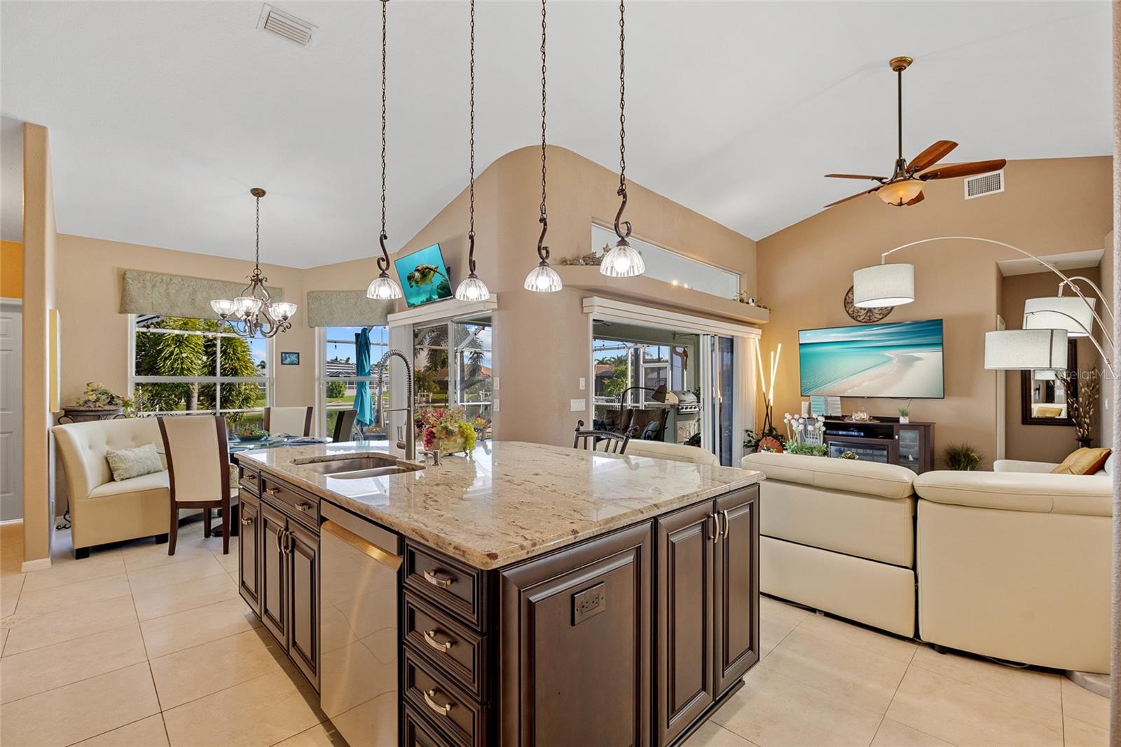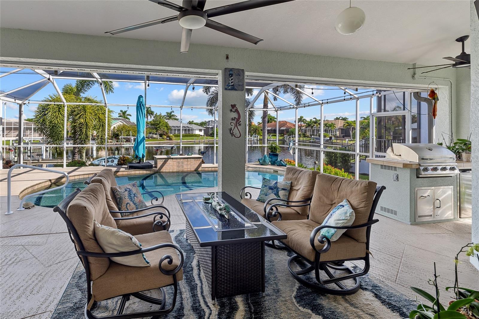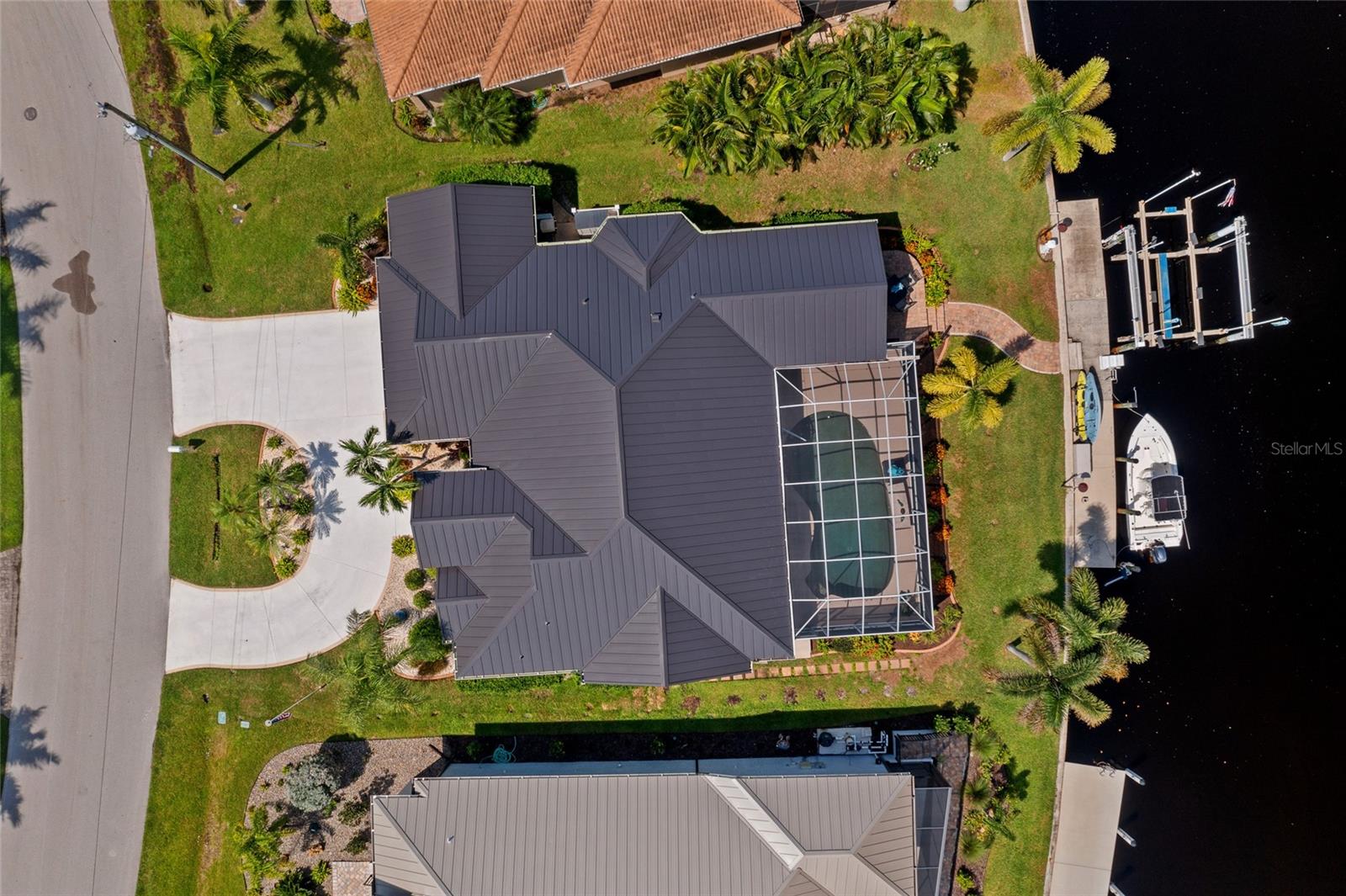 PUNTA GORDA ISLES! GORGEOUS 3 BEDROOM, 2 BATH, 2-CAR GARAGE POOL HOME WITH SAILBOAT ACCESS TO CHARLOTTE HARBOR LEADING TO THE GULF OF MEXICO VIA BUCKLEY’S PASS! A boaters dream with 91’ of waterfrontage, 54’ concrete dock with water and power pedestal, 28,000 lb. boat lift and davit on large deep turning basin. As you approach the home, you'll be greeted by a double door-stained glass entry that opens into an inviting open floor plan with high ceilings, elegant fixtures, indirect lighting for nighttime accents, built-in accents, and tile flooring throughout. Plantation shutters and a soothing décor complement the spacious living area, which features a large slider that seamlessly blends indoor and outdoor living. The beautifully remodeled open kitchen is a chef's dream, featuring granite counters, custom wood cabinetry with pull-out shelves, and stainless appliances, including a new refrigerator and dishwasher. The large center island with breakfast bar and casual dining nook offers stunning views of the pool and waterfront. The updated primary suite is a private oasis, with access to the lanai, double walk-in closets with automatic lighting, dual sinks, a garden bath, and a glass walk-in shower. The split bedroom plan ensures privacy for all, with the second bedroom offering a Murphy bed and the third bedroom providing ample natural light and water views plus separate bath offering an updated walk-in shower with rain shower and jets. Step outside to the covered, rescreened lanai, complete with an outdoor grill and refrigerator, screened heated saltwater pebble Tec pool with waterfall and pool light - perfect for year-round enjoyment plus outdoor paver patio with walkway to dock. Additional special features include a new metal roof, gutters, accordion storm shutters, and remote-control Storm Smart hurricane shutters on the lanai. The home also includes a versatile air-conditioned workshop, security system with surveillance cameras, A/C system with ultraviolet light, generator connection, and convenient circular driveway and lush tropical landscaping. Located in a vibrant golf and boating community, you're just minutes away from St. Andrews South Golf Club, the Yacht Club, Fishermen's Village, and the historic downtown area of Punta Gorda. Enjoy access to arts, community events, entertainment, world-class fishing, boating, fine dining, and beautiful parks, as well as easy access to the Southwest Florida Gulf beaches. Don't miss this opportunity to make this amazing property your new snowbird retreat or permanent home. Schedule your private showing today!