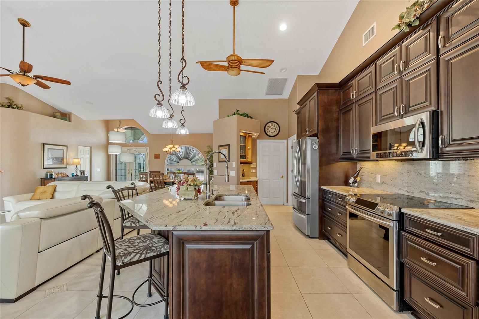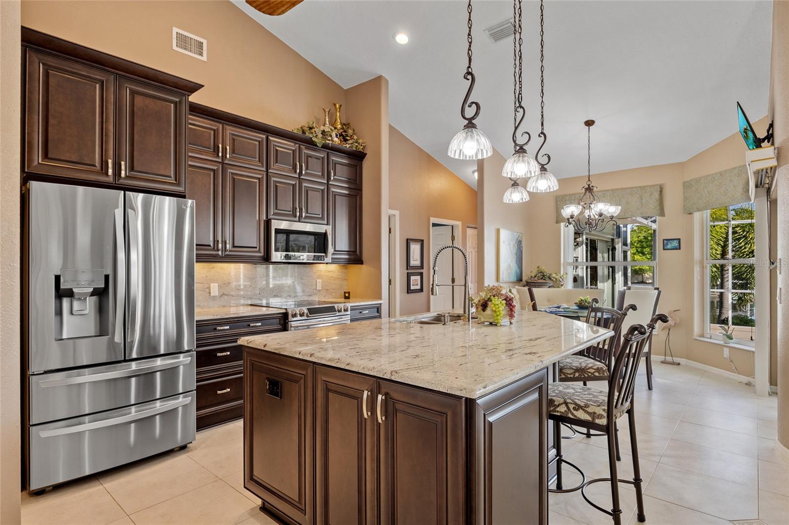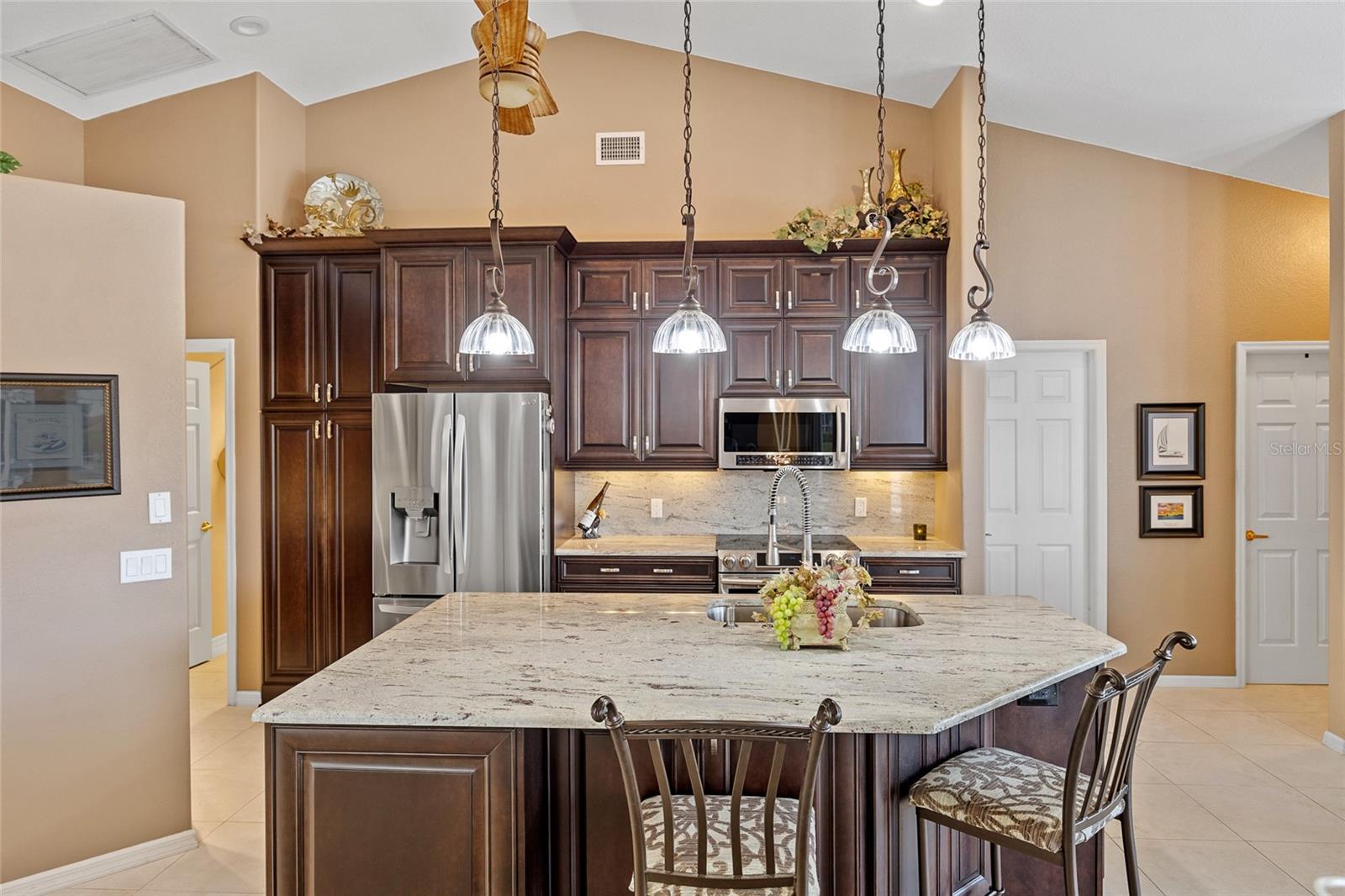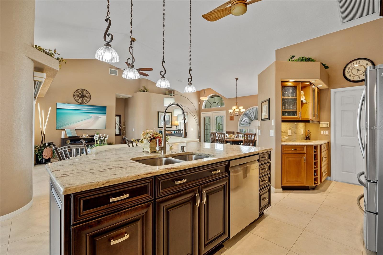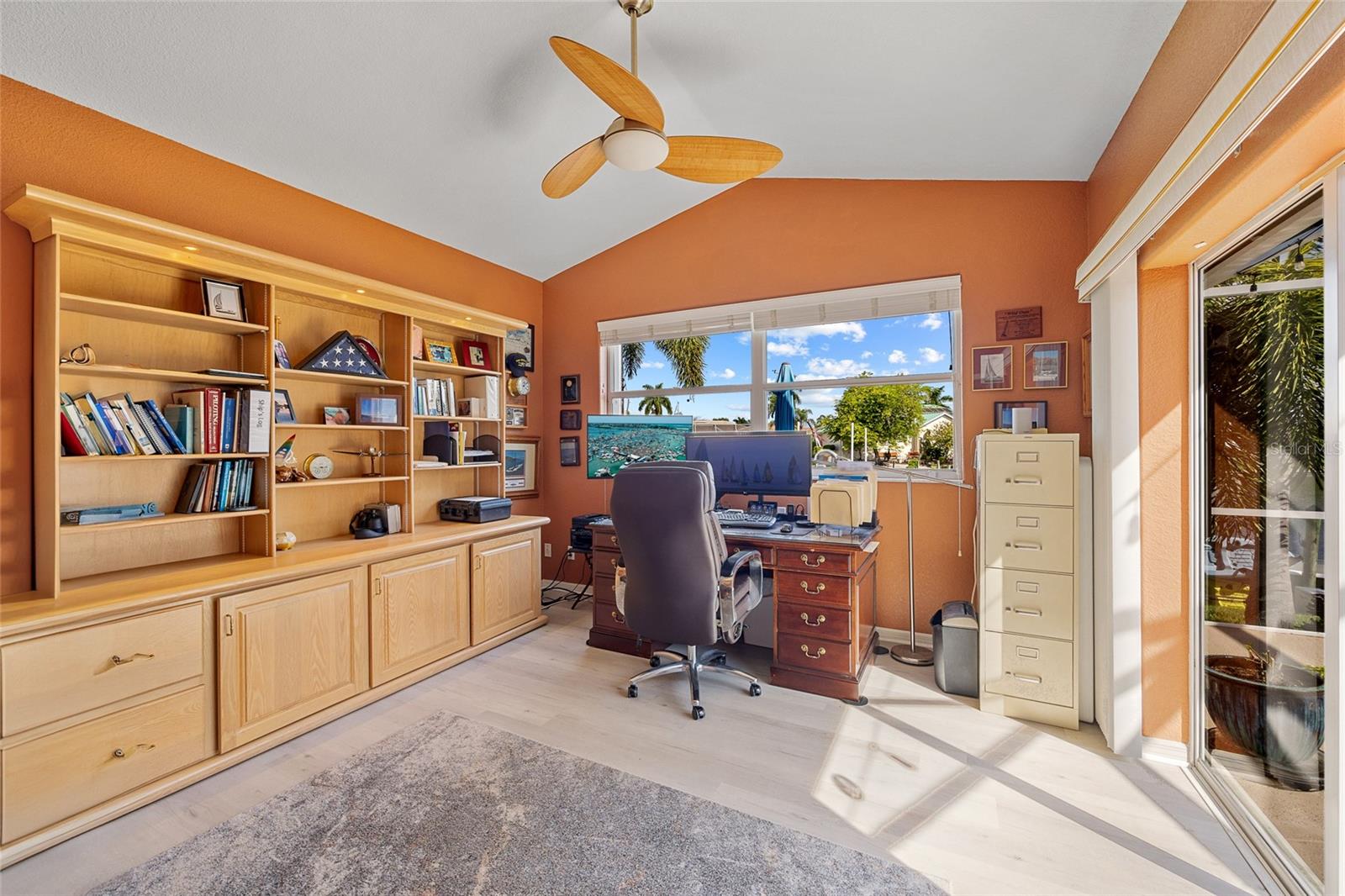 PUNTA GORDA ISLES! GORGEOUS 3 BEDROOM, 2 BATH, 2-CAR GARAGE POOL HOME WITH SAILBOAT ACCESS TO CHARLOTTE HARBOR LEADING TO THE GULF OF MEXICO VIA BUCKLEY’S PASS! A boaters dream with 91’ of waterfrontage, 54’ concrete dock with water and power pedestal, 28,000 lb. boat lift and davit on large deep turning basin. As you approach the home, you'll be greeted by a double door-stained glass entry that opens into an inviting open floor plan with high ceilings, elegant fixtures, indirect lighting for nighttime accents, built-in accents, and tile flooring throughout. Plantation shutters and a soothing décor complement the spacious living area, which features a large slider that seamlessly blends indoor and outdoor living. The beautifully remodeled open kitchen is a chef's dream, featuring granite counters, custom wood cabinetry with pull-out shelves, and stainless appliances, including a new refrigerator and dishwasher. The large center island with breakfast bar and casual dining nook offers stunning views of the pool and waterfront. The updated primary suite is a private oasis, with access to the lanai, double walk-in closets with automatic lighting, dual sinks, a garden bath, and a glass walk-in shower. The split bedroom plan ensures privacy for all, with the second bedroom offering a Murphy bed and the third bedroom providing ample natural light and water views plus separate bath offering an updated walk-in shower with rain shower and jets. Step outside to the covered, rescreened lanai, complete with an outdoor grill and refrigerator, screened heated saltwater pebble Tec pool with waterfall and pool light - perfect for year-round enjoyment plus outdoor paver patio with walkway to dock. Additional special features include a new metal roof, gutters, accordion storm shutters, and remote-control Storm Smart hurricane shutters on the lanai. The home also includes a versatile air-conditioned workshop, security system with surveillance cameras, A/C system with ultraviolet light, generator connection, and convenient circular driveway and lush tropical landscaping. Located in a vibrant golf and boating community, you're just minutes away from St. Andrews South Golf Club, the Yacht Club, Fishermen's Village, and the historic downtown area of Punta Gorda. Enjoy access to arts, community events, entertainment, world-class fishing, boating, fine dining, and beautiful parks, as well as easy access to the Southwest Florida Gulf beaches. Don't miss this opportunity to make this amazing property your new snowbird retreat or permanent home. Schedule your private showing today!