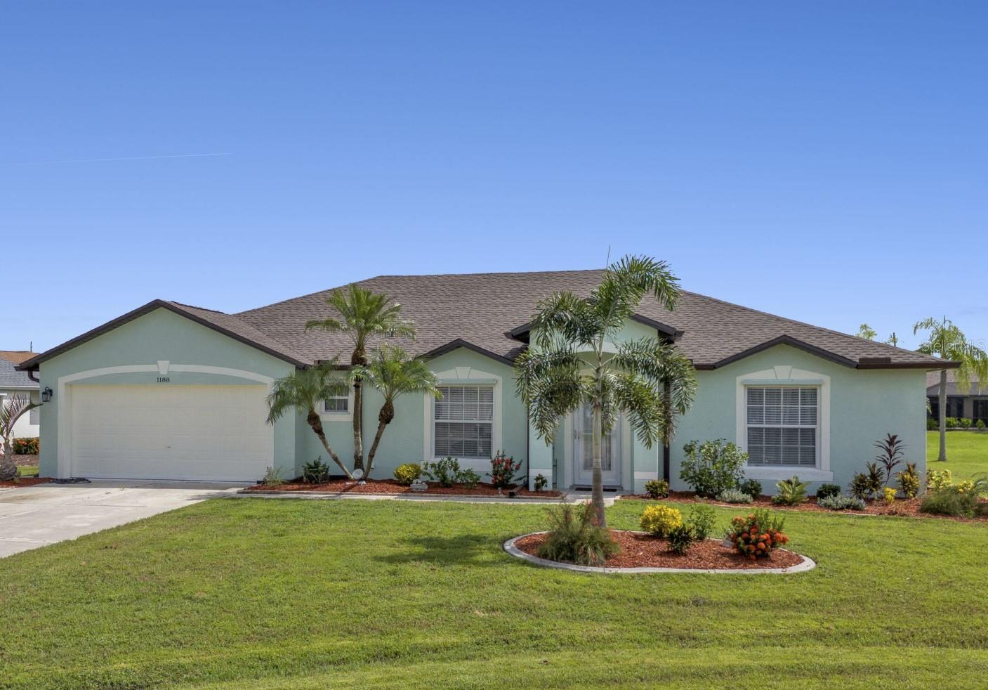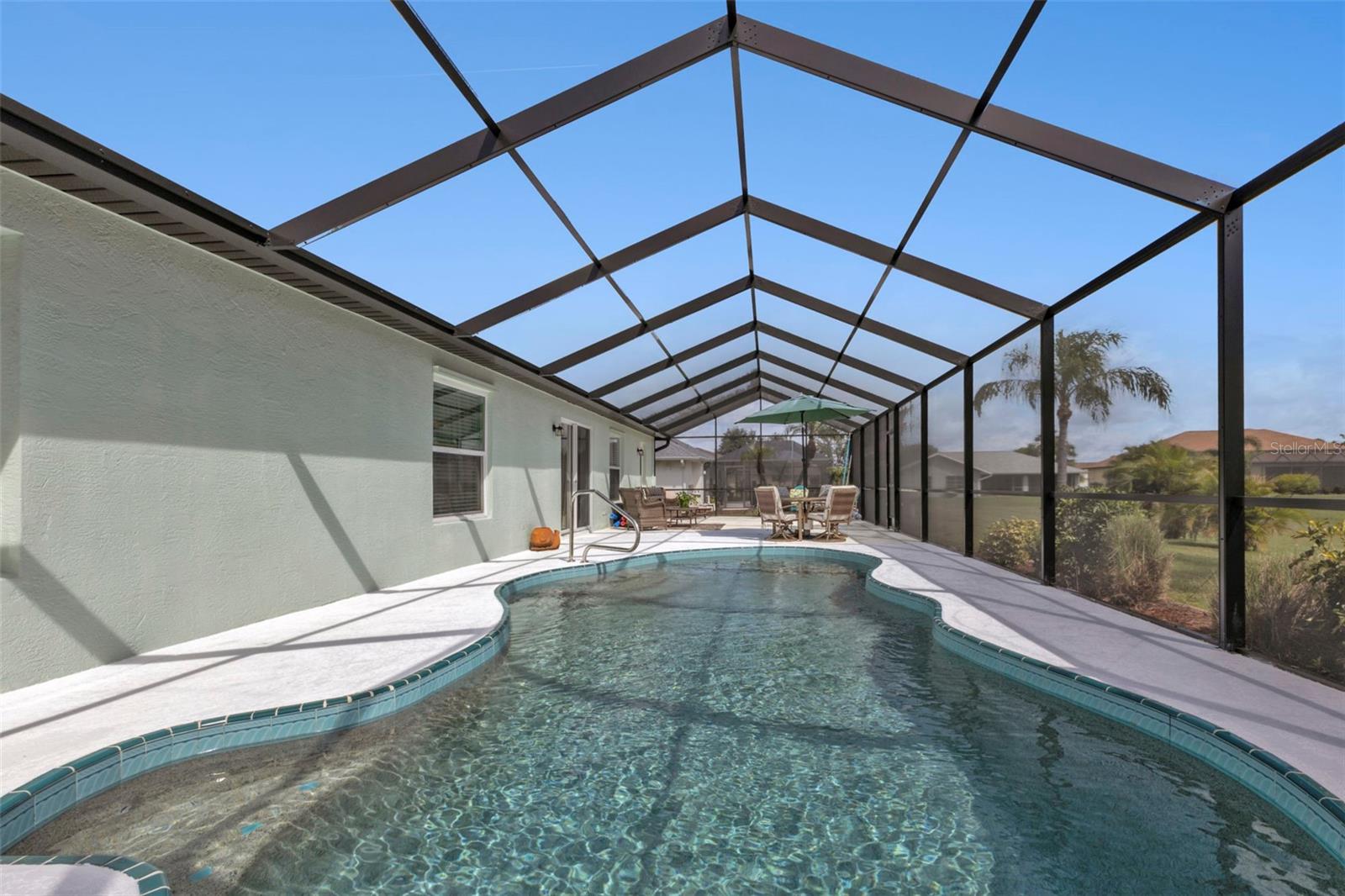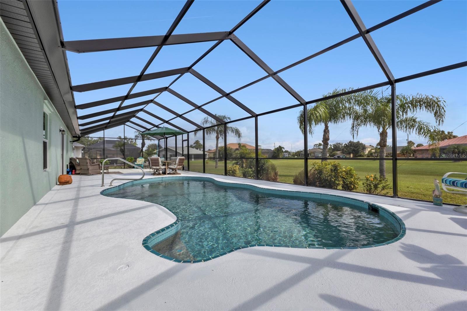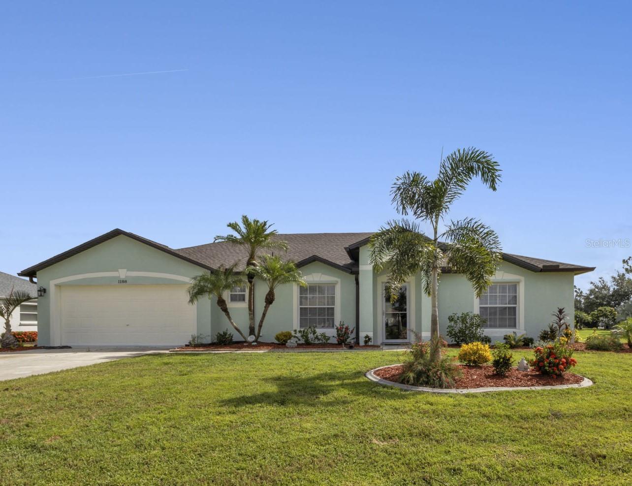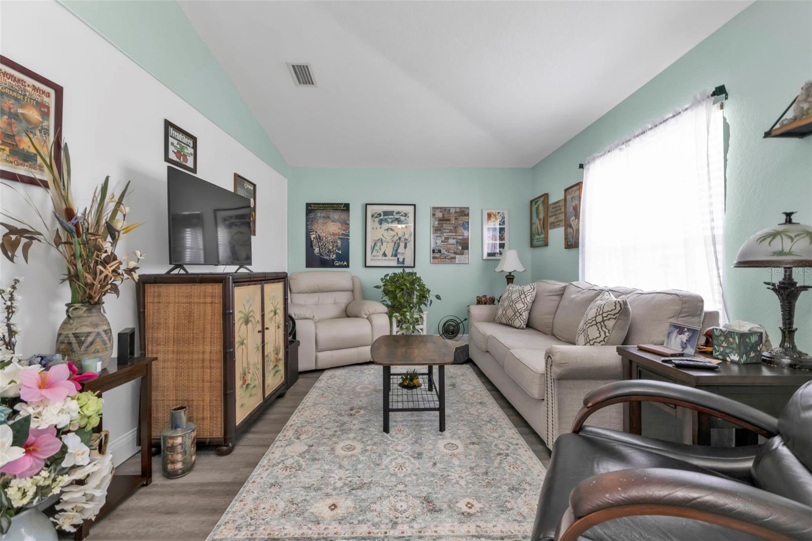 This charming residence offers 3 bedrooms plus a versatile den (or 4th bedroom) and is perfectly situated in a serene cul-de-sac. The kitchen has been beautifully remodeled with granite counters, soft-close cabinets, and a spacious pantry. Enjoy modern amenities including newer Stainless Steel appliances, a tile backsplash, and an island that seamlessly connects to the living and dining areas. An additional corner bar/coffee/wine area enhances your entertaining and storage options. The home features a thoughtful split floor plan. The guest bath has been updated with a new vanity, new fixtures, and a newly tiled shower. The expansive master bedroom (19x13) boasts windows overlooking the pool area and a generous walk-in closet. The master bath has been newly upgraded with dual sinks, modern lighting fixtures, a brand-new shower with floating shelves and a bench seat, and a convenient cabana door leading to the pool area. Additional highlights include a new A/C system (2022), a new roof (2023), and fresh interior and exterior paint. The pool deck, which spans 64 feet across the back of the home, offers ample space for relaxation and entertainment. The pool has been resurfaced, and the enclosure was just installed in August 2024. The exterior features fresh mulch, mature, trimmed landscaping, and a sprinkler system. Located in a NON-flood zone and just off the lake, this home combines style, comfort, and practicality. New hurricane shutters just ordered. BONUS .................To VA buyers......this home has an assumable % rate of 2.65. Don’t miss out on this stunning property!