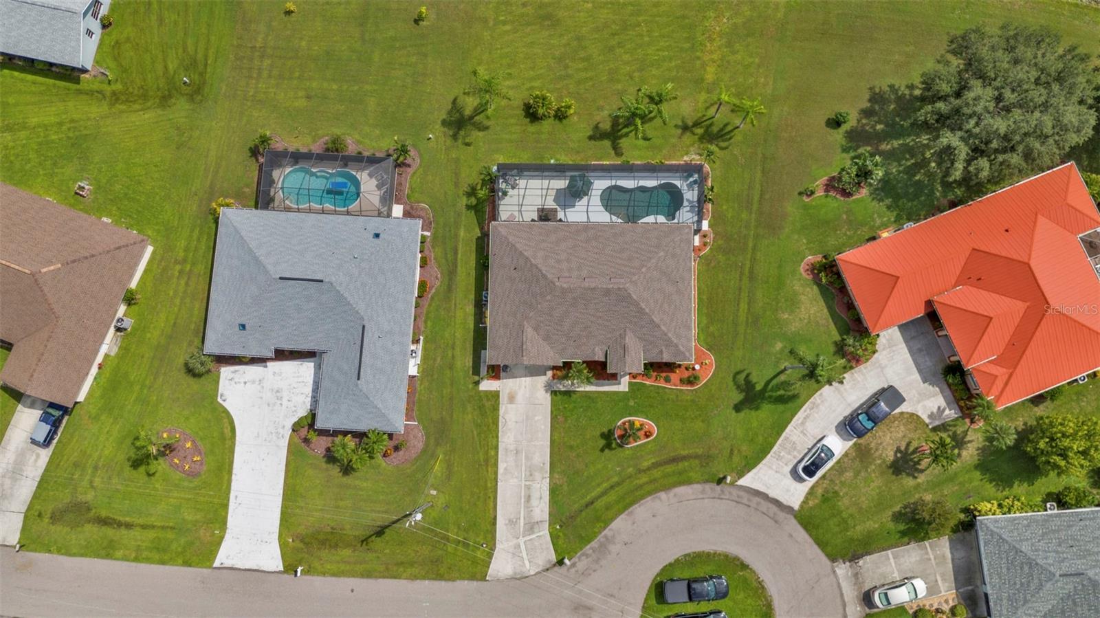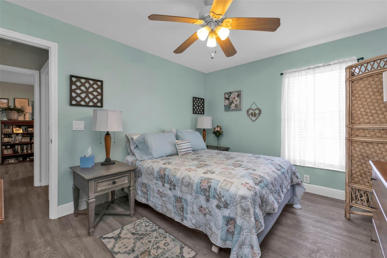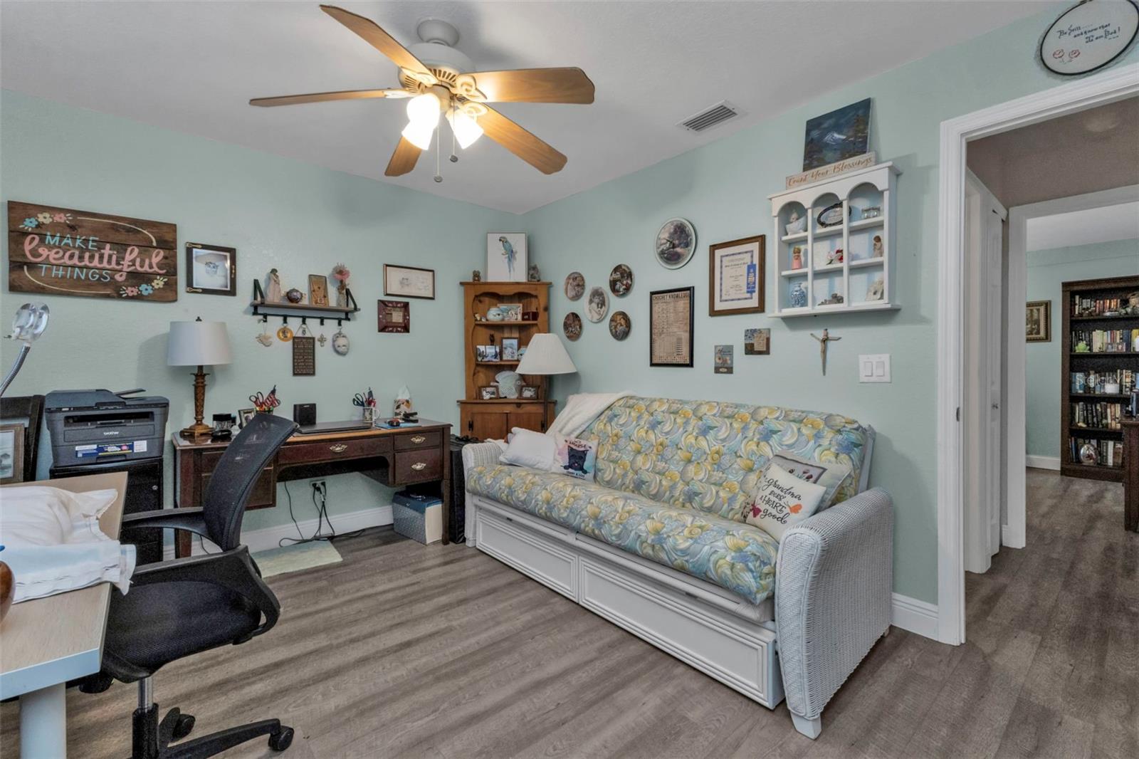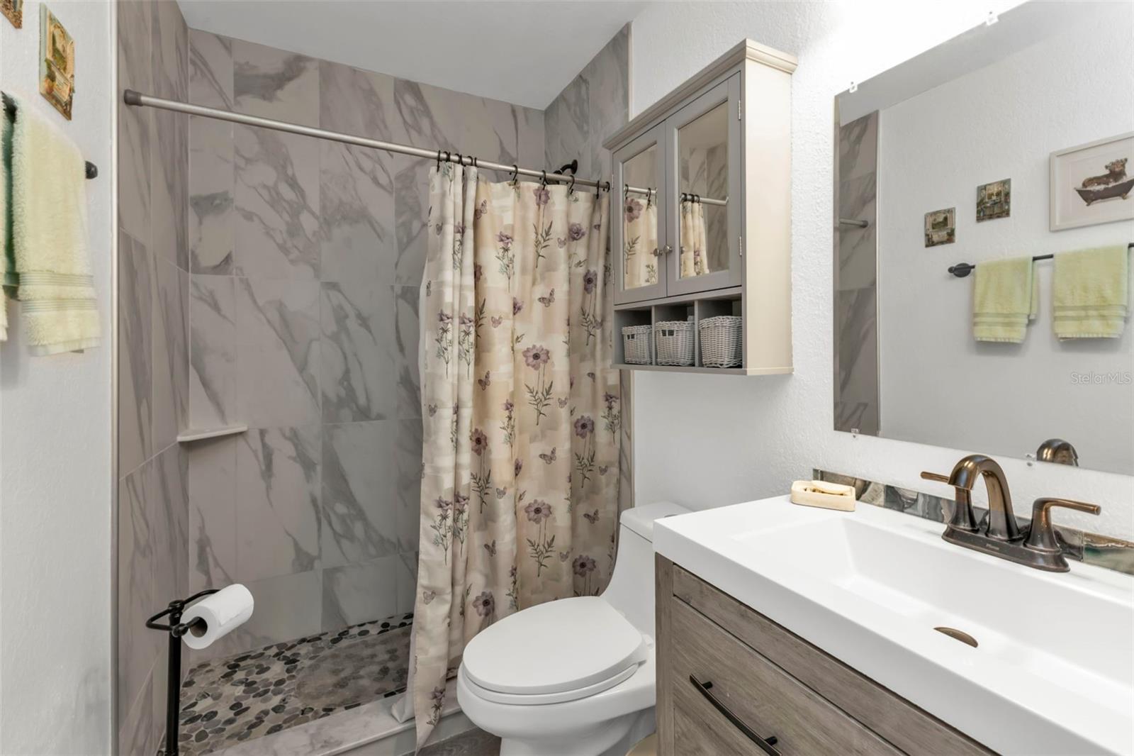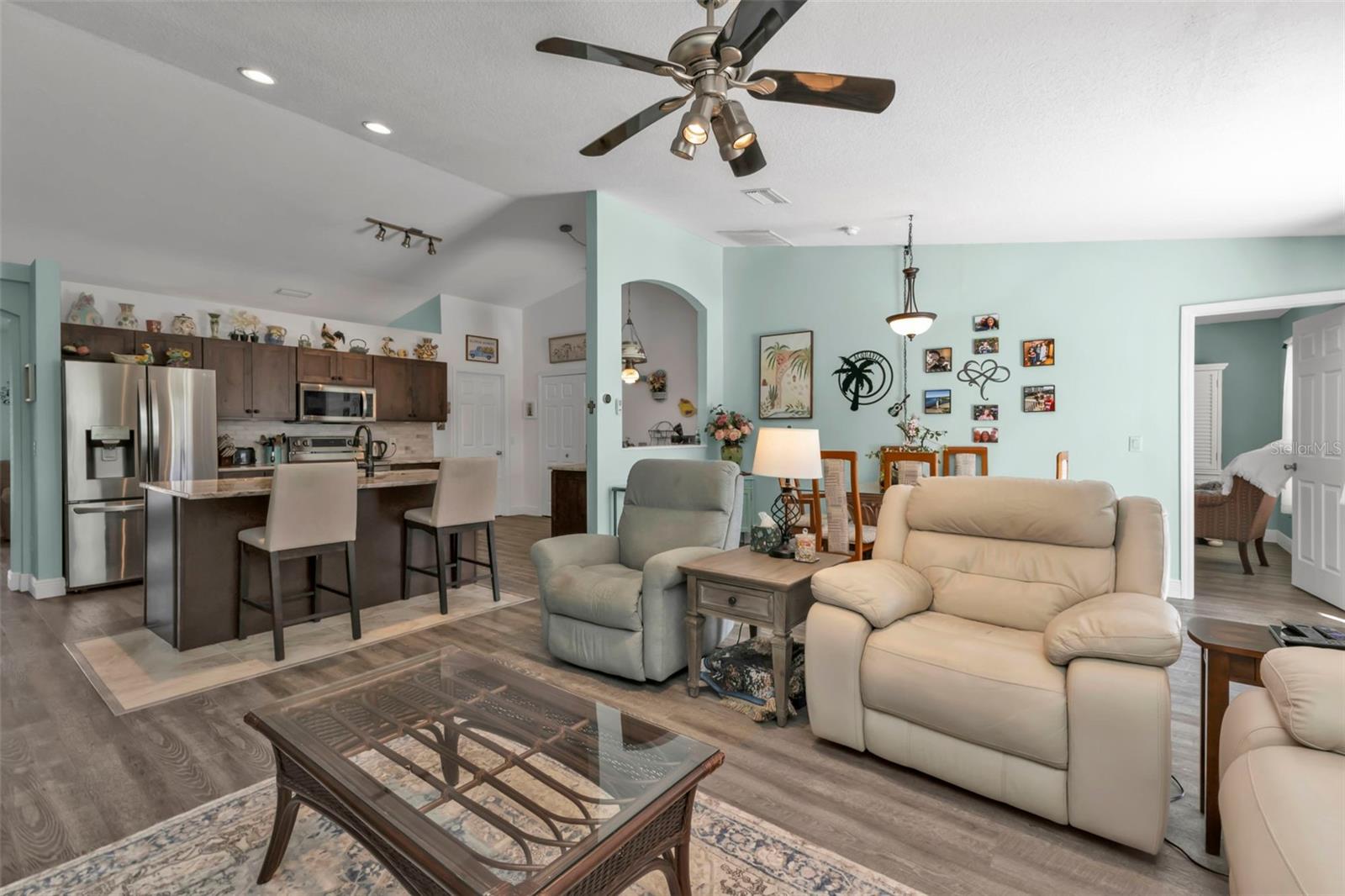 This charming residence offers 3 bedrooms plus a versatile den (or 4th bedroom) and is perfectly situated in a serene cul-de-sac. The kitchen has been beautifully remodeled with granite counters, soft-close cabinets, and a spacious pantry. Enjoy modern amenities including newer Stainless Steel appliances, a tile backsplash, and an island that seamlessly connects to the living and dining areas. An additional corner bar/coffee/wine area enhances your entertaining and storage options. The home features a thoughtful split floor plan. The guest bath has been updated with a new vanity, new fixtures, and a newly tiled shower. The expansive master bedroom (19x13) boasts windows overlooking the pool area and a generous walk-in closet. The master bath has been newly upgraded with dual sinks, modern lighting fixtures, a brand-new shower with floating shelves and a bench seat, and a convenient cabana door leading to the pool area. Additional highlights include a new A/C system (2022), a new roof (2023), and fresh interior and exterior paint. The pool deck, which spans 64 feet across the back of the home, offers ample space for relaxation and entertainment. The pool has been resurfaced, and the enclosure was just installed in August 2024. The exterior features fresh mulch, mature, trimmed landscaping, and a sprinkler system. Located in a NON-flood zone and just off the lake, this home combines style, comfort, and practicality. New hurricane shutters just ordered. BONUS .................To VA buyers......this home has an assumable % rate of 2.65. Don’t miss out on this stunning property!