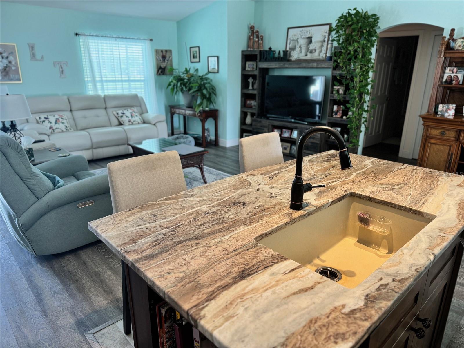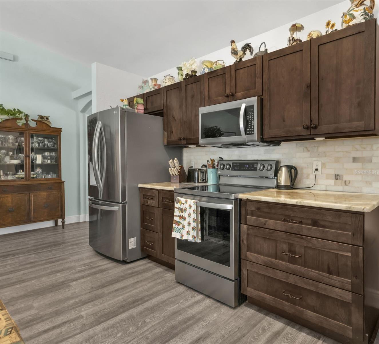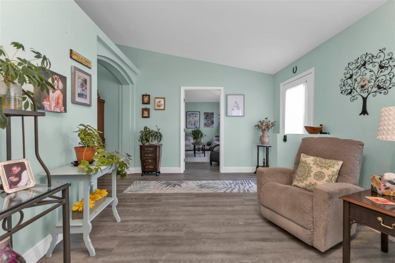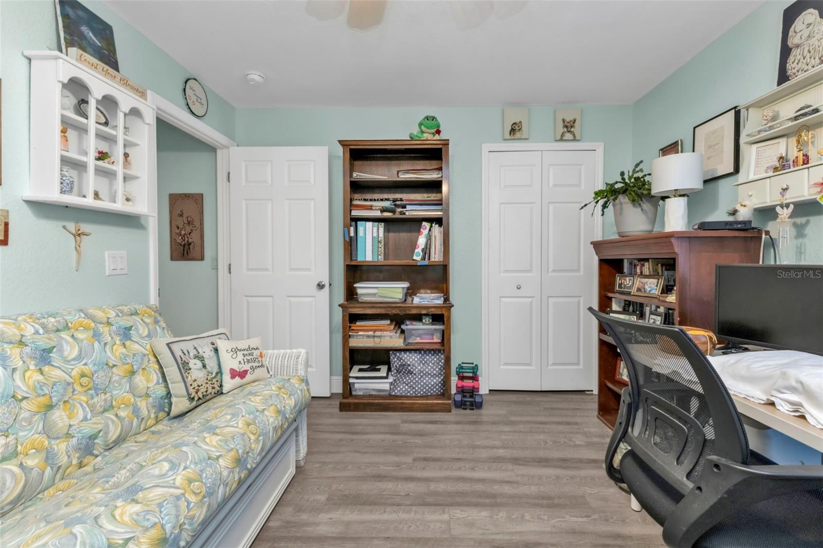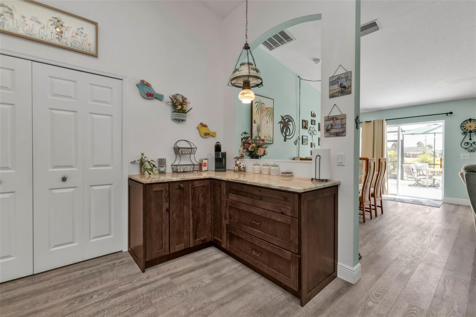 This charming residence offers 3 bedrooms plus a versatile den (or 4th bedroom) and is perfectly situated in a serene cul-de-sac. The kitchen has been beautifully remodeled with granite counters, soft-close cabinets, and a spacious pantry. Enjoy modern amenities including newer Stainless Steel appliances, a tile backsplash, and an island that seamlessly connects to the living and dining areas. An additional corner bar/coffee/wine area enhances your entertaining and storage options. The home features a thoughtful split floor plan. The guest bath has been updated with a new vanity, new fixtures, and a newly tiled shower. The expansive master bedroom (19x13) boasts windows overlooking the pool area and a generous walk-in closet. The master bath has been newly upgraded with dual sinks, modern lighting fixtures, a brand-new shower with floating shelves and a bench seat, and a convenient cabana door leading to the pool area. Additional highlights include a new A/C system (2022), a new roof (2023), and fresh interior and exterior paint. The pool deck, which spans 64 feet across the back of the home, offers ample space for relaxation and entertainment. The pool has been resurfaced, and the enclosure was just installed in August 2024. The exterior features fresh mulch, mature, trimmed landscaping, and a sprinkler system. Located in a NON-flood zone and just off the lake, this home combines style, comfort, and practicality. New hurricane shutters just ordered. BONUS .................To VA buyers......this home has an assumable % rate of 2.65. Don’t miss out on this stunning property!