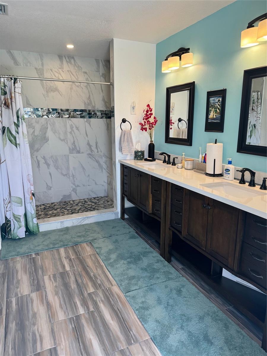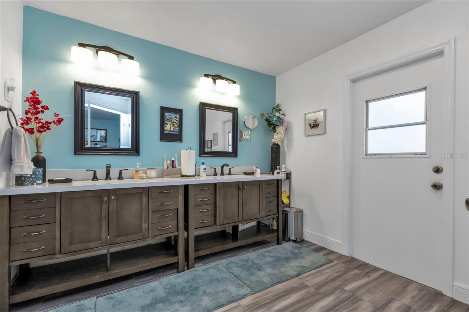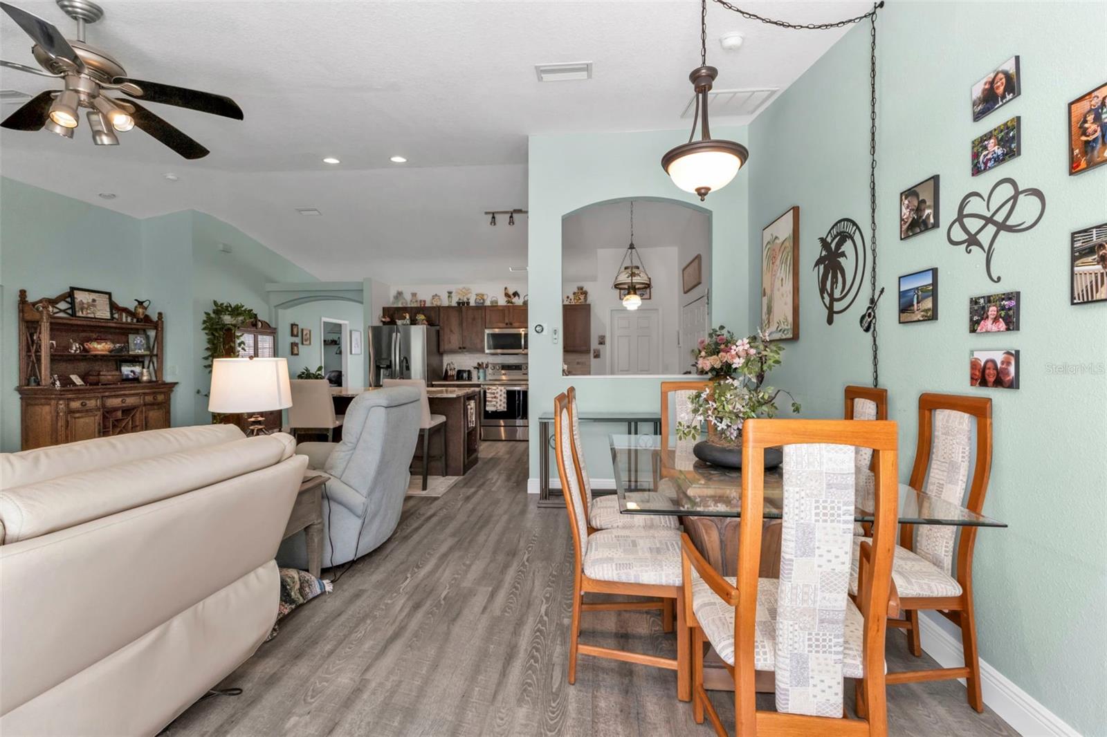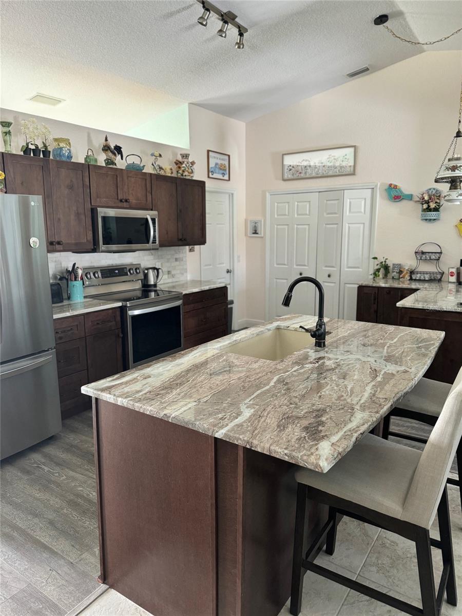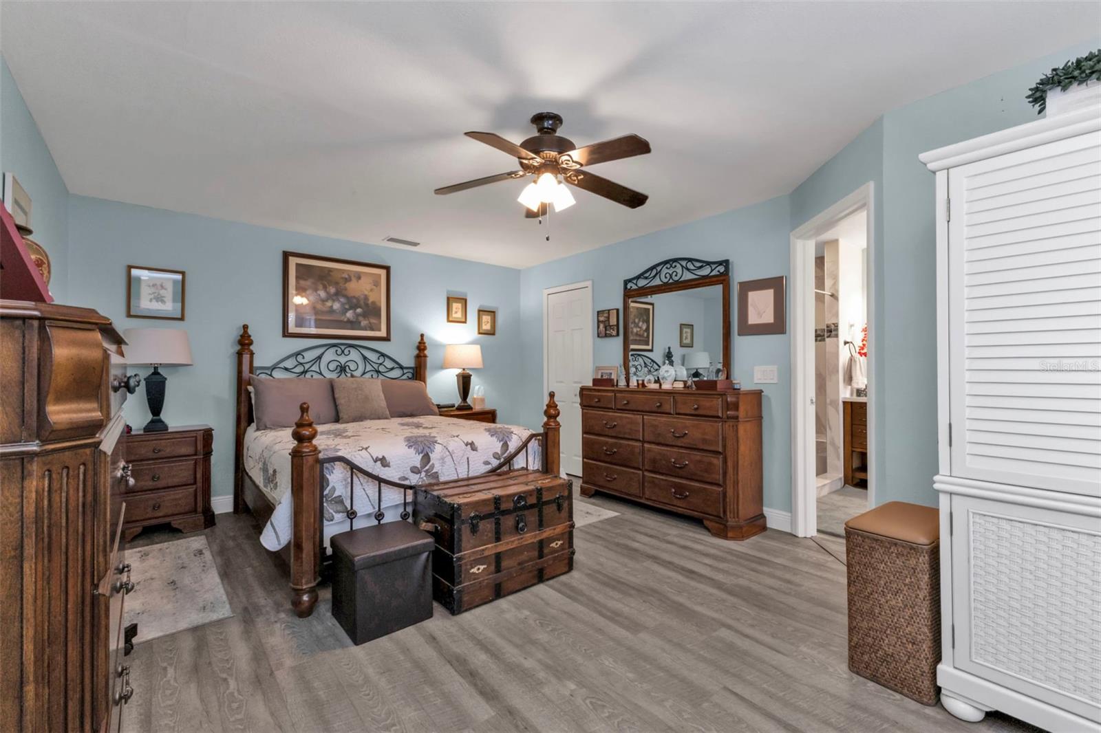 This charming residence offers 3 bedrooms plus a versatile den (or 4th bedroom) and is perfectly situated in a serene cul-de-sac. The kitchen has been beautifully remodeled with granite counters, soft-close cabinets, and a spacious pantry. Enjoy modern amenities including newer Stainless Steel appliances, a tile backsplash, and an island that seamlessly connects to the living and dining areas. An additional corner bar/coffee/wine area enhances your entertaining and storage options. The home features a thoughtful split floor plan. The guest bath has been updated with a new vanity, new fixtures, and a newly tiled shower. The expansive master bedroom (19x13) boasts windows overlooking the pool area and a generous walk-in closet. The master bath has been newly upgraded with dual sinks, modern lighting fixtures, a brand-new shower with floating shelves and a bench seat, and a convenient cabana door leading to the pool area. Additional highlights include a new A/C system (2022), a new roof (2023), and fresh interior and exterior paint. The pool deck, which spans 64 feet across the back of the home, offers ample space for relaxation and entertainment. The pool has been resurfaced, and the enclosure was just installed in August 2024. The exterior features fresh mulch, mature, trimmed landscaping, and a sprinkler system. Located in a NON-flood zone and just off the lake, this home combines style, comfort, and practicality. New hurricane shutters just ordered. BONUS .................To VA buyers......this home has an assumable % rate of 2.65. Don’t miss out on this stunning property!