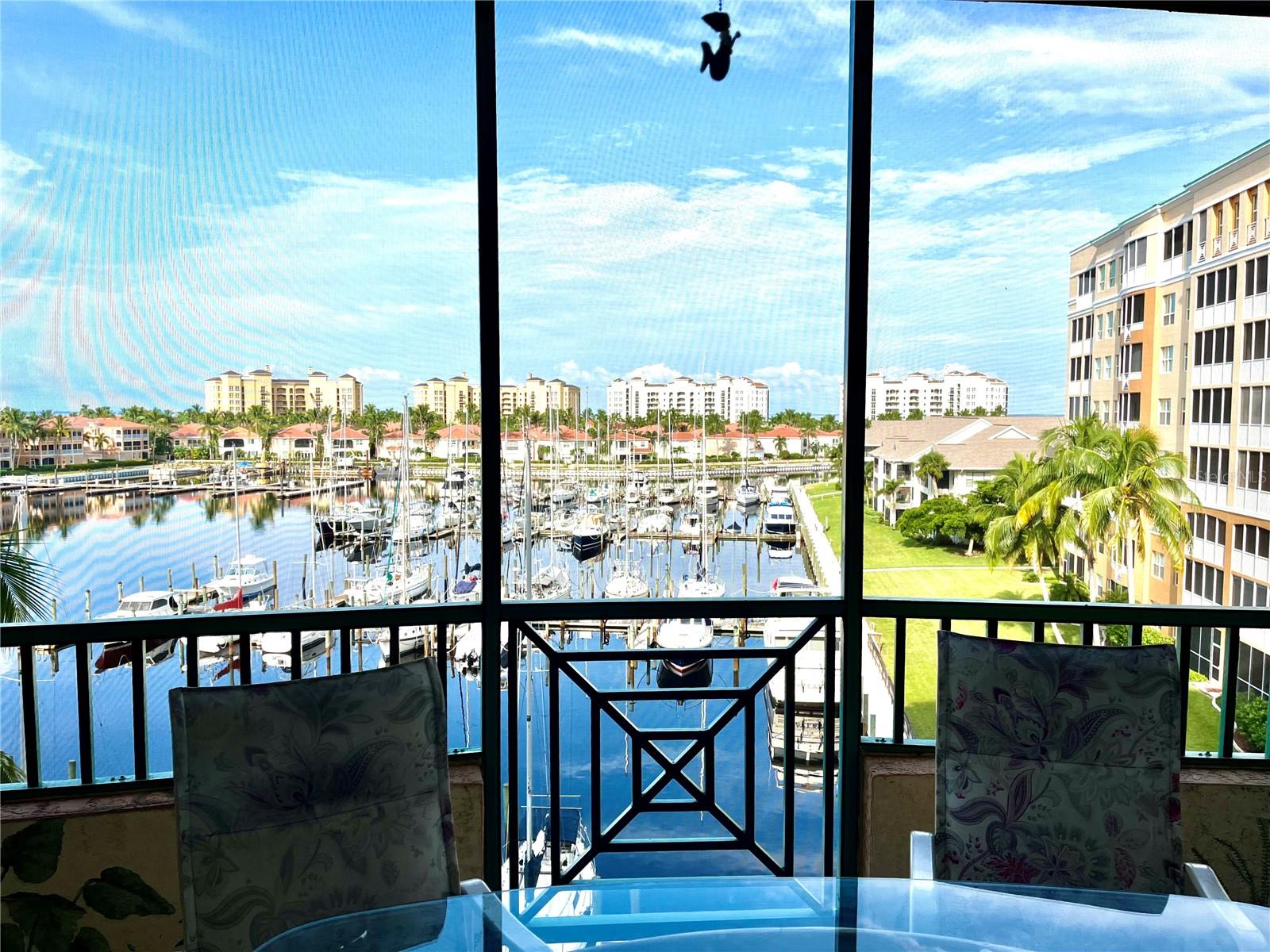 The Spectacular 5th Floor Panoramic view of the North Basin in Burnt Store Marina is sure to capture your attention! and INCLUDES 2 DEEDED COVERED PARKING GARAGES!!- ONE WITH STORAGE. Only the ORIGINAL Owners have lived here! The Condo comes FULLY FURNISHED / TURN KEY with MANY Bonuses, i.e, The NEW Full Lanai Hurricane Screen that protects the major openings to your condo. There is a NEW 1400 Watt Low Noise Generator, and a NEW boxed bike rack for storing your bicycle in your storage garage. Included is a convenient patio Refrigerator to keep your drinks cold, and you can enjoy a pretty Tropical Mural while on the Lanai. The Kitchen is Unique with beautiful Bamboo Cabinetry, graced with a few Lighted uppers with Bamboo Glass Doors, and Two convenient corner Lazy Susan cabinets, Beautiful Granite, light catching Pearl tile Back Splash, and Custom, modern Track Lighting. Bedroom one is a real Prize, with a Wood Floor, Crown Molding, Murphy Bed / Book Shelf, Custom Fan, and access to the Lanai. The Primary Bed Room Ensuite carries through with the Bamboo Cabinetry with Granite Counters, pearl tile Back Splash, and a lovely Ceiling Mural. The beautiful, Custom Barn Door gives privacy for the water closet. and the Light over the Shower/Tub is Blue Tooth - the afternoon sunshine lights up the shower tile that resemble a flowing waterfall. Everything is special, decorated with TLC - you will see it everywhere.............. Enjoy finishing off the day relaxing on your 5th floor lanai with your favorite drink, while you enjoy the breath-taking, nightly sunsets that paint the evening skies, and is sure to captivate your heart..... This RESORT COMMUNITY has 24/7 Manned Security Gates, underground utilities, a New Doggie Park, Golf Cart, Hiking and Biking Trails around the waterfront. You can also Rent a Golf Cart for a day, or a week+. There are three Dining Venues available for you: The Trading Post /Waterfront, serving Breakfast and Lunch, Pizza, an ice cream shop, and complete with a Ship Store for items you need in a pinch, even gifts for special occasions. Cass Cay has Lunch and Dinner on the Deck / Waterfront, and Finer Dining inside with a Full Bar, and Live Entertainment on the week-ends. The Linkside at the Country Club has Sunday Brunch, and Lunch and Dinner through the week. There is even a Pro Shop for the Golfer where you will be sure to find something you need, or can't live without! There are many "'A la Carte" amenities for your enjoyment: a Fully Equipped Health Club with many exercise classes, Tennis / Pickleball Courts, a 27 Hole, Executive Golf Course and Country Club, plus a Social Membership, Special events, Bocci Ball, and In Season, Live entertainment and Dancing, complete with Food Trucks, You choose- Each with separate Fees. For the Boating / Fishing Enthusiasts, this is the Largest Deep Water Marina on the Gulf Coast, Wet Slips and Dry Docks boat Storage are available, there is even a Yacht Club for boaters social events, all with Separate Fees. The Freedom Boat Club, with locations worldwide, allows you a membership and provides a variety of boats for your daily excursions. Burnt Store Marina is owned by Safe Harbor, the largest Marina owners in the world. There is so much available - something for everyone, once you get here you won't want to leave your special place in paradise... ..but it will take awhile - perhaps years, to realize you are not on vacation.....You are Home! This IS Paradise.