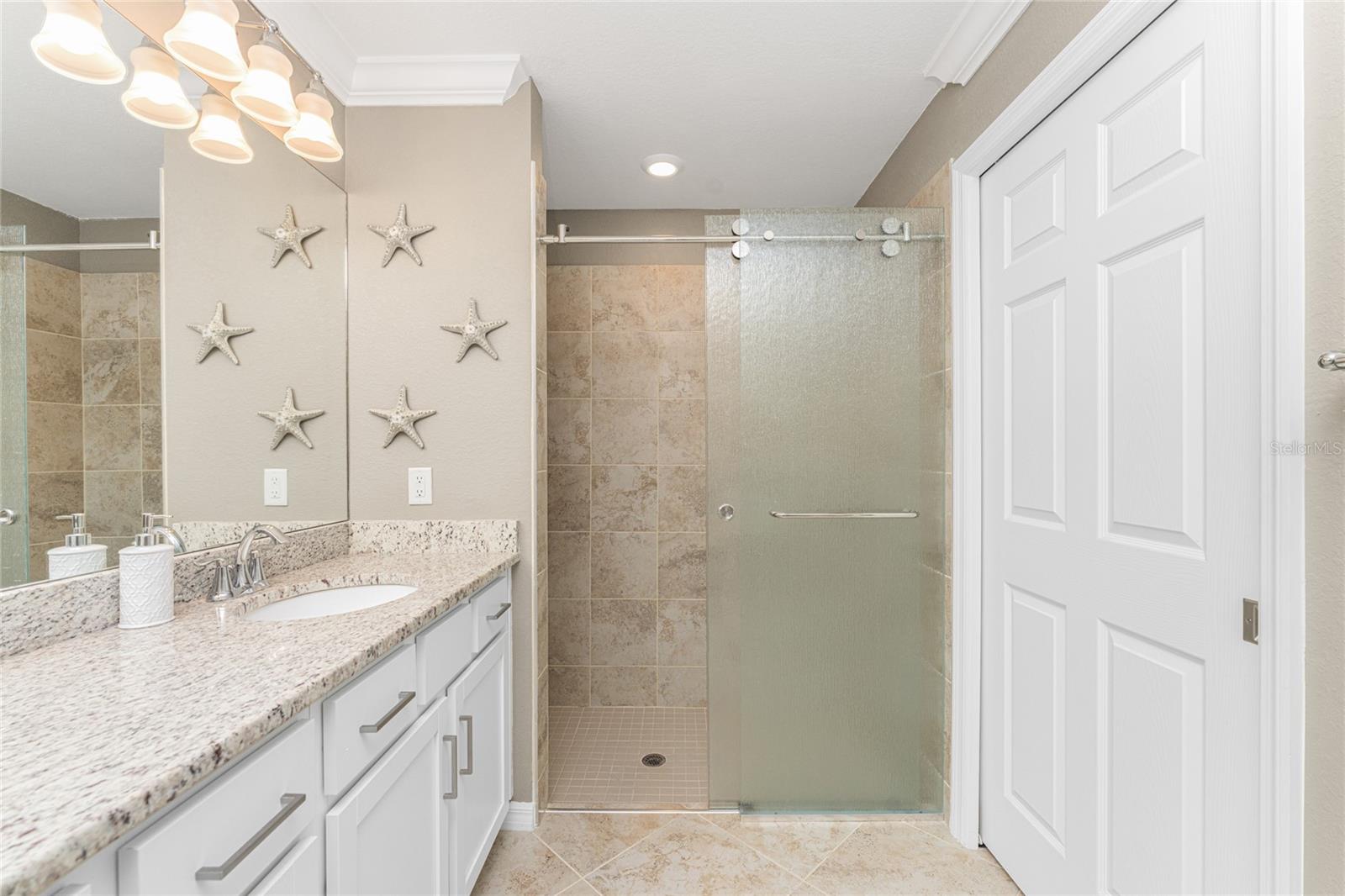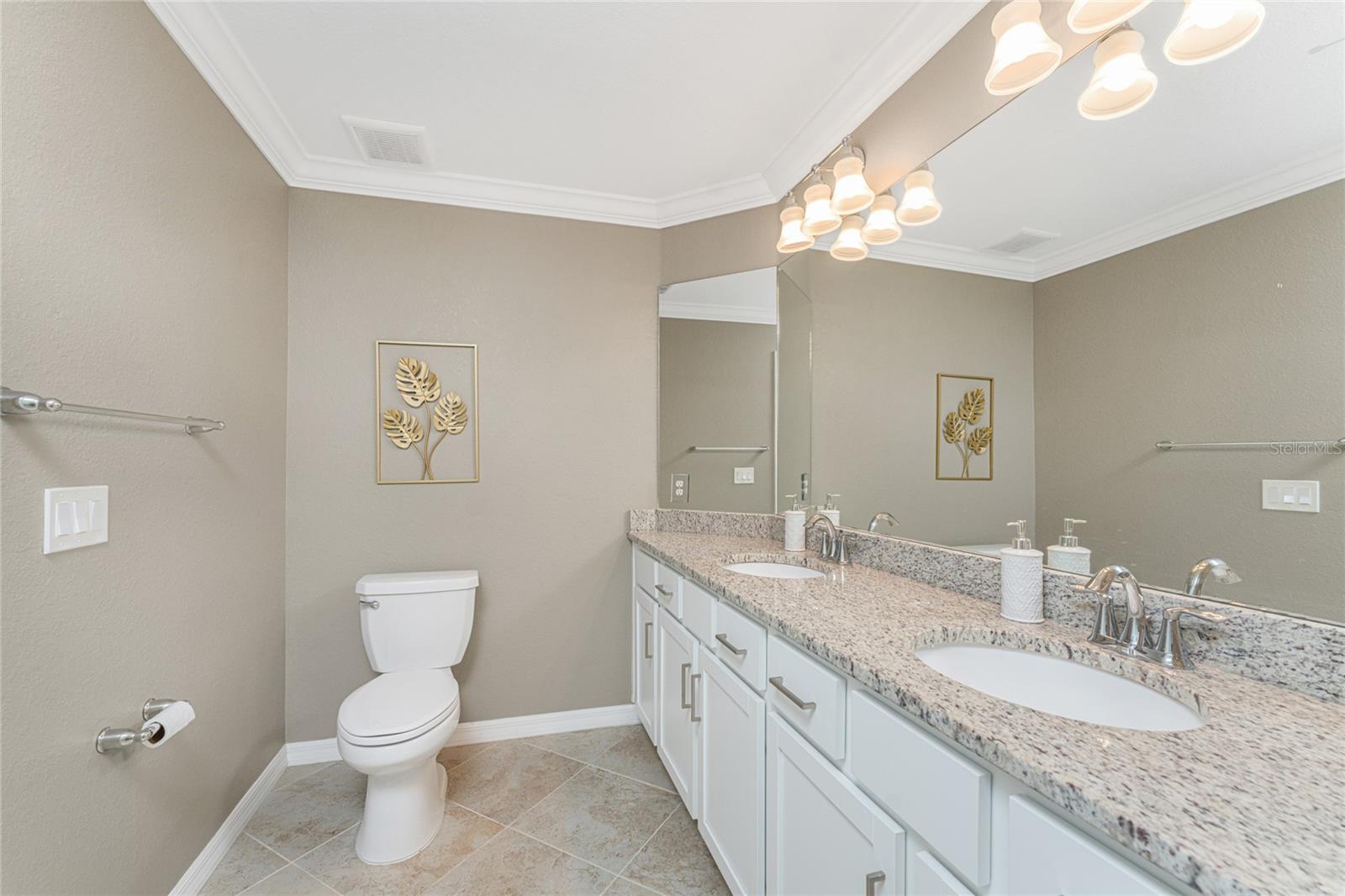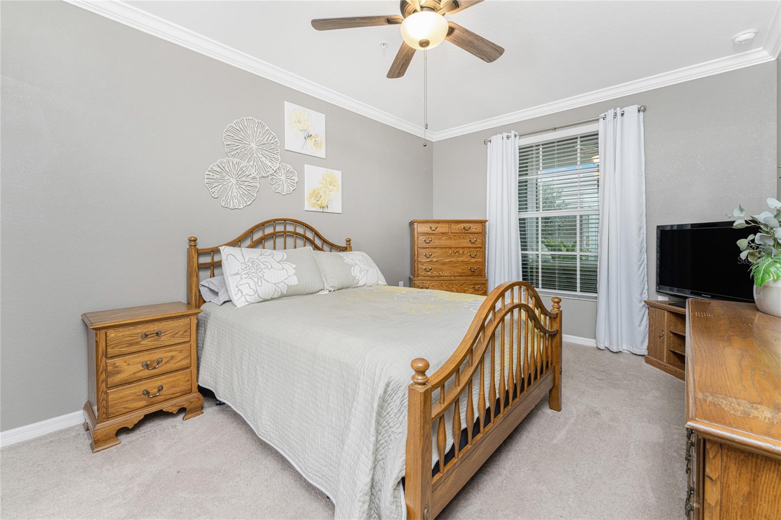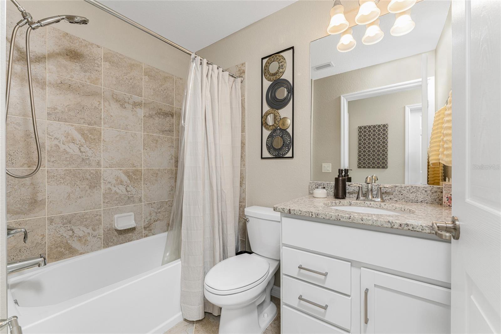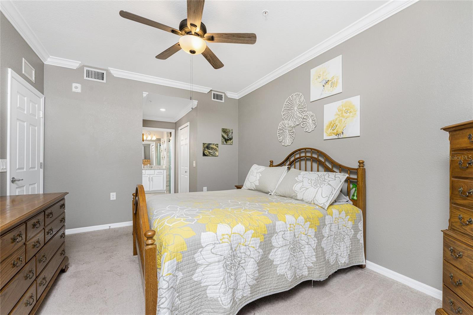 This exquisite ground-floor Veranda condo comes with a DEEDED GOLF MEMBERSHIP, providing you with exclusive access to the community's premier Gordon Lewis golf course—an unparalleled perk for golf enthusiasts. Offered TURNKEY FURNISHED, this condo boasts a desirable furniture package, ready for you to move right in. You will be welcomed home by a spacious screened in front lanai where you will enjoy relaxing with friends or curling up with your favorite book. Step inside into a bright, open space that showcases a picturesque backdrop featuring panoramic golf and water views. Diamond-set tile flooring throughout the main living area, seamlessly connects the striking open kitchen, dining, and living spaces. The well-appointed kitchen is a chef's delight, featuring an expansive island with bar seating, striking pendant lighting, granite countertops, and stainless steel appliances. Two spacious pantry closets provide ample storage, making this kitchen as functional as it is beautiful. Enjoy picturesque views of the golf course from the dining area, creating a pleasing backdrop for every meal. The living area flows effortlessly to the back screened lanais, perfect for enjoying a morning coffee, evening sunsets, or hosting guests with views of the golf course and lake beyond. The primary suite is a private sanctuary, complete with crown molding, dual walk-in closets, and an en-suite bathroom featuring a walk-in shower with frameless rain glass, dual sinks, and a large granite-topped vanity. The guest area offers a comfortable bedroom, along with a convenient bathroom featuring a granite-topped vanity, ensuring comfort and privacy for your visitors. For those working from home or seeking a quiet space to unwind, the den off the kitchen is an ideal spot for an office or media room. Offering the convenience of a single family home, this maintenance free Diangelo residence offers a garage just steps from the front door. Heritage Landing delivers true resort living, with a stunning Gordon Lewis designed golf course, beach entry swimming pool and poolside restaurant, tennis, pickleball, bocce and a state of the art fitness center with a sauna and locker rooms. Residents will soon enjoy the much anticipated Clubhouse, which is expected to be completed by the end of the year. Come for the lifestyle…stay for life.