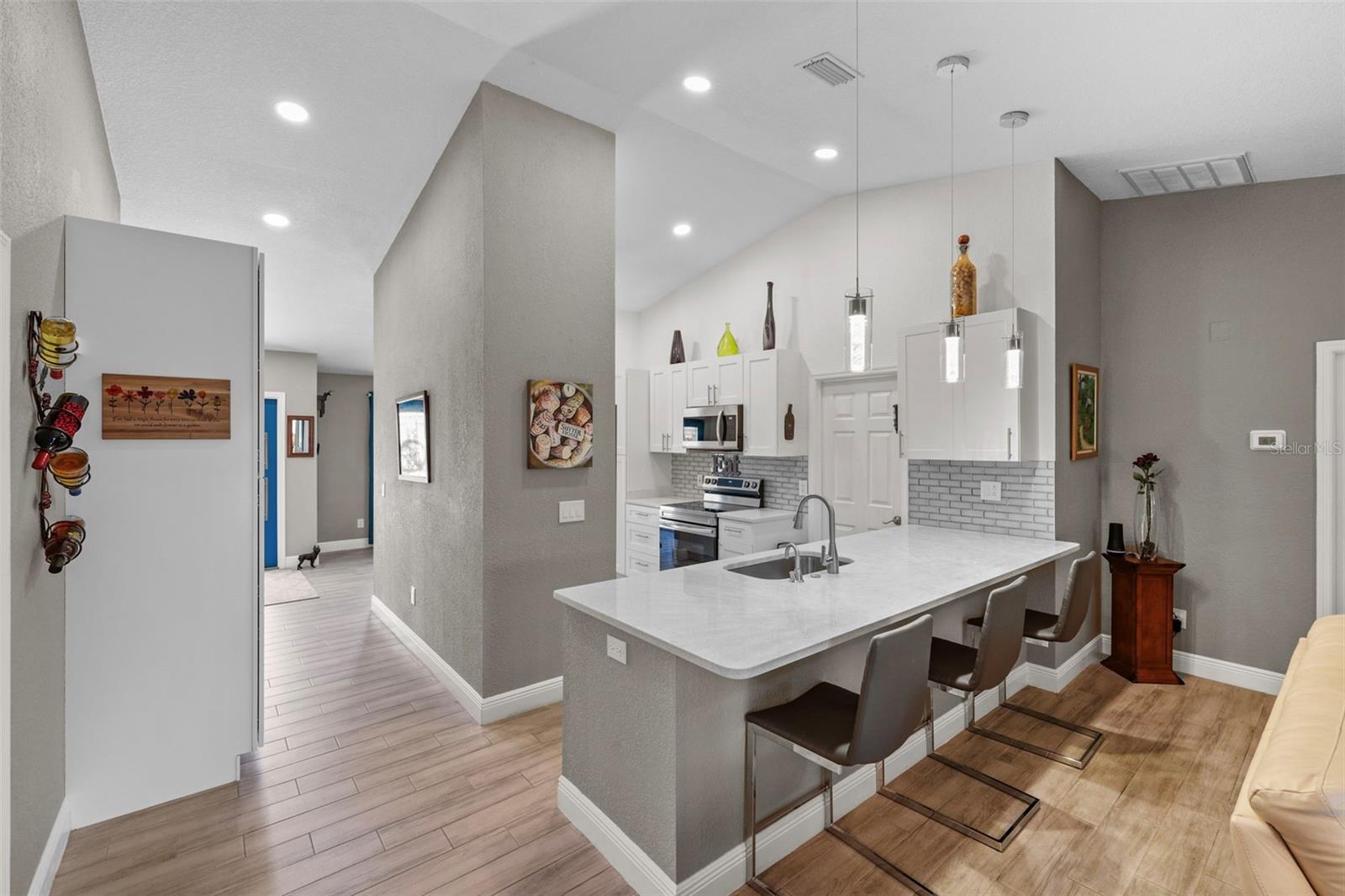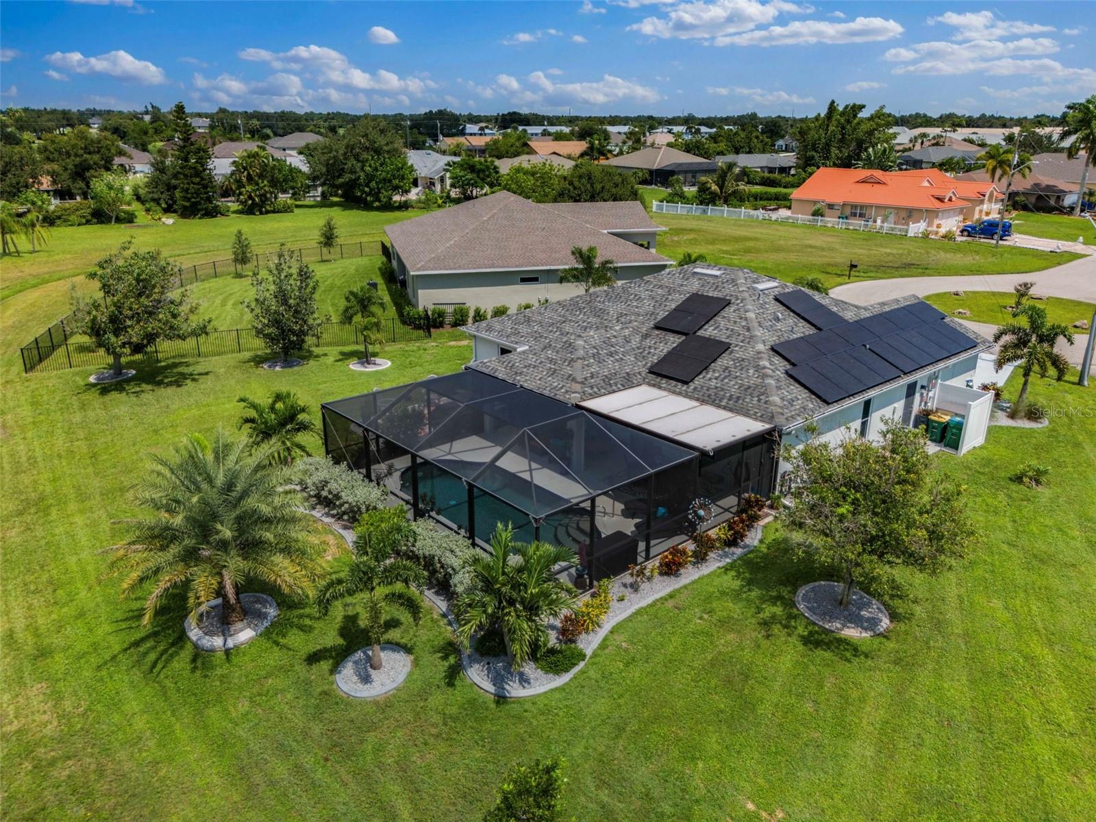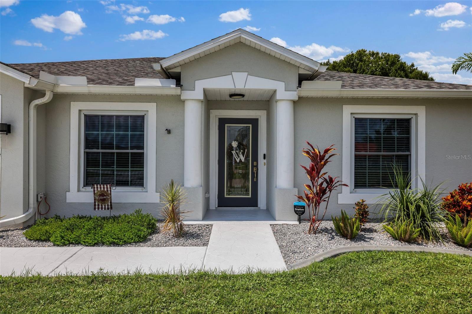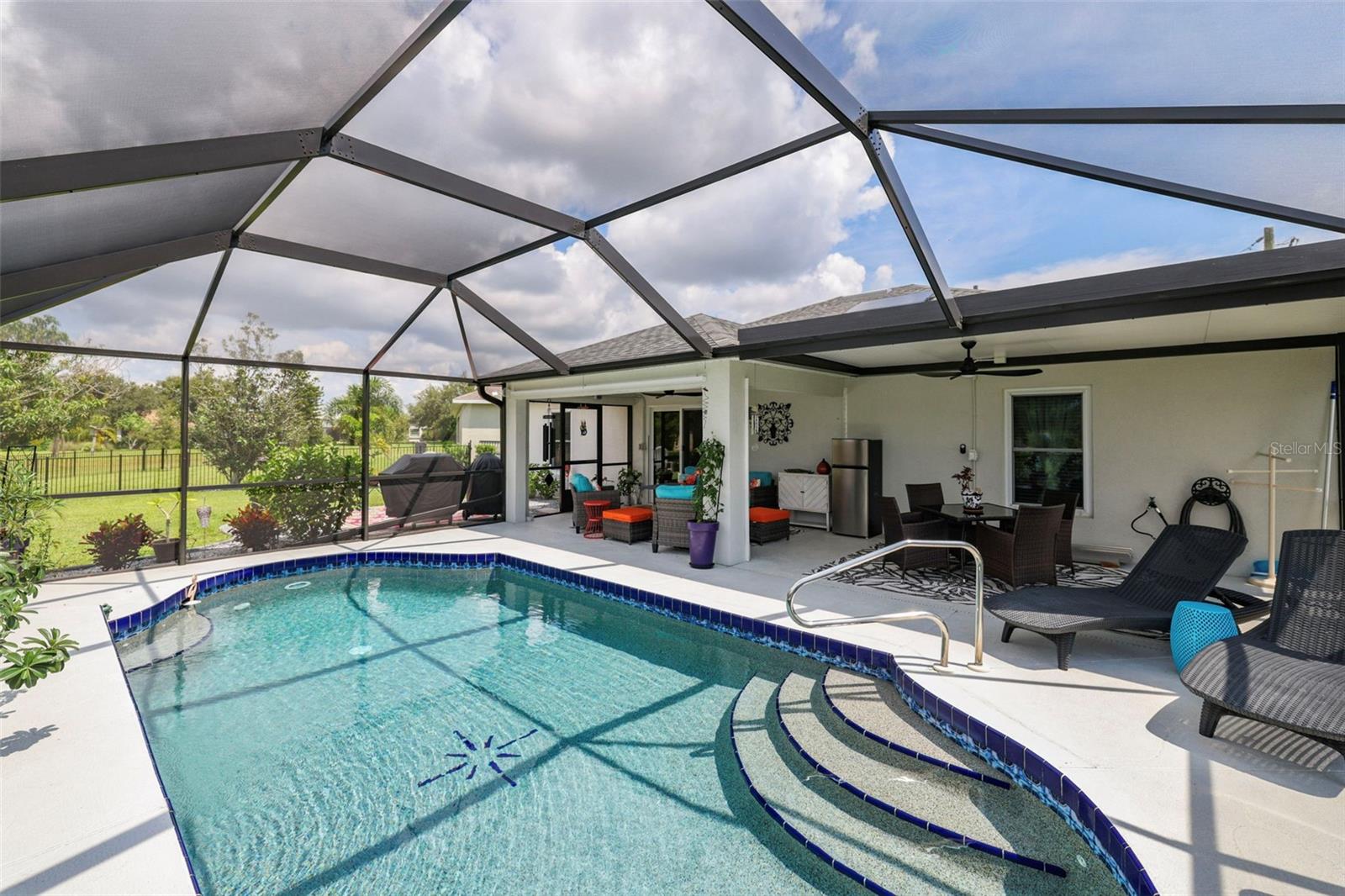 This Stunning 4-Bedroom 2-Bath Pool Home is Beautifully Remodeled inside and out. Unveil the charm of this professionally updated residence in the esteemed Deep Creek Golf Community. Sitting on an oversized peaceful cul-de-sac you will enjoy fresh tropical landscaping, nicely painted exterior, and inviting curb appeal. Bright and Spacious Interior. Enjoy the natural light flowing through the freshly painted interior, complemented by luxury faux wood plank tile flooring and Dramatic Vaulted ceilings. The open floor plan enhances the sense of space and luxury. Gourmet Kitchen: The heart of the home is a completely renovated kitchen with added cabinetry for additional storage. Features include Elegant Quartz countertops, brand-new white shaker cabinetry, modern light fixtures,stainless-steel appliances, including a built-in microwave, ceramic top stove and a sweet backsplash to bring it all together with recessed lighting. Also Hot water dispenser and garbage disposal for an added bonus. The Newly Screened in Lanai with storm shutters in lanai was just installed in 2023 making this Outdoor Oasis the perfect backyard retreat. Enjoy a sparkling heated swimming pool, lush mango tree, a lemon tree, an orange tree, and additional patio added for grilling and relaxing by the pool. The private backyard is designed for ultimate outdoor enjoyment. Blue Energy Solar has an optional lease in place currently which lowers your electric bill tremendously. For two adults this August's electric bill was only around $130 a month. What a great savings and opportunity for any buyer. The primary bedroom features ample closet space, a ceiling fan, and a renovated en suite bathroom with Quartz countertops and new cabinetry. All bedrooms are spacious and have nice size bedroom closets with modern faux wood plank tile flooring Other features include Roof Replaced in 2021, a new A/C in 2021, newer whole house Impact/Hurricane windows and a newer water heater. The property has wonderful curb appeal sitting in the center of the Cul de sac making this yard a perfect oversized lot in the heart of Deep Creek. What a Beautiful home in a Prime Location. Enjoy close proximity to shopping, Fine dining and Beautiful Beaches. This exceptional property invites you to experience the best in modern living. Call now to schedule your private and exclusive tour!