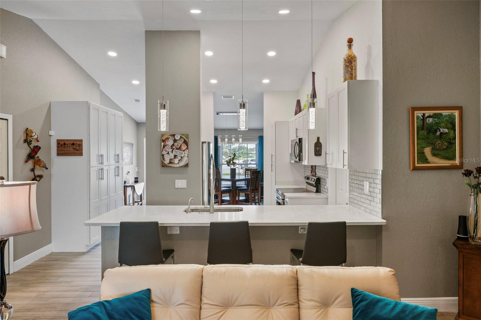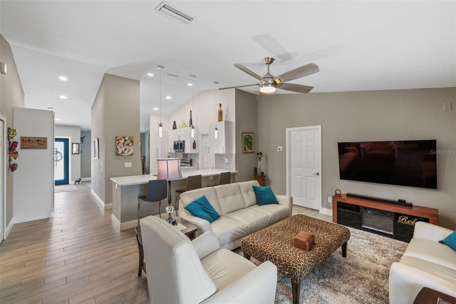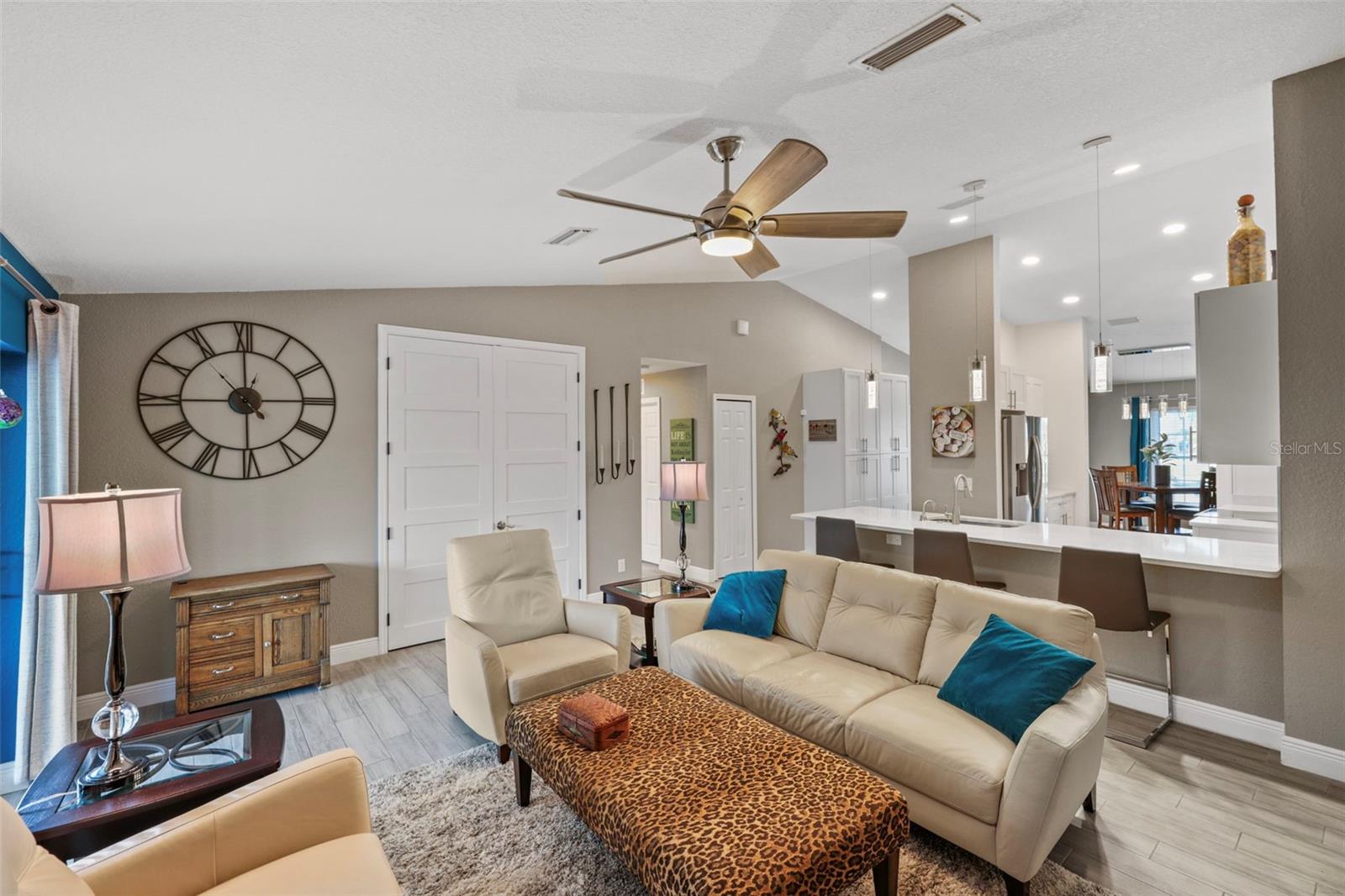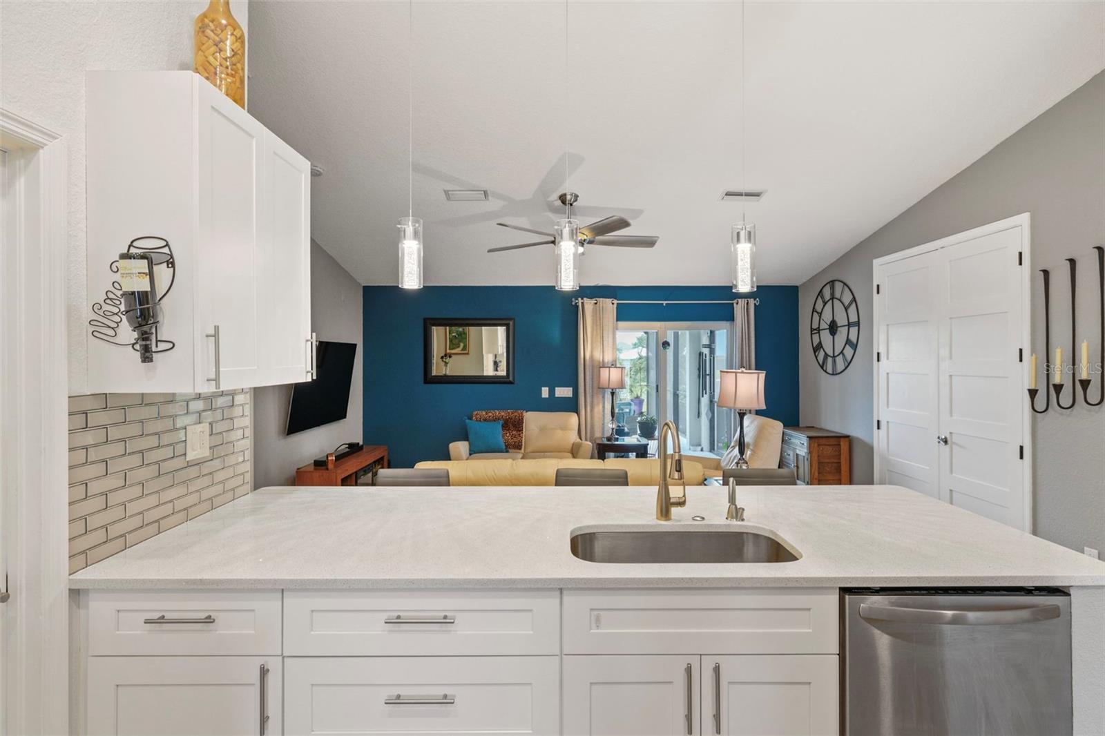 This Stunning 4-Bedroom 2-Bath Pool Home is Beautifully Remodeled inside and out. Unveil the charm of this professionally updated residence in the esteemed Deep Creek Golf Community. Sitting on an oversized peaceful cul-de-sac you will enjoy fresh tropical landscaping, nicely painted exterior, and inviting curb appeal. Bright and Spacious Interior. Enjoy the natural light flowing through the freshly painted interior, complemented by luxury faux wood plank tile flooring and Dramatic Vaulted ceilings. The open floor plan enhances the sense of space and luxury. Gourmet Kitchen: The heart of the home is a completely renovated kitchen with added cabinetry for additional storage. Features include Elegant Quartz countertops, brand-new white shaker cabinetry, modern light fixtures,stainless-steel appliances, including a built-in microwave, ceramic top stove and a sweet backsplash to bring it all together with recessed lighting. Also Hot water dispenser and garbage disposal for an added bonus. The Newly Screened in Lanai with storm shutters in lanai was just installed in 2023 making this Outdoor Oasis the perfect backyard retreat. Enjoy a sparkling heated swimming pool, lush mango tree, a lemon tree, an orange tree, and additional patio added for grilling and relaxing by the pool. The private backyard is designed for ultimate outdoor enjoyment. Blue Energy Solar has an optional lease in place currently which lowers your electric bill tremendously. For two adults this August's electric bill was only around $130 a month. What a great savings and opportunity for any buyer. The primary bedroom features ample closet space, a ceiling fan, and a renovated en suite bathroom with Quartz countertops and new cabinetry. All bedrooms are spacious and have nice size bedroom closets with modern faux wood plank tile flooring Other features include Roof Replaced in 2021, a new A/C in 2021, newer whole house Impact/Hurricane windows and a newer water heater. The property has wonderful curb appeal sitting in the center of the Cul de sac making this yard a perfect oversized lot in the heart of Deep Creek. What a Beautiful home in a Prime Location. Enjoy close proximity to shopping, Fine dining and Beautiful Beaches. This exceptional property invites you to experience the best in modern living. Call now to schedule your private and exclusive tour!