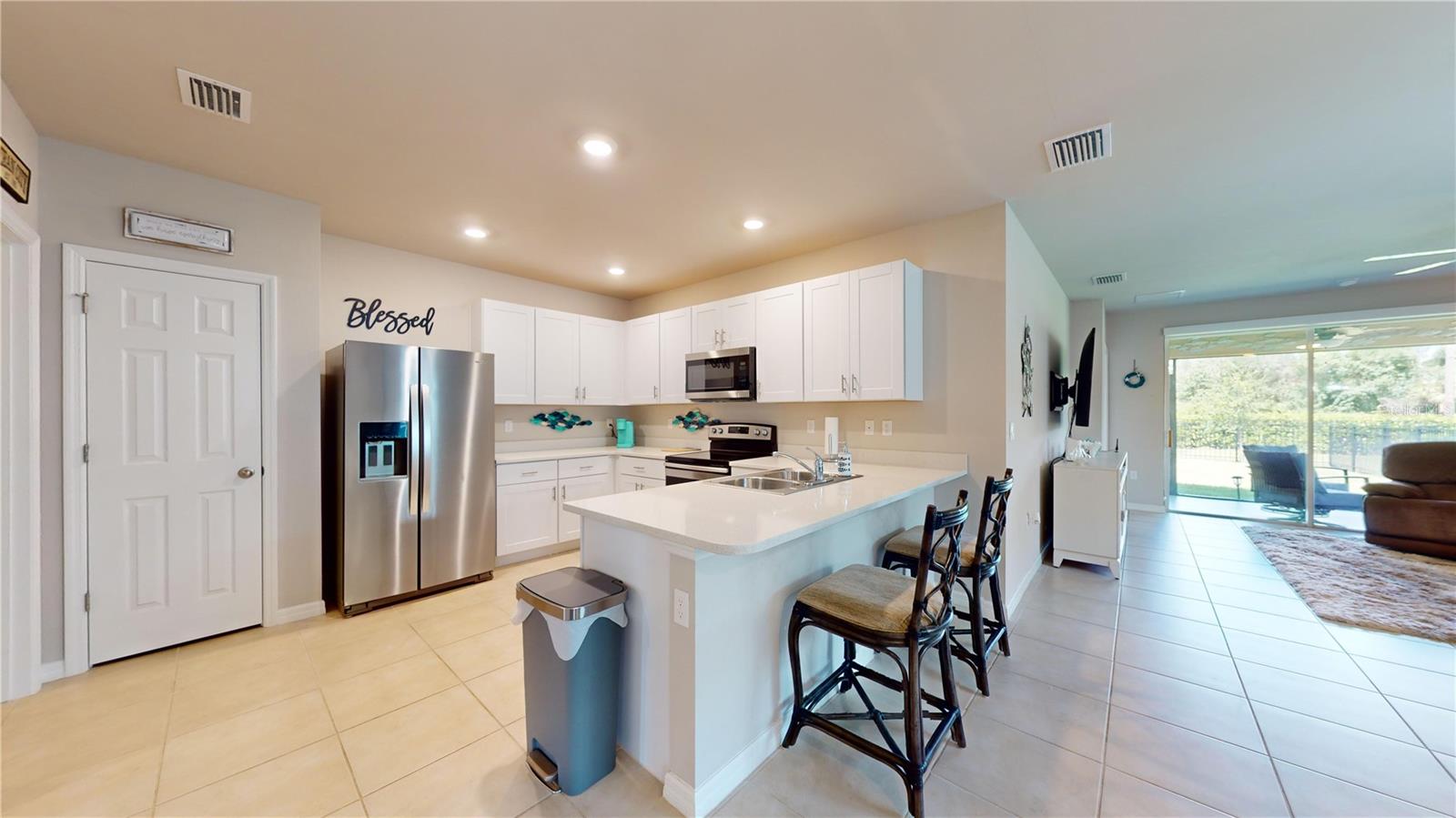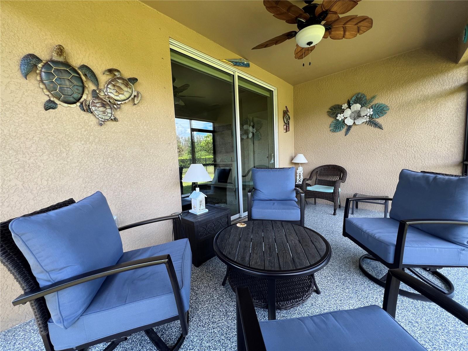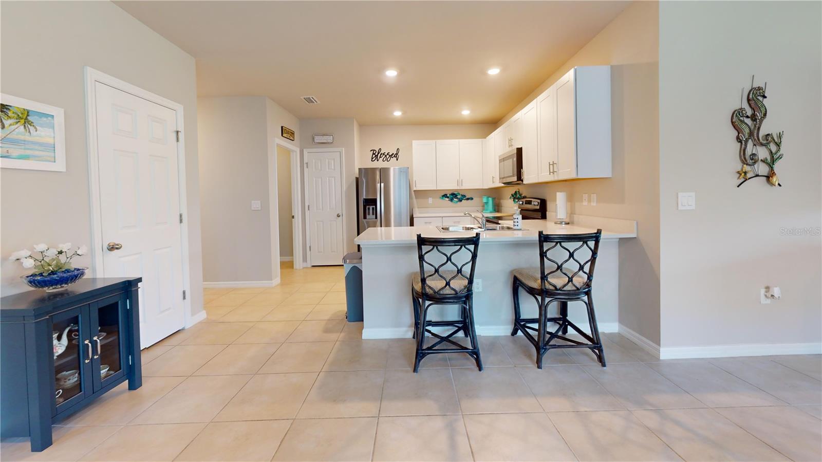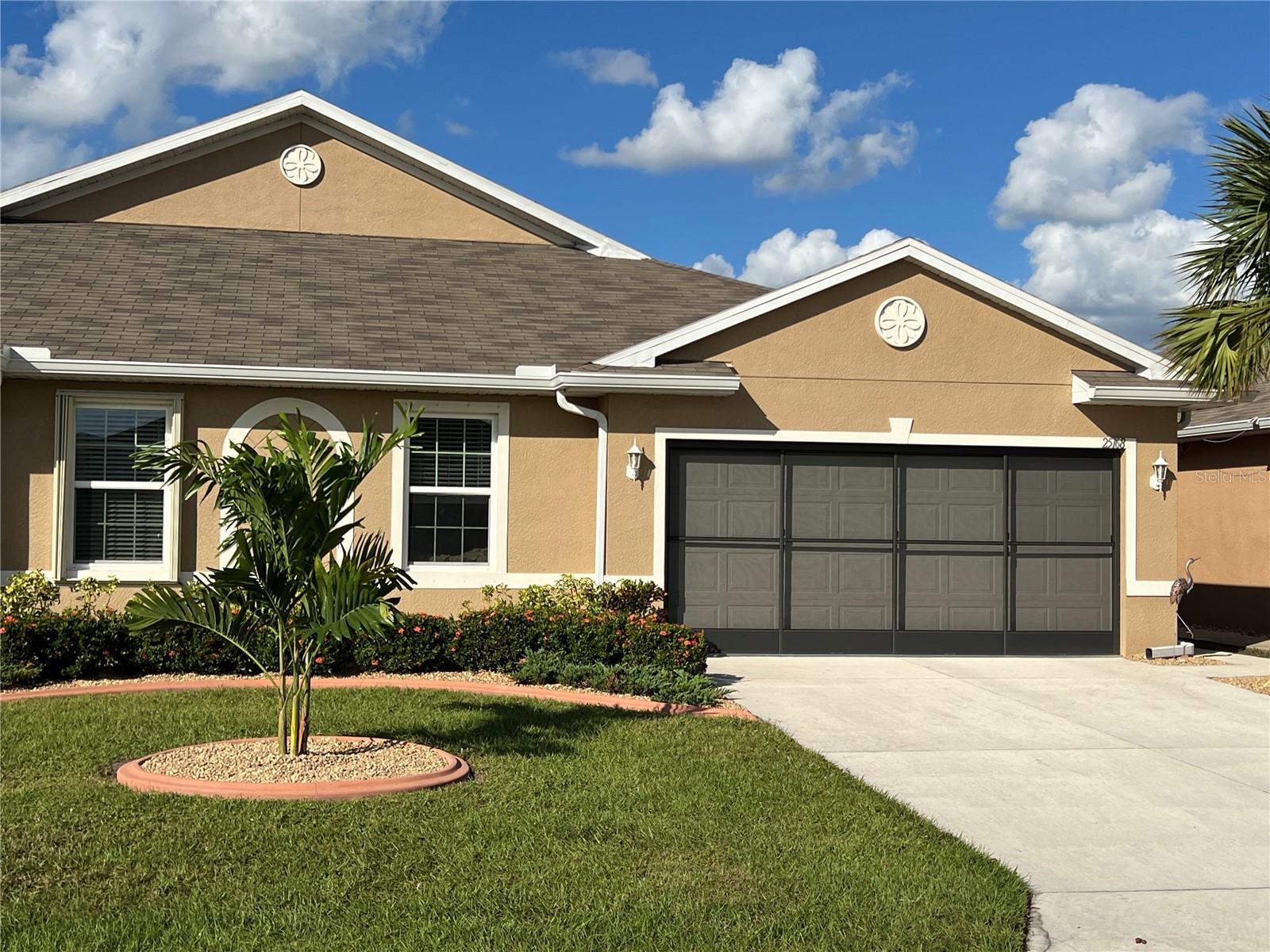 UPDATE, PRICE REDUCTION!! PRICED TO SALE!! UPDATE: New premium vinyl plank flooring installed in bedrooms and den 2-25 (see photos) WELCOME HOME to the beautiful, gated community of Waterford Estates. Just minutes from PG airport and the quaint downtown Punta Gorda. Owner's pride shows through in this meticulously maintained 2 bedrooms, 2 bathrooms, plus den Villa. Soak in the array of enhancements, including an expansive great room, kitchen, and baths all adorned with ceramic tile. The kitchen, bright and inviting, is equipped with sleek quartz countertops, and stainless-steel appliances. Storage is plentiful, with a spacious pantry, convenient coat closet near the entrance, and a linen/utility closet along the hallway. French doors add a touch of elegance, leading from the main living space to the den, which doubles as a potential third bedroom that comes with a murphy bed. The primary suite offers a well-designed bathroom with quarts counter tops and an expansive walk-in closet with separate water closet. The villa’s thoughtful layout includes a split floor plan, placing the second bedroom at the opposite end of the home, mere steps from the guest bathroom that has solid surface counters and safety bars in the shower. Notable upgrades includes, NEW Laminate floors in bedrooms, impact glass and additional clear hurricane shutters for extra protection, durable epoxy coating on the entry, lanai and garage floors and entire 2 car garage door screen, rain gutters, a screened front entry along with a fenced back yard. All furnishings and artwork are negotiable. Waterford Estates offers a gated community experience with a prime location just 10 minutes from downtown Punta Gorda, the scenic Charlotte Harbor Waterfront, and exceptional dining options. Residents enjoy upscale amenities such as a clubhouse with a billiards room, meeting space, and a fitness center. Outdoors, two resort-style heated pools await, alongside bocce ball and pickleball courts, and scenic walking paths. Quarterly association dues cover lawn care, irrigation, community amenities, and management services. The neighborhood is golf cart-friendly and allows fences subject to style and height guidelines. If you’re in search of a low-maintenance, single-story home with a 2-car garage in a vibrant community, this villa is an ideal match. Act quickly—this one will not last long!