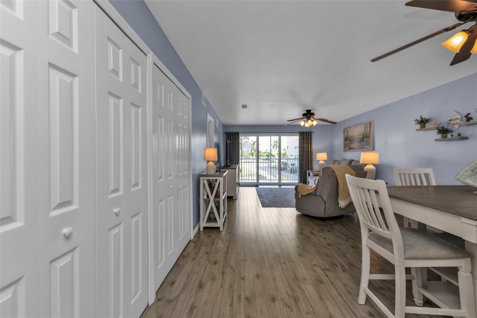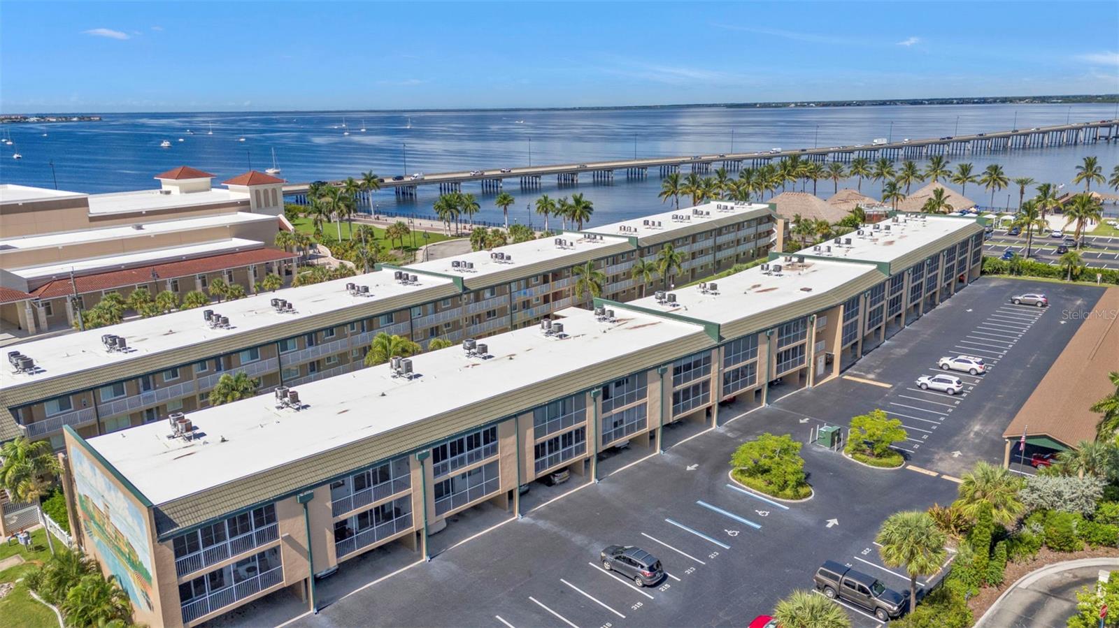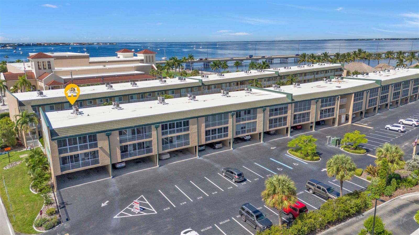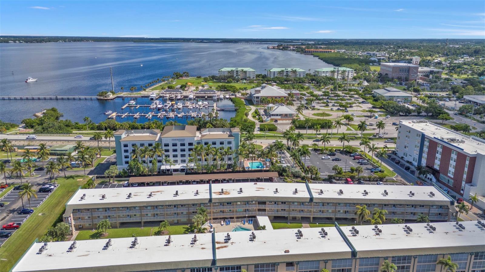 PUNTA GORDA - FURNISHED AND TURN-KEY and NO FLOOD DAMAGE! Prime location and iconic building of the Charlevoi condo in an age restricted (55+) complex in Punta Gorda! This condo is the perfect place to spend your winters or enjoy year-round! The 2-bedroom, 2 bathroom condo has sliding glass doors leading out to your east facing lanai from the living room which is a great spot to enjoy the sunrise while sipping your morning beverage or a cool spot to enjoy the Florida evenings. This condo unit is a second-floor corner unit nestled in the heart of Punta Gorda right on the shores of Charlotte Harbor. This nicely maintained home has a washer and dryer in the unit, newer vinyl flooring throughout except kitchen and baths which are tile, newer ceiling fans and offers a bright and open floor plan. The kitchen features soft close cabinets, pantry closet, breakfast bar and overlooks your living/dining room area making it easy to converse with guests from the kitchen. The master bedroom has two closets one of which is a walk-in and also has a private bathroom with vanity area, walk-in shower and an additional closet. The guest bedroom, also with a private full bath, is roomy and bright with plenty of closet space. The 19x8 lanai area has a tiled floor, storage closet. Charlevoi is a highly desirable community with numerous resort-style amenities, including large heated pool, covered patio area, card and fitness rooms, banquet/meeting room. This is an active 55+ community with many social activities year-round. You can walk to so many downtown establishments and activities such as restaurants, art galleries, farmer's markets, festivals, the tiki bar and the beautiful 2.5 mile Harborwalk path, just to name a few. Please Note: No pets and owners must own unit for 2 years before renting. PER SELLER...HOA FEES WILL BE REDUCED TO UNDER $600 STARTING JANUARY 2025!!!