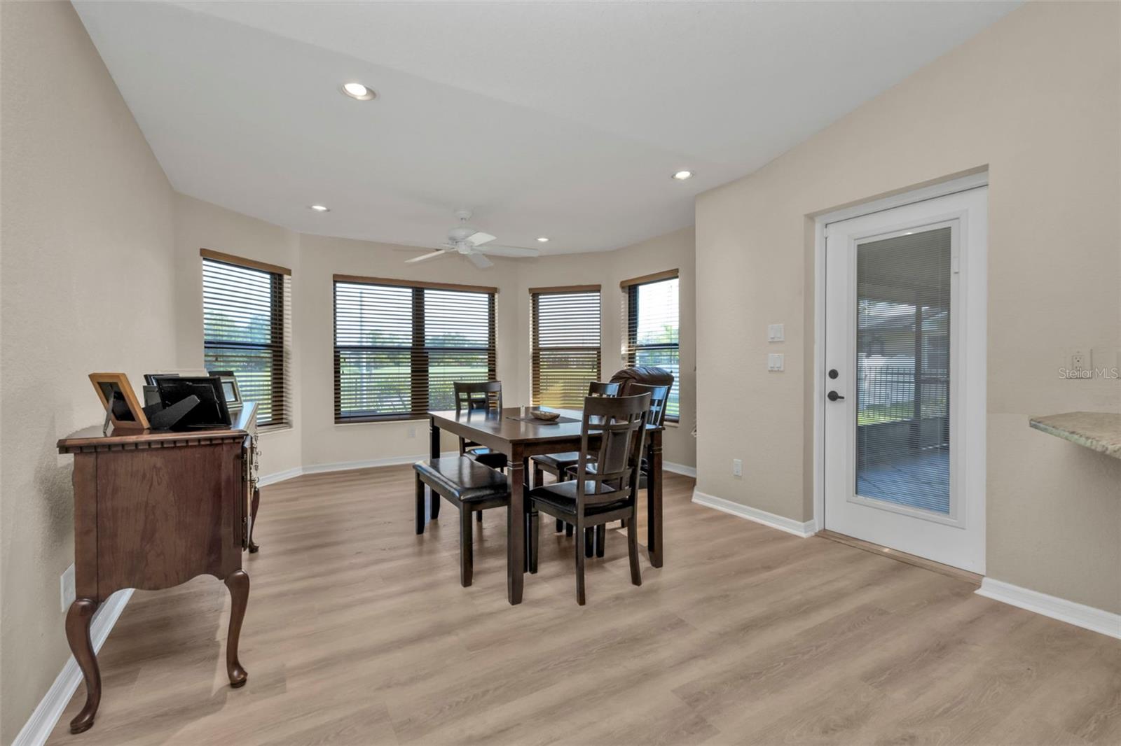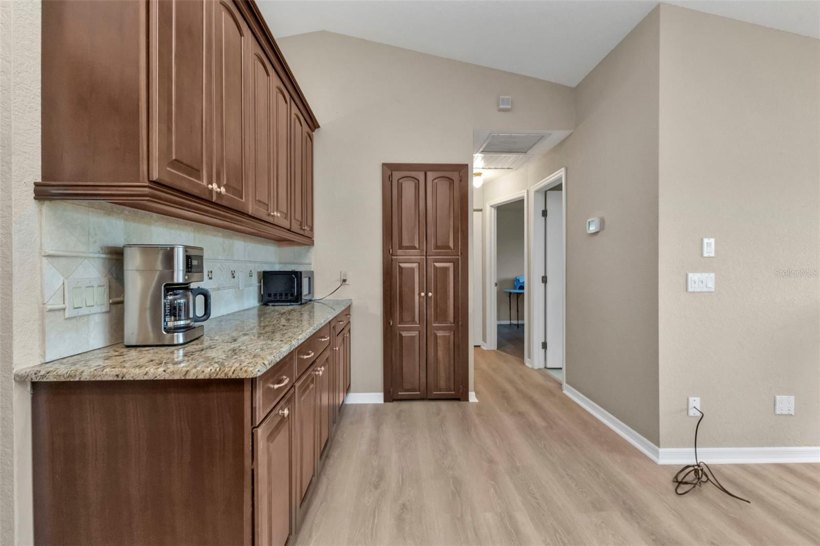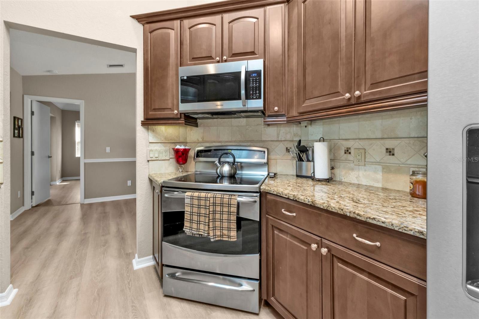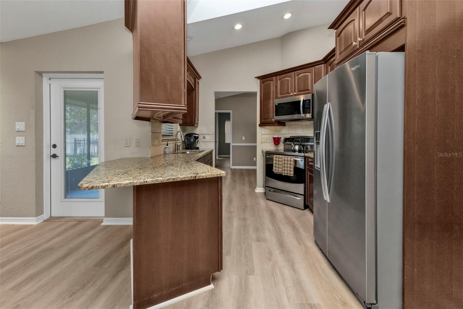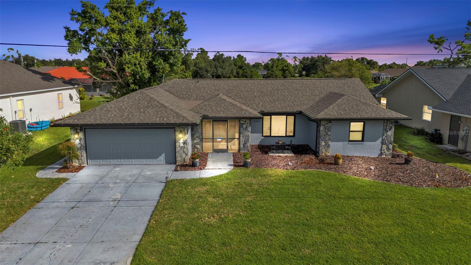 Welcome to your dream Florida oasis—a meticulously upgraded 3-bedroom, 2-bathroom home where modern design meets ultimate comfort and unwavering peace of mind. Situated in a highly desirable non-flood zone, this property has remained untouched by past storms, offering a rare combination of beauty and security. Step into a chef’s paradise, where sleek stainless-steel appliances, a state-of-the-art conduction oven, and stunning granite countertops set the stage for culinary excellence. A thoughtfully placed skylight floods the kitchen with natural light, while a spacious pantry ensures everything has its place. This space is as practical as it is stylish, ready to accommodate everything from intimate meals to lively gatherings. Luxury vinyl plank flooring flows seamlessly throughout the home, combining sophisticated aesthetics with unparalleled durability. Every window has been upgraded to high-impact glass, ensuring year-round energy efficiency and security, while the hurricane-rated garage door adds another layer of storm-season protection. Both bathrooms are impeccably designed, featuring elegant tile floors and convenient linen closets for storage. The primary suite is a true retreat, boasting two oversized walk-in closets and an en-suite bathroom designed to impress. Relax in the soaking tub or refresh in the separate walk-in shower—perfect for unwinding at the end of the day. French doors open to an expansive, covered lanai—a perfect setting for entertaining or quiet relaxation. The convenient pass-through window from the kitchen makes outdoor dining effortless. The backyard is a private sanctuary, fully enclosed with charming iron fencing, offering both security and picturesque views. This home goes beyond aesthetics—it’s crafted for comfort and longevity. A new roof was installed in 2023, while a modern AC system, upgraded in 2021, ensures reliable comfort year-round. Located in a storm-safe area, this property provides a rare sense of security alongside its many luxurious features. From its meticulously designed interiors to its serene outdoor spaces, this home offers the ultimate blend of style, functionality, and peace of mind. Whether you’re entertaining, relaxing, or simply enjoying the Florida lifestyle, every detail has been thoughtfully considered to enhance your experience. Don’t miss the opportunity to make this exceptional home yours—where timeless elegance meets unmatched quality in every corner.