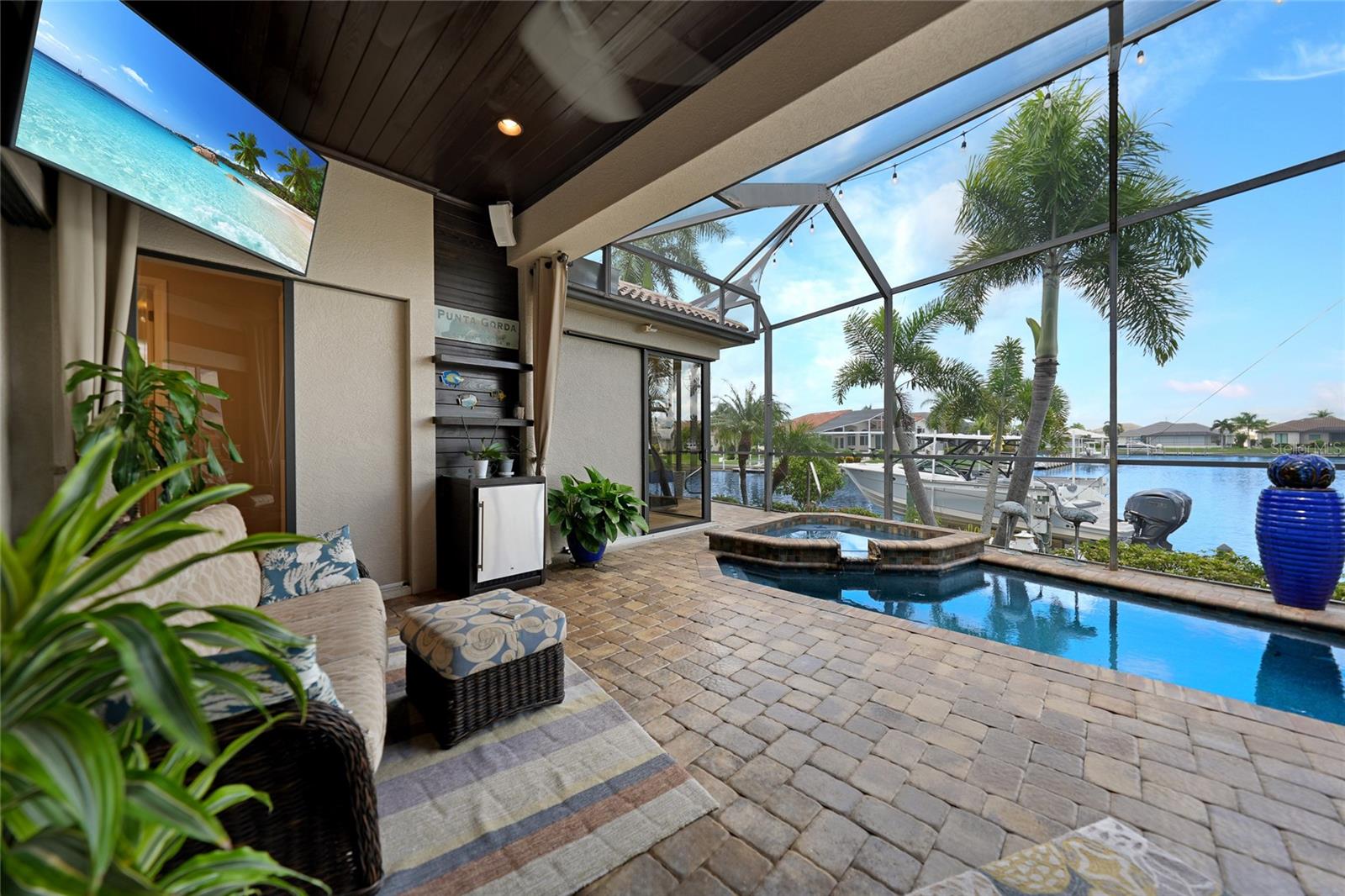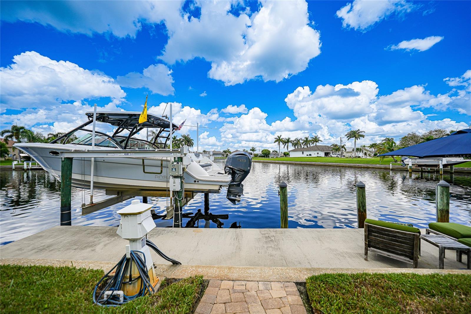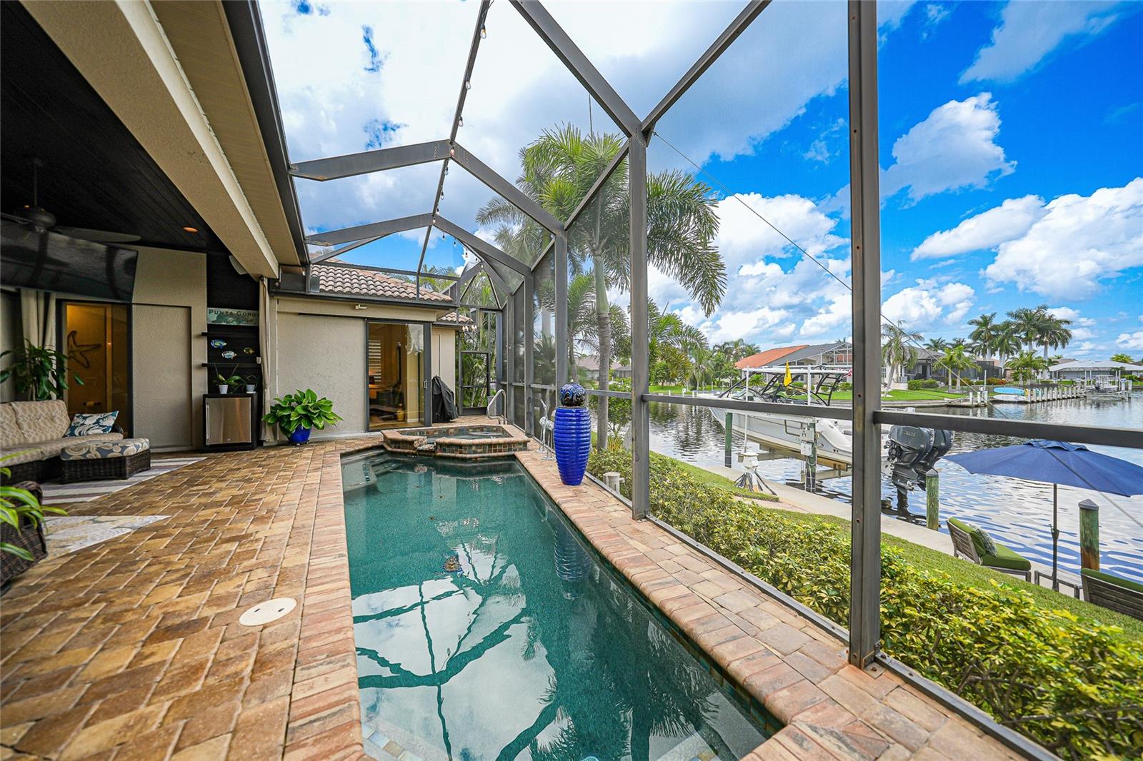 BRAND NEW METAL ROOF BEING INSTALLED IN JANUARY!!! Step into this stunning custom-built home by West Coast Builders and be immediately captivated by the expansive canal view as you enter through the elegant double glass doors. Nestled in the highly desirable, deed-restricted, waterfront community of Burnt Store Isles in Punta Gorda, this meticulously maintained home radiates model-like perfection. Designed with entertaining in mind, the open floor plan seamlessly connects to the newly remodeled kitchen. This gourmet space boasts built-in appliances, a sleek vent hood, glass cooktop, wood cabinetry, and luxurious quartzite countertops. A special pull-out drawer hides convenient electrical outlets for using and storing small appliances, while additional pull-out drawers are thoughtfully designed for cookware, spices, and serving trays. Enjoy serene long canal views from the dinette's seamless aquarium-style windows. The split floor plan ensures privacy, with two generously sized guest bedrooms sharing a hallway bath, which also serves as a pool bath with access from the lanai. One guest bedroom features a stunning 90-degree sliding door leading to the outdoor space. The primary master suite is a true retreat, with backlit tray ceilings, a spacious walk-in closet, dual-entry shower, dual vanities, a jetted garden tub, and private lanai access. The outdoor space is perfect for both relaxation and entertainment, featuring pocketing 10-foot sliders that open to the paved lanai with a heated saltwater pebble tec pool and spa. The canal-front location offers direct, fast access to Charlotte Harbor and the Gulf of Mexico with no bridges. A 93-foot concrete seawall, maintained by the city, and a 45-foot dock is equipped with a 16,000-pound boat lift to complete this boater’s dream home. Additional highlights include carpeted bedrooms and diagonally laid tile in the main living areas. Throughout the home, you’ll find decorative plantation shutters and custom window treatments that add a designer's touch. Full hurricane protection is provided, including Kevlar shutters on the lanai. The two car garage offers ample overhead storage with durable epoxy flooring. Conveniently located near renowned destinations such as Fishermen’s Village, the new Sunseeker Resort, major highways, airports, and just minutes from downtown Punta Gorda, this home offers access to unique restaurants, shopping, biking, pickleball, and waterfront activities. Optional membership at the nearby Twin Isles Country Club allows you to enjoy golfing, tennis, dining, and social events. Don’t miss your chance to own this remarkable home—schedule your appointment today!