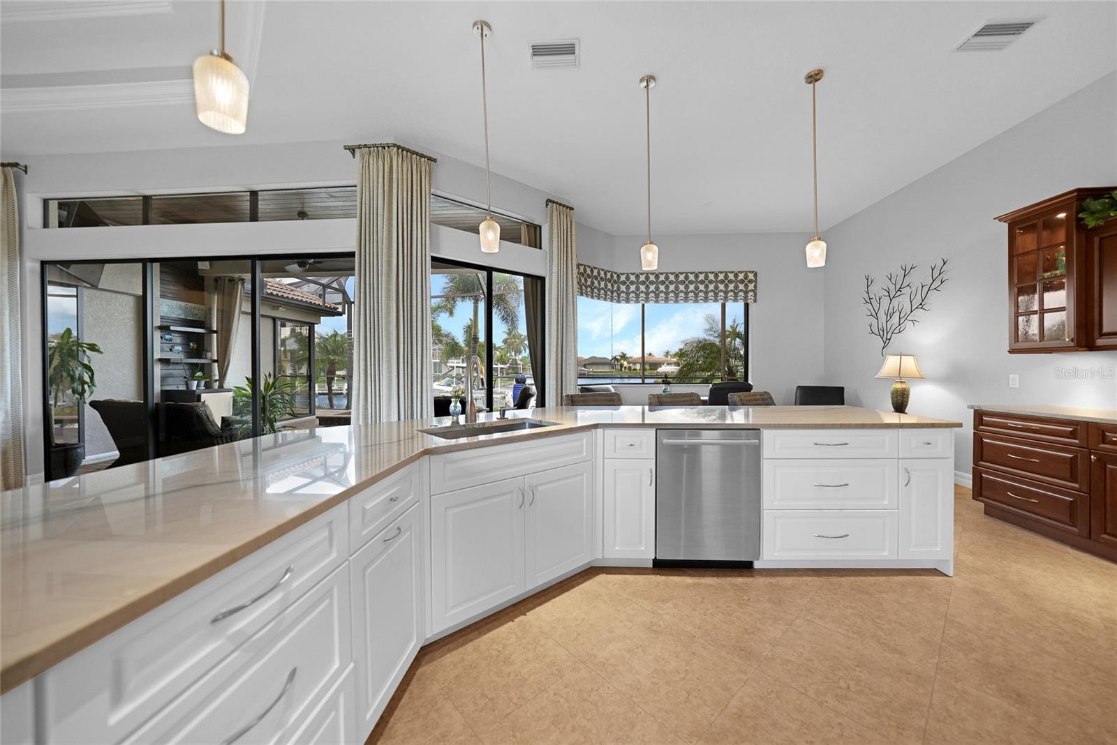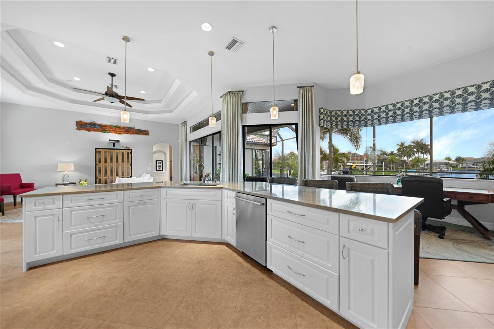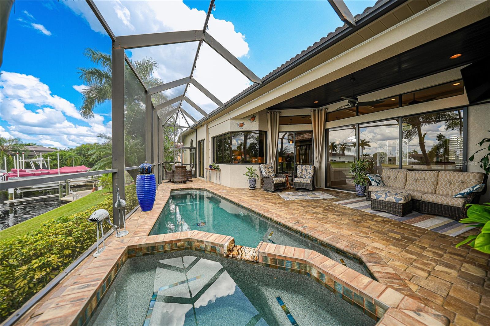 BRAND NEW METAL ROOF BEING INSTALLED IN JANUARY!!! Step into this stunning custom-built home by West Coast Builders and be immediately captivated by the expansive canal view as you enter through the elegant double glass doors. Nestled in the highly desirable, deed-restricted, waterfront community of Burnt Store Isles in Punta Gorda, this meticulously maintained home radiates model-like perfection. Designed with entertaining in mind, the open floor plan seamlessly connects to the newly remodeled kitchen. This gourmet space boasts built-in appliances, a sleek vent hood, glass cooktop, wood cabinetry, and luxurious quartzite countertops. A special pull-out drawer hides convenient electrical outlets for using and storing small appliances, while additional pull-out drawers are thoughtfully designed for cookware, spices, and serving trays. Enjoy serene long canal views from the dinette's seamless aquarium-style windows. The split floor plan ensures privacy, with two generously sized guest bedrooms sharing a hallway bath, which also serves as a pool bath with access from the lanai. One guest bedroom features a stunning 90-degree sliding door leading to the outdoor space. The primary master suite is a true retreat, with backlit tray ceilings, a spacious walk-in closet, dual-entry shower, dual vanities, a jetted garden tub, and private lanai access. The outdoor space is perfect for both relaxation and entertainment, featuring pocketing 10-foot sliders that open to the paved lanai with a heated saltwater pebble tec pool and spa. The canal-front location offers direct, fast access to Charlotte Harbor and the Gulf of Mexico with no bridges. A 93-foot concrete seawall, maintained by the city, and a 45-foot dock is equipped with a 16,000-pound boat lift to complete this boater’s dream home. Additional highlights include carpeted bedrooms and diagonally laid tile in the main living areas. Throughout the home, you’ll find decorative plantation shutters and custom window treatments that add a designer's touch. Full hurricane protection is provided, including Kevlar shutters on the lanai. The two car garage offers ample overhead storage with durable epoxy flooring. Conveniently located near renowned destinations such as Fishermen’s Village, the new Sunseeker Resort, major highways, airports, and just minutes from downtown Punta Gorda, this home offers access to unique restaurants, shopping, biking, pickleball, and waterfront activities. Optional membership at the nearby Twin Isles Country Club allows you to enjoy golfing, tennis, dining, and social events. Don’t miss your chance to own this remarkable home—schedule your appointment today!