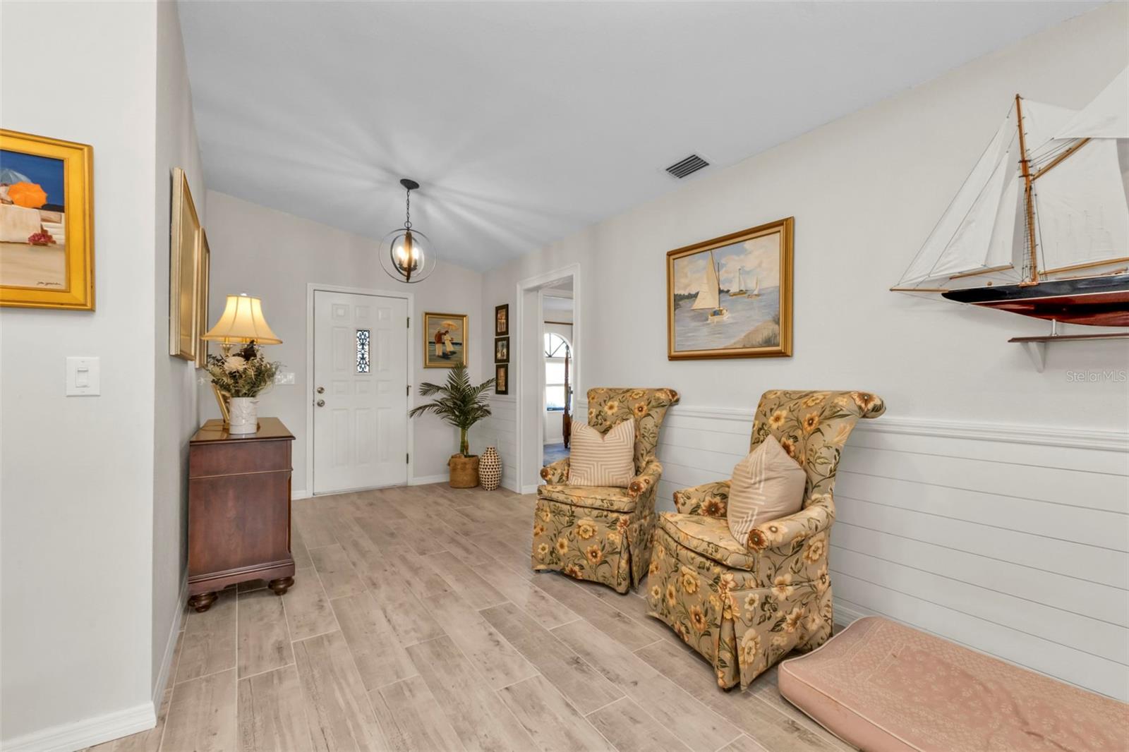 At a time when new houses have entered the market at a rapid rate, it is time to recognize the detail and quality of a home that is better than new. This home has all the attributes of a new home with many more upgrades than what most builders provide. It has been professionally renovated by a builder who has built many homes on golf courses and in gated communities. The deed restricted community of Deep Creek is a sought after part of Punta Gorda. Well landscaped and inviting. This house has 3 bedrooms and two full baths which feature white shaker vanities with marble tops and beautiful porcelain tiles to compliment them. The kitchen has white shaker cabinets, granite countertops and stainless steel appliances. The house features an open floor plan with sliders from the living area and the master bedroom out to the large lanai. It is a tranquil setting with professional landscaping and rolling green space in back. A two car garage finishes it off with a wall of shelving for storage. New roof 4 years ago. Not in a flood zone. No hurricane damage.