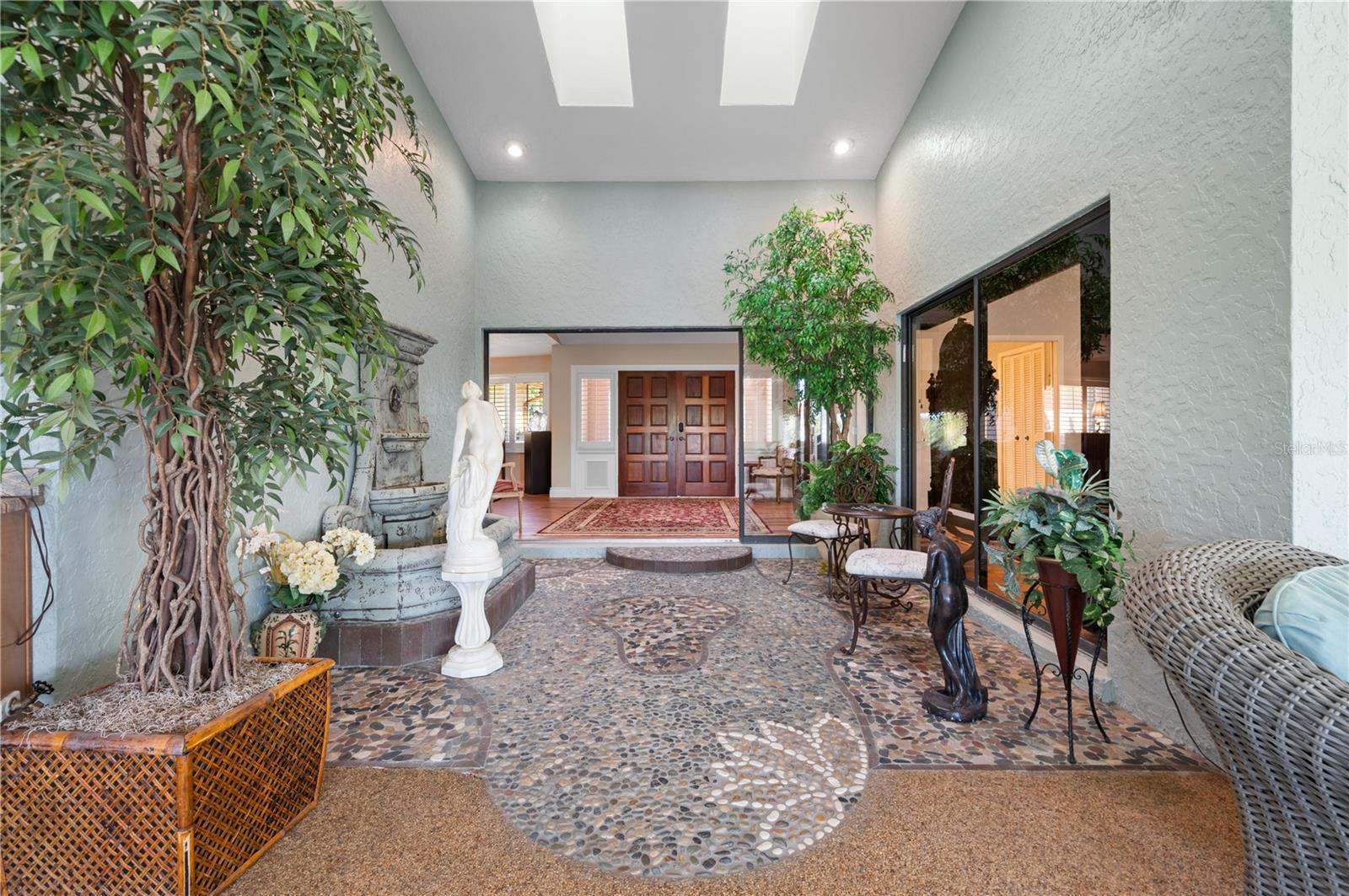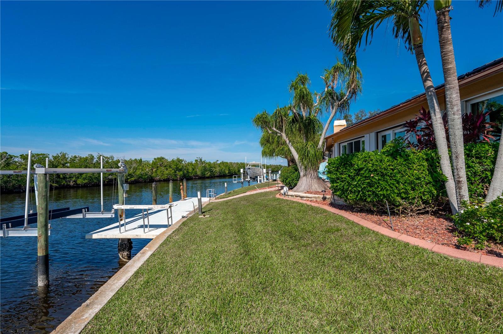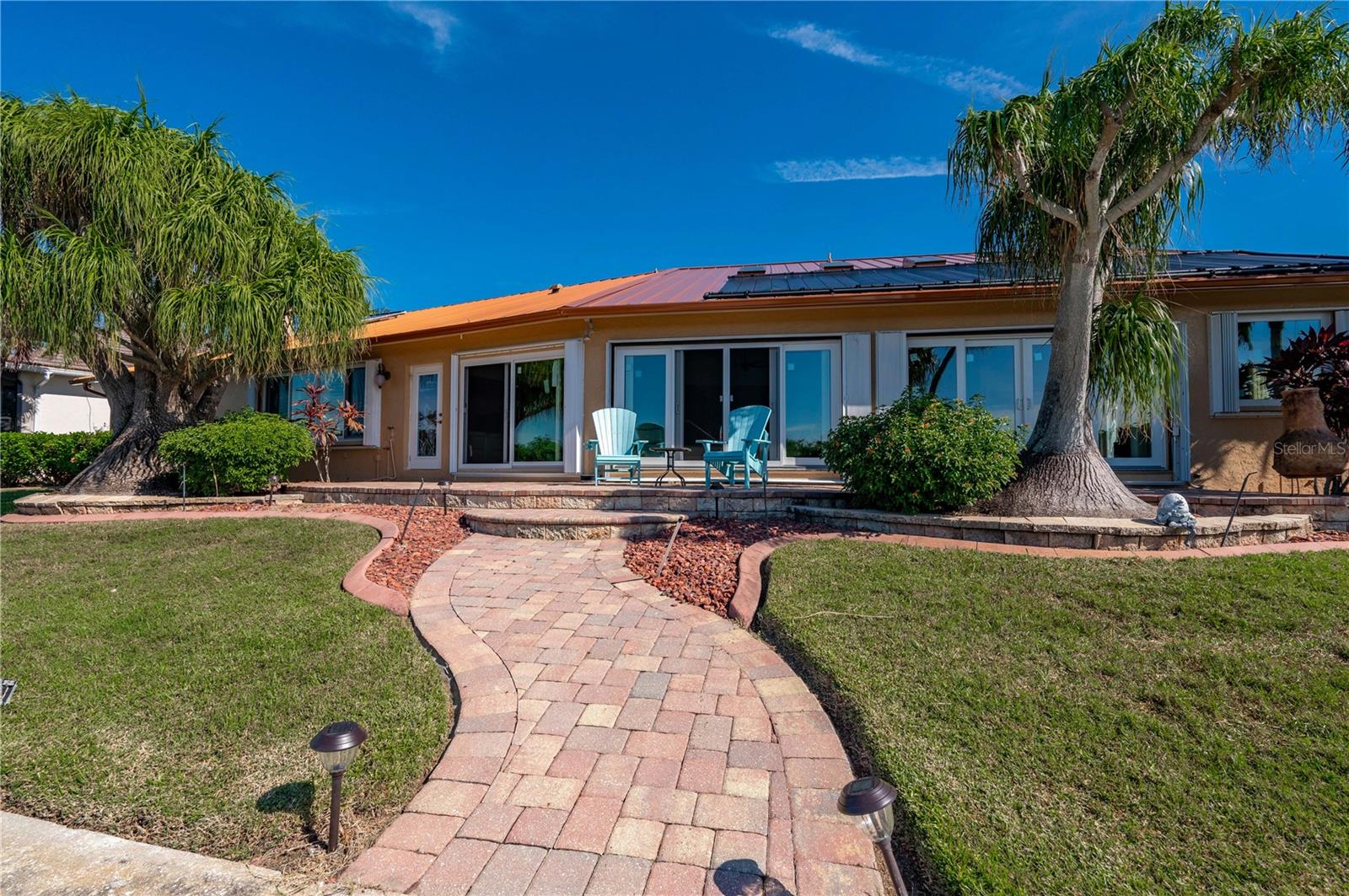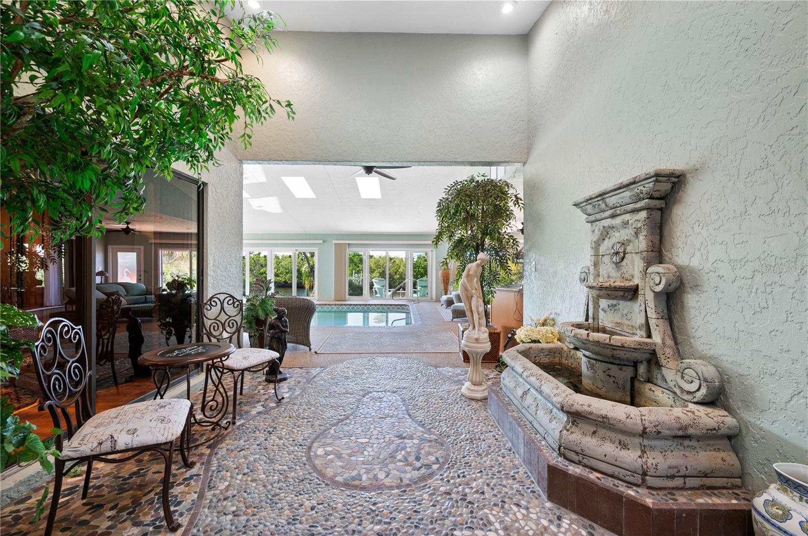 CUSTOM, 4,300 SQ FT, COURTYARD POOL HOME WITH NEW ROOF (2023) AND RESURFACED POOL (2024) IN PUNTA GORDA ISLES ON PERIMETER CANAL W/QUICK SAIL ACCESS & 120 FT OF SEAWALL - JUST MINUTES TO PONCE OUTLET. Western rear exposure guarantees colorful sunsets over the canal view. This spectacular home has been beautifully updated w/all new flooring throughout plus a modern kitchen & gorgeous baths. Four sets of sliding glass doors separate the interior living space of the home from the indoor pool area. With the interior sliders open, the 1,200 sq ft, climate-controlled atrium & pool room become part of the total living space. Enjoy your pool year-round, pest & humidity-free - RAIN OR SHINE. River rock decking surrounds the in-ground, solar-heated, saltwater pool. Four skylights plus four sets of sliding glass doors allow tons of natural light to flood the space creating a private, indoor oasis. A built-in bar w/granite counter & pass-through window to the kitchen and a full bath complete the pool area. Gleaming, wood-look, luxury vinyl flooring is found throughout the home w/the exception of tile flooring in the bathrooms. A formal foyer & formal dining room greet you as you enter the home. Foyer continues through the atrium into the pool area. The kitchen is a chef's delight w/all new stainless-steel appliances, granite counters, large center island w/induction range, built-in wine refrigerator & breakfast bar. Kitchen also boasts built-in pantry, under cabinet lighting & mosaic tile back splash. Large family room w/fireplace and picture windows is adjacent to the kitchen. The home was designed for entertaining. The family room includes a built-in coffee bar & breakfast area. Other architectural details include soaring cathedral ceilings, plantation shutters plus modern fans & light fixtures. The split bedroom floor plan offers a spacious, master retreat w/two sets of sliding glass doors leading to atrium & pool room plus an en-suite master bath. Entrance to the master bath has a seated vanity w/granite counter across from the oversized walk-in closet. Spa-like master bath features granite counters, two vessel sinks, a gorgeous soaking tub & tiled shower w/luxury, stainless-steel panel system w/waterfall shower head & multiple jets. Split bedroom design boasts large guest bedrooms that share a beautifully updated full bath. The pool area opens to a brick paver patio w/insect misting system that takes full advantage of the PERIMETER CANAL & ANGROVE/NATURE PRESERVE view. It's the perfect spot to take in the gorgeous sunset views. Brick paver path culminates at the 10' wide, extended concrete dock. Dock features a 10,000 lb boat lift & fish cleaning table.Water & electric hook-ups are available dockside. Other amenities include Kinetico water softener, hurricane protection, brick paver drive & attached 2-car garage. Everything has been updated so you don't have to do it: NEW Anderson windows & exterior pool sliders (2023), NEW skylights (2023), NEW standing-seam metal roof (2023), replumbed w/overhead piping & manifold system (2023), NEW solar-power hot water heater & panels (2023), NEW security cameras at garage w/motion-activated flood lights & doorbell camera (2023), TWO NEW A/C systems - 3- ton for dining room/master bedroom (2022), 2-ton system for pool area (2021), NEW solar panels for pool heat (2023), NEW pool pump (2023), NEW saltwater chlorinator (2019), NEW Pool Re-surface (2024) & NEW impact-resistant pool doors w/etched glass (2021).