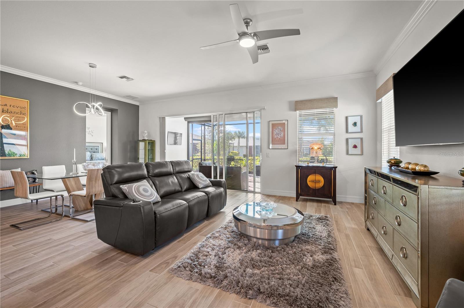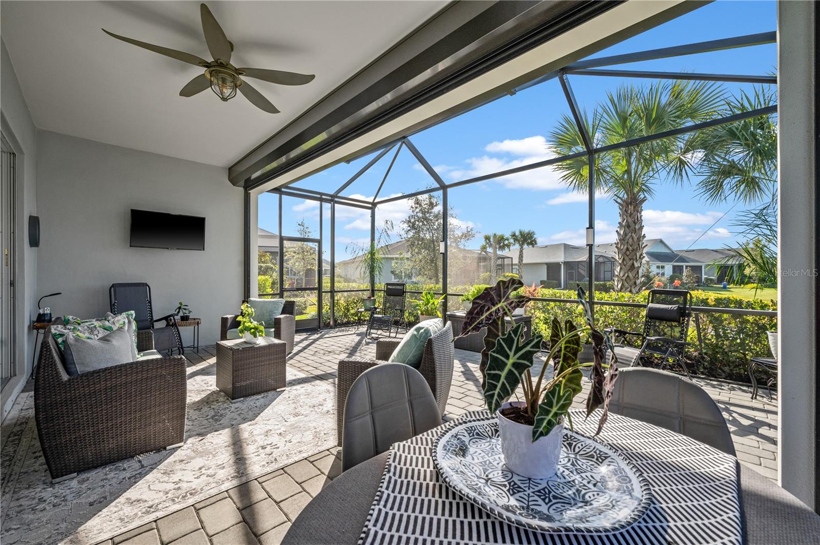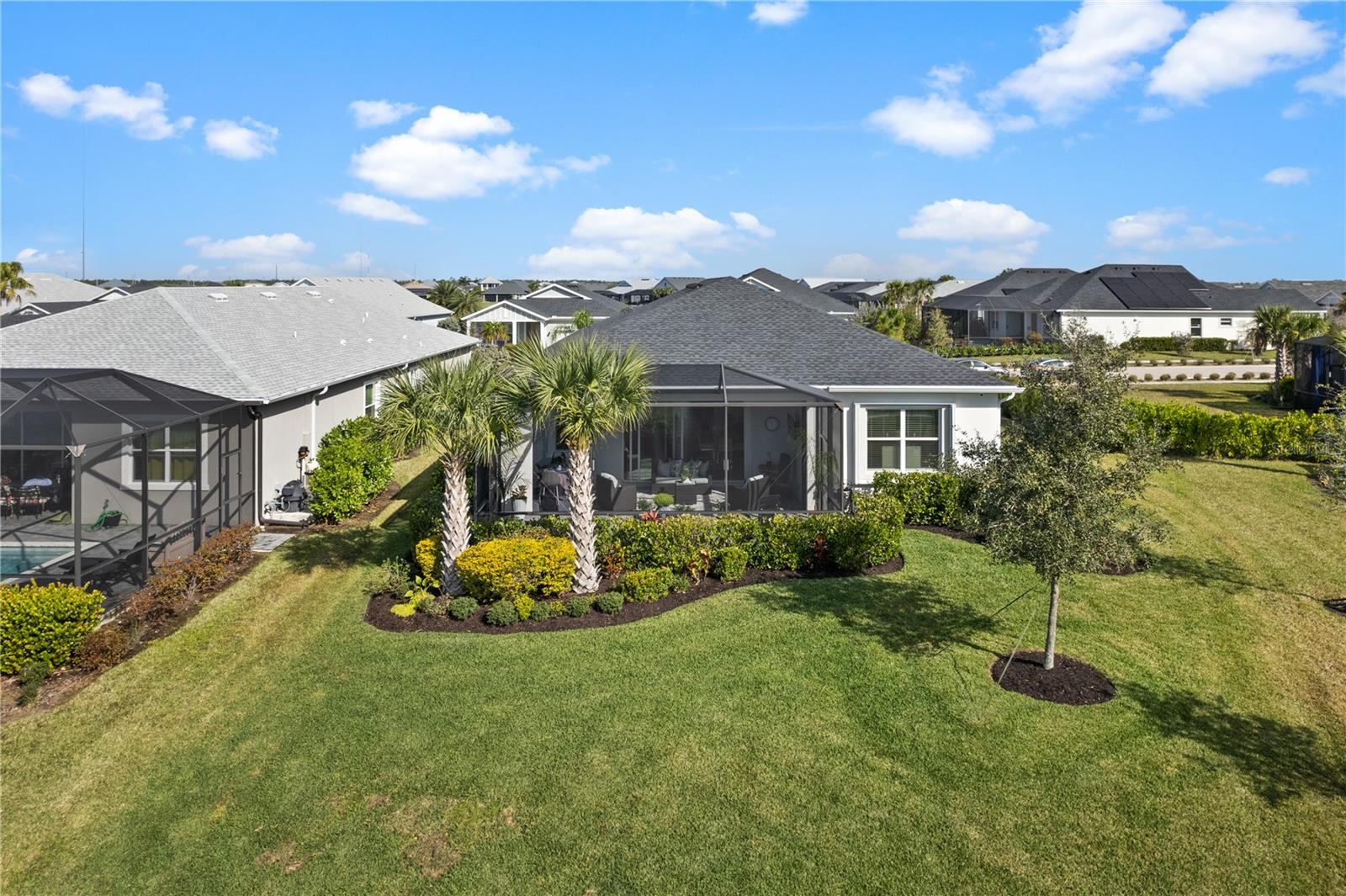 Welcome to this stunning single-family home nestled in the highly sought-after Lake Timber neighborhood of Babcock Ranch. Boasting three bedrooms, three bathrooms, and a den, this meticulously maintained residence offers 2,220 sq ft of living space. Impeccably designed for modern living, this home is equipped with numerous features to enhance comfort and convenience. A whole-house surge protector ensures peace of mind, while the EV port in the garage caters to eco-conscious homeowners. The property is fortified against storms with hurricane protection/impact glass on all windows. Step outside to the lanai, where hurricane metal screens and privacy roll-up screens create a serene outdoor oasis. Inside, custom solid black wood shelving adorns every closet, including extra shoe shelves in the master bedroom. The kitchen is a chef's dream, featuring alkaline water filters connected to the sink and refrigerator, as well as a touchless kitchen faucet for added convenience. Located in the heart of Babcock Ranch, this home offers easy access to Founder's Square, Crescent B Commons shopping center, and the neighborhood school. Enjoy a better life in Babcock Ranch!