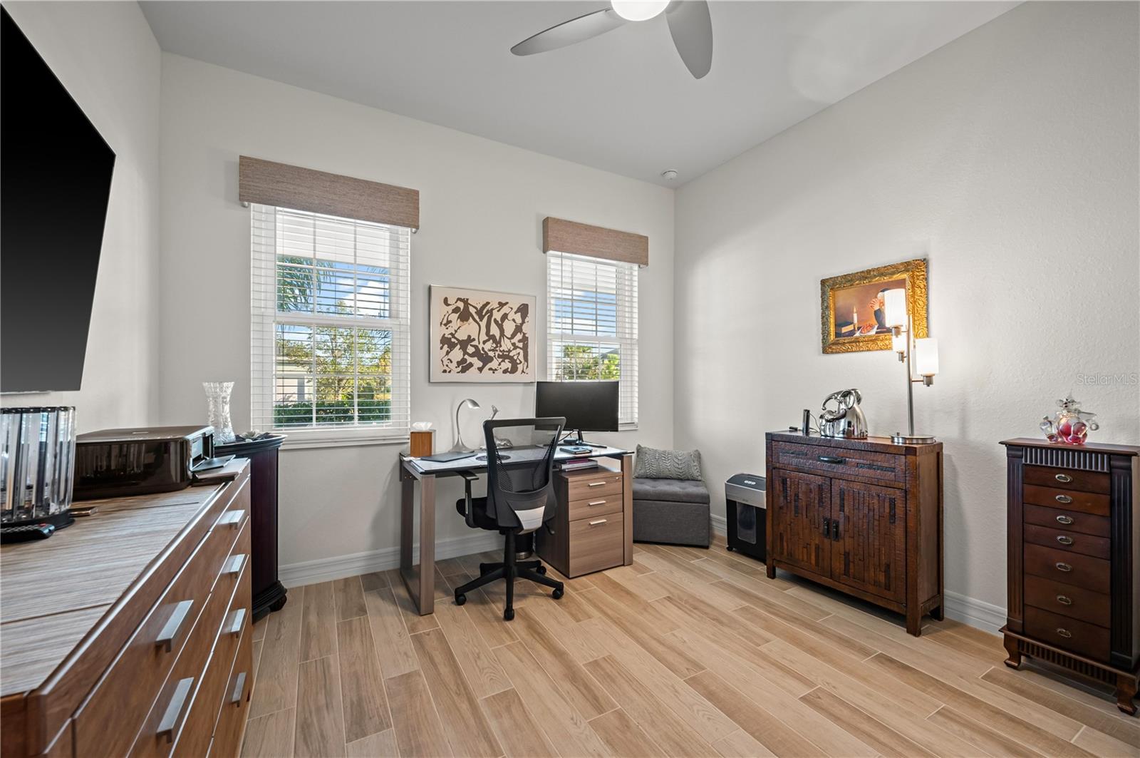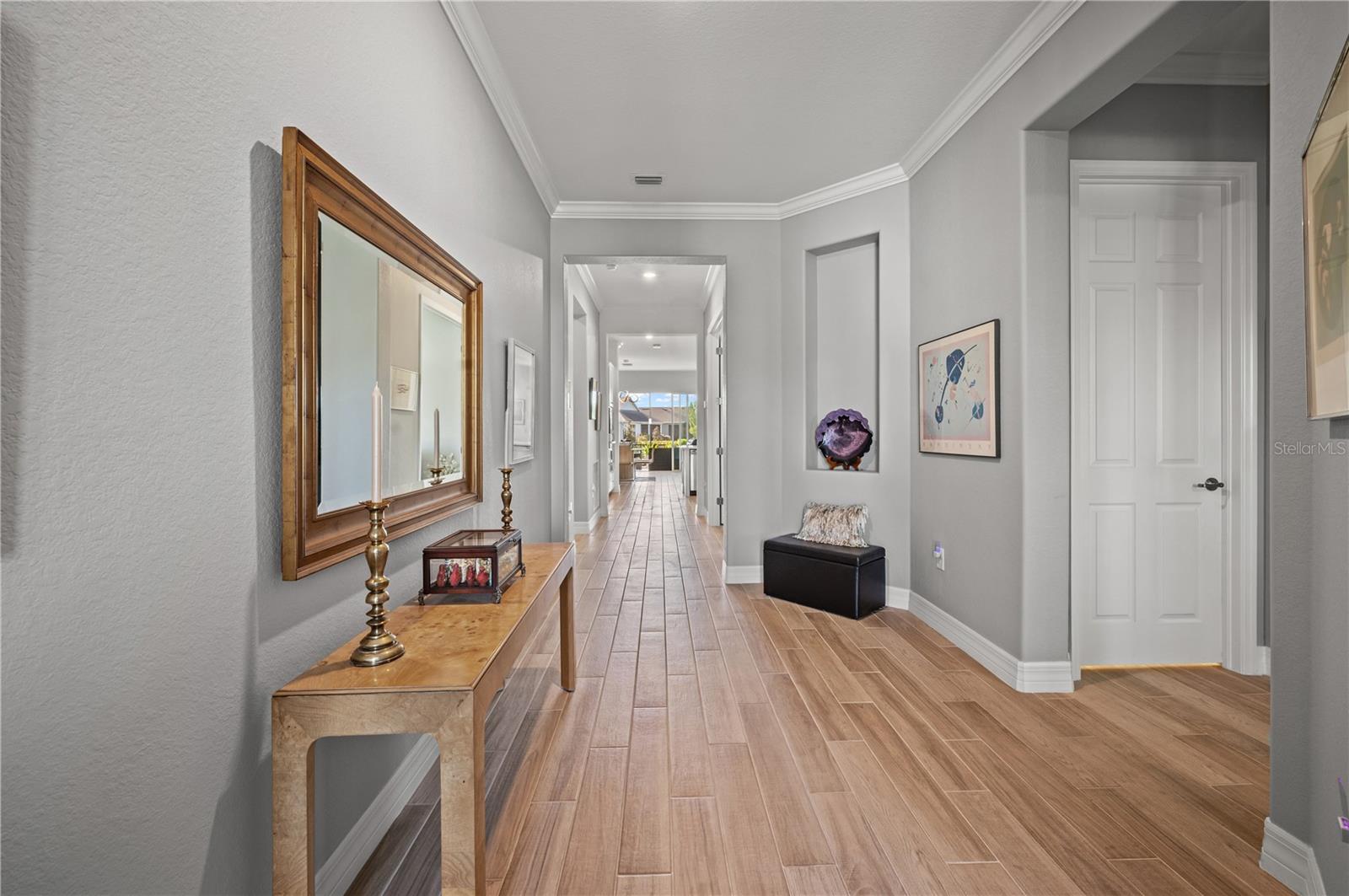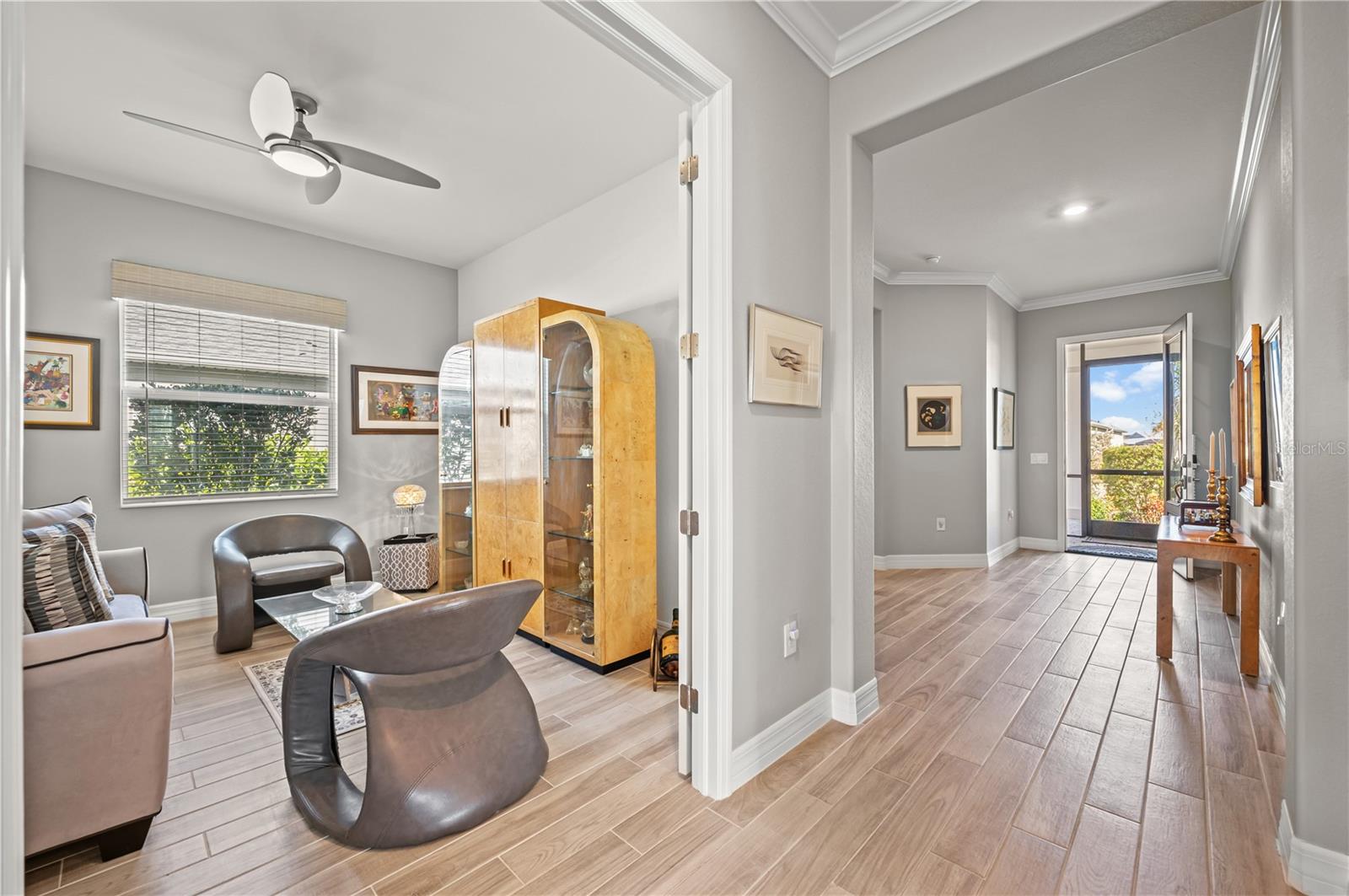 Welcome to this stunning single-family home nestled in the highly sought-after Lake Timber neighborhood of Babcock Ranch. Boasting three bedrooms, three bathrooms, and a den, this meticulously maintained residence offers 2,220 sq ft of living space. Impeccably designed for modern living, this home is equipped with numerous features to enhance comfort and convenience. A whole-house surge protector ensures peace of mind, while the EV port in the garage caters to eco-conscious homeowners. The property is fortified against storms with hurricane protection/impact glass on all windows. Step outside to the lanai, where hurricane metal screens and privacy roll-up screens create a serene outdoor oasis. Inside, custom solid black wood shelving adorns every closet, including extra shoe shelves in the master bedroom. The kitchen is a chef's dream, featuring alkaline water filters connected to the sink and refrigerator, as well as a touchless kitchen faucet for added convenience. Located in the heart of Babcock Ranch, this home offers easy access to Founder's Square, Crescent B Commons shopping center, and the neighborhood school. Enjoy a better life in Babcock Ranch!