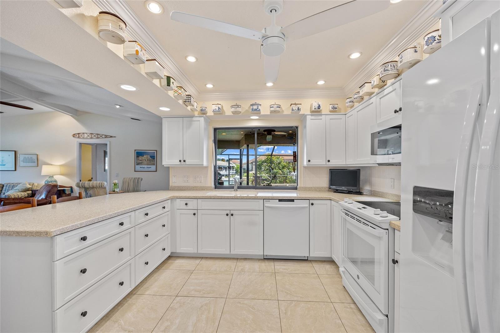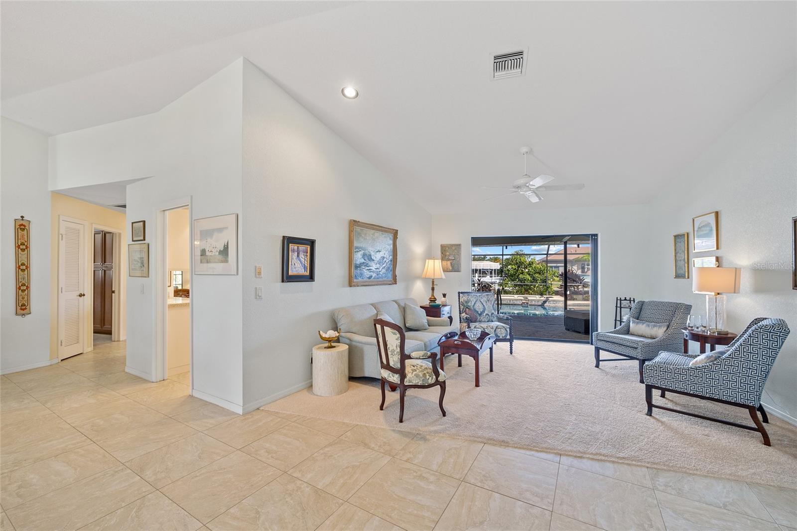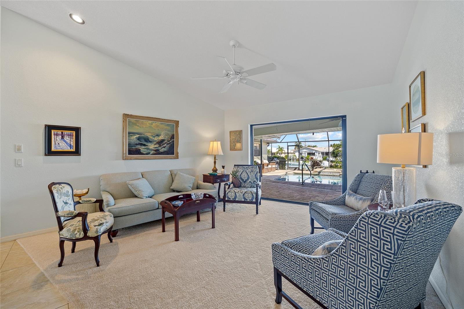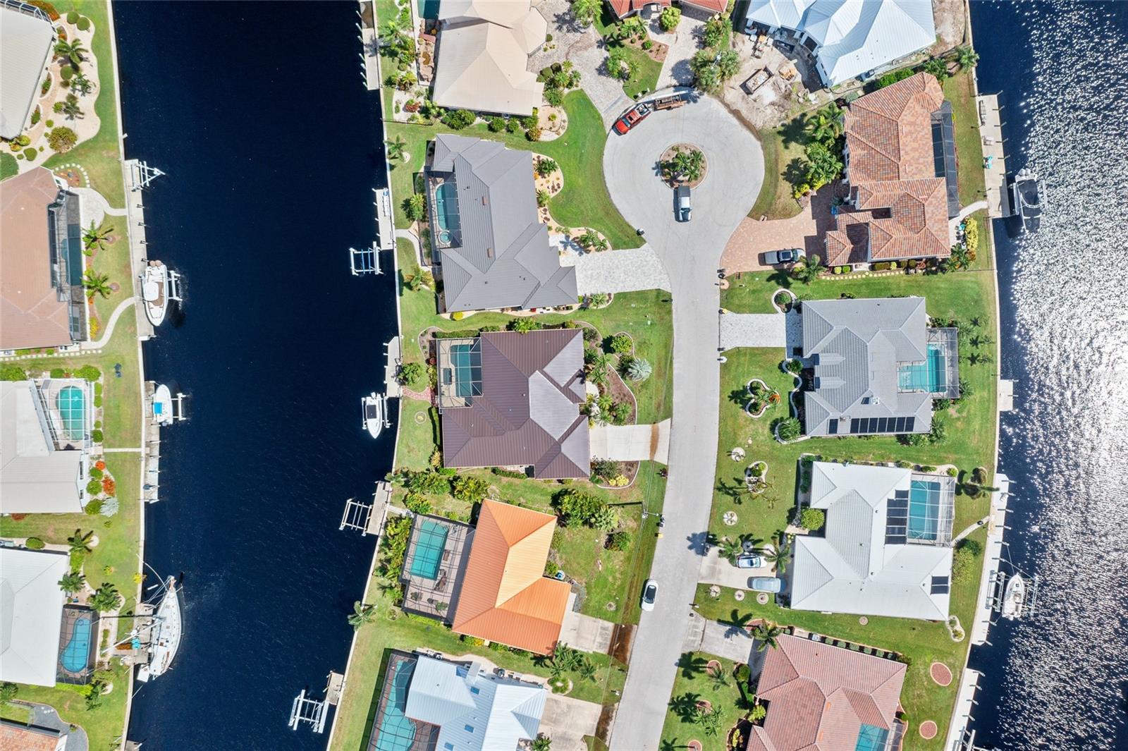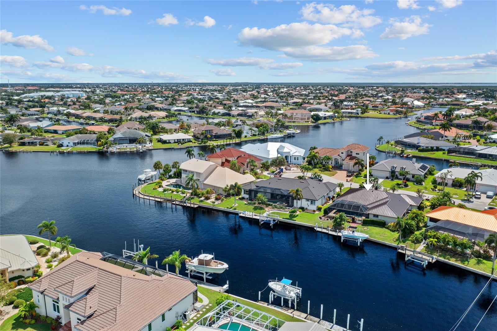 PRIME WATERFRONT LOCATION! EXCEPTIONAL 3 BEDROOM, 2 BATH, 2-CAR GARAGE POOL HOME WITH MERE MINUTE DEEP WATER SAILBOAT ACCESS TO CHARLOTTE HARBOR LEADING TO THE GULF OF MEXICO! A boater's dream, the property features about 70 feet of waterfrontage, a concrete dock equipped with water and electric, and a 10,000 lb. boat lift plus beautiful intersecting canal views. New premium metal roof, new A/C and new hot water heater. Inside, you'll find a bright and open layout with high ceilings and tasteful neutral decor, accented with plantation shutters. The formal living and dining areas seamlessly connect to the outdoor space through pocket sliders, leading you to a fabulous lanai. This expansive outdoor oasis includes a 14’ X 28’ screened heated pool and spa, perfect for relaxation and entertaining. The kitchen is well-appointed with light cabinetry, tiled backsplash, convenient pass-thru window, and breakfast bar. Enjoy meals in the casual dining area overlooking a sunlit family room with a charming bay window. The primary suite is true retreat, featuring tray ceiling, slider to the lanai, and private bath with dual vanities, walk-in closet and walk-in shower. The split floor plan offers privacy for guests, with two additional bedrooms featuring walk-in closets and a separate full bath with pool access. Other highlights include a screened-in front porch, laundry room with a desk, cabinets, and closet, hurricane protection, irrigation system, and lush tropical landscaping. Located in a vibrant golf and boating community, this home is just minutes from the Yacht Club, Fishermen's Village, and the historic downtown area of Punta Gorda. Enjoy arts, community events, entertainment, world-class fishing, boating, fine dining, as well as easy access to the SWFL gulf beaches. Great area for riding bikes and walking with Ponce De Leon Park only 1.5 miles away. Don't miss the opportunity to own this piece of paradise. Schedule your private showing today!