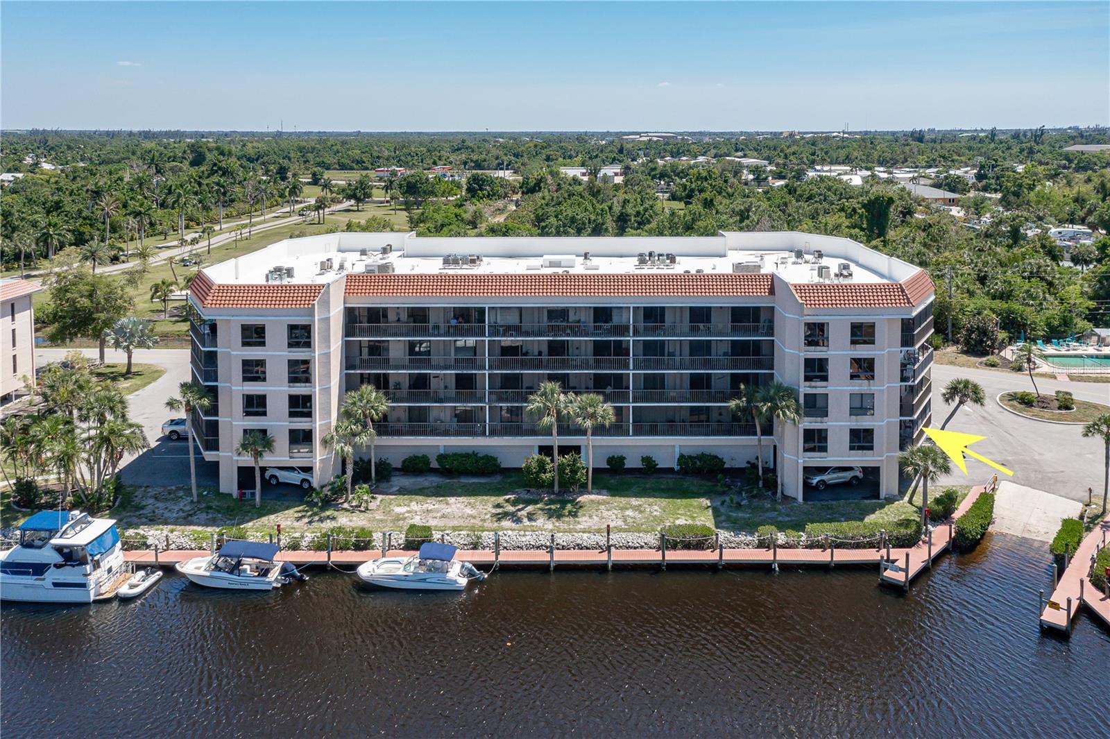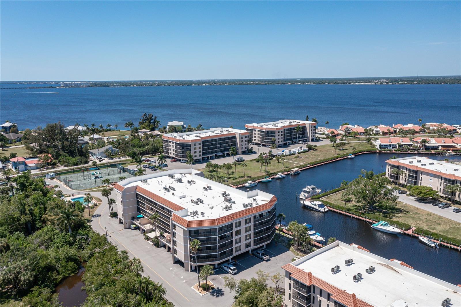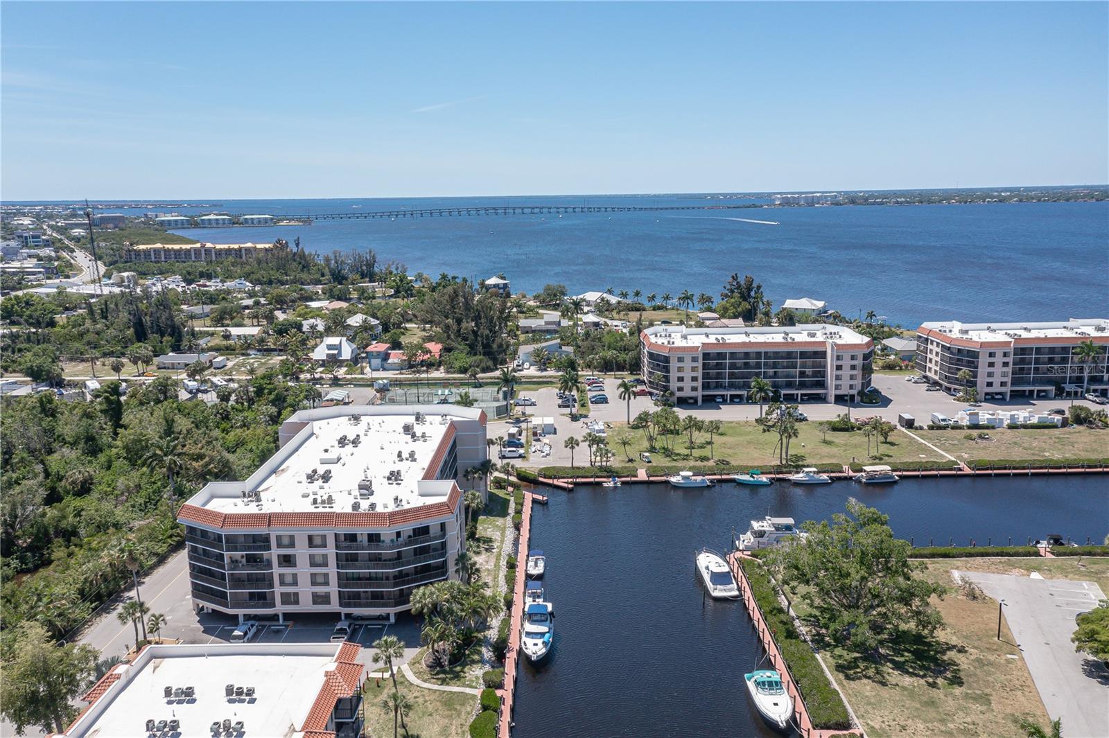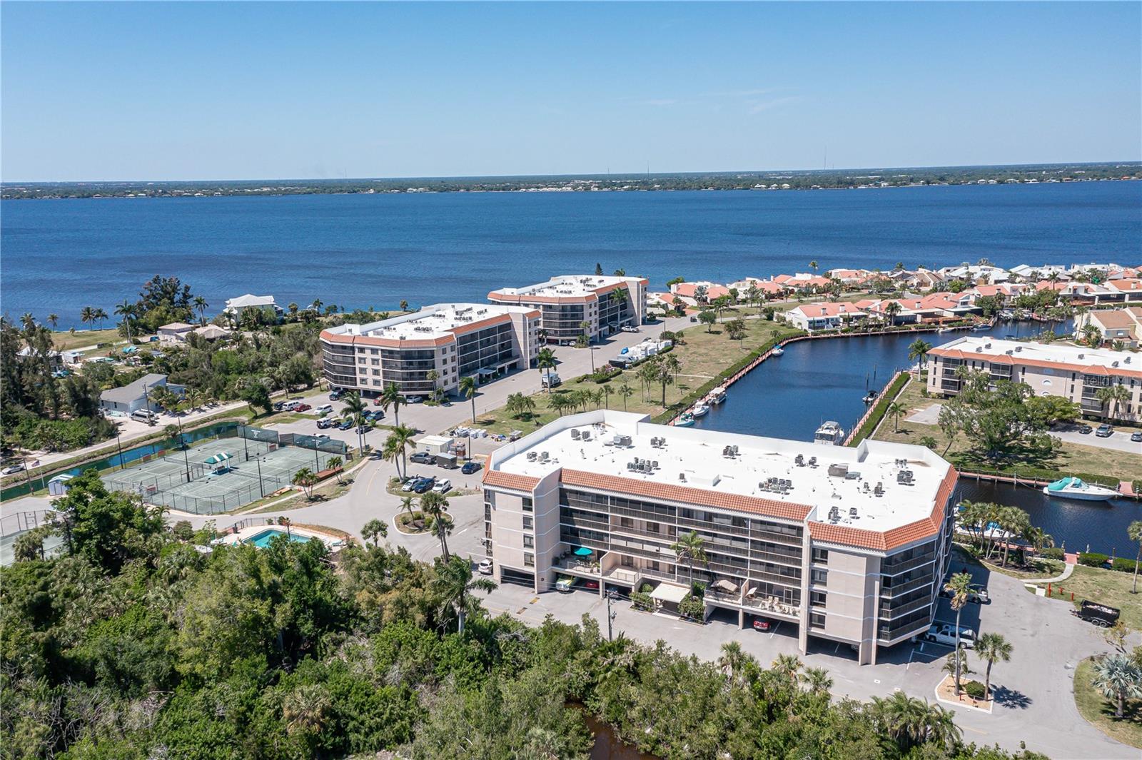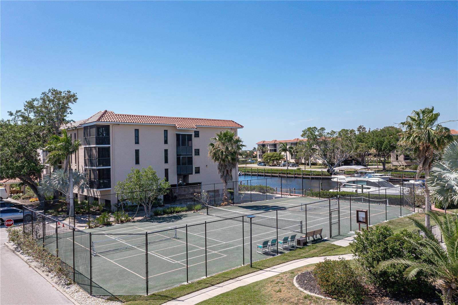 END-UNIT CONDO W/FABULOUS CANAL VIEW AT EMERALD POINTE! Looking for a place that feels like an all-inclusive resort? Look no further...this 3 bed/2 bath, corner unit w/over 2,100 sq ft of living space at the gated community of Emerald Pointe HAS IT ALL! Spectacular water front view, Charlotte Harbor and Gulf boating access, spacious open floor plan w/living room & formal dining room w/a wall of storage, tons of additional storage, large bedrooms, wet bar & chef's kitchen. Resort-like amenities include full-time tennis pro w/4 Har-Tru clay tennis courts, pickleball courts, as well as Bocce ball, putting green, three swimming pools, a clubhouse & a fitness center. There's also the marina w/dock space available. Bring your boat and keep it just steps away. Dock space INCLUDED with HOA dues! Reach open water in mere minutes & enjoy some of the best fishing & boating in SW Florida. At time of listing, dock space is available. Community also has an active social calendar w/book clubs, bridge group, poker night, a crafting group and so much more that makes everyday feel like you're on vacation! This corner unit is flooded w/natural light thanks to large picture windows & multiple sliding glass doors. Living room has a wet bar & fireplace plus amazing canal view. Kitchen offers a breakfast bar, pantry plus ample cabinet & counter space. The adjacent breakfast area features front row seat to the lovely canal view. Large master suite offers an oversized, walk-in closet & private master bath plus walk-out access to the screened lanai. Unit comes w/an assigned, under-building parking space, private storage closet next to unit, & two storage lockers near parking spot. UPDATES include new range (2020), new wine cooler (2017), new mini-refrigerator (2022), new dishwasher (2022) & new AC (2020). Reasonable condo fees include all that you'd expect plus basic cable, internet, water & trash. There is a credit to monthly fees for 2025 of $169 per month due to over-payment for previous special assessments regarding Hurricane Ian, resulting in monthly fees of about $600 / month. There are currently no special assessments outstanding for the building. Management office on site. Make appointment today.