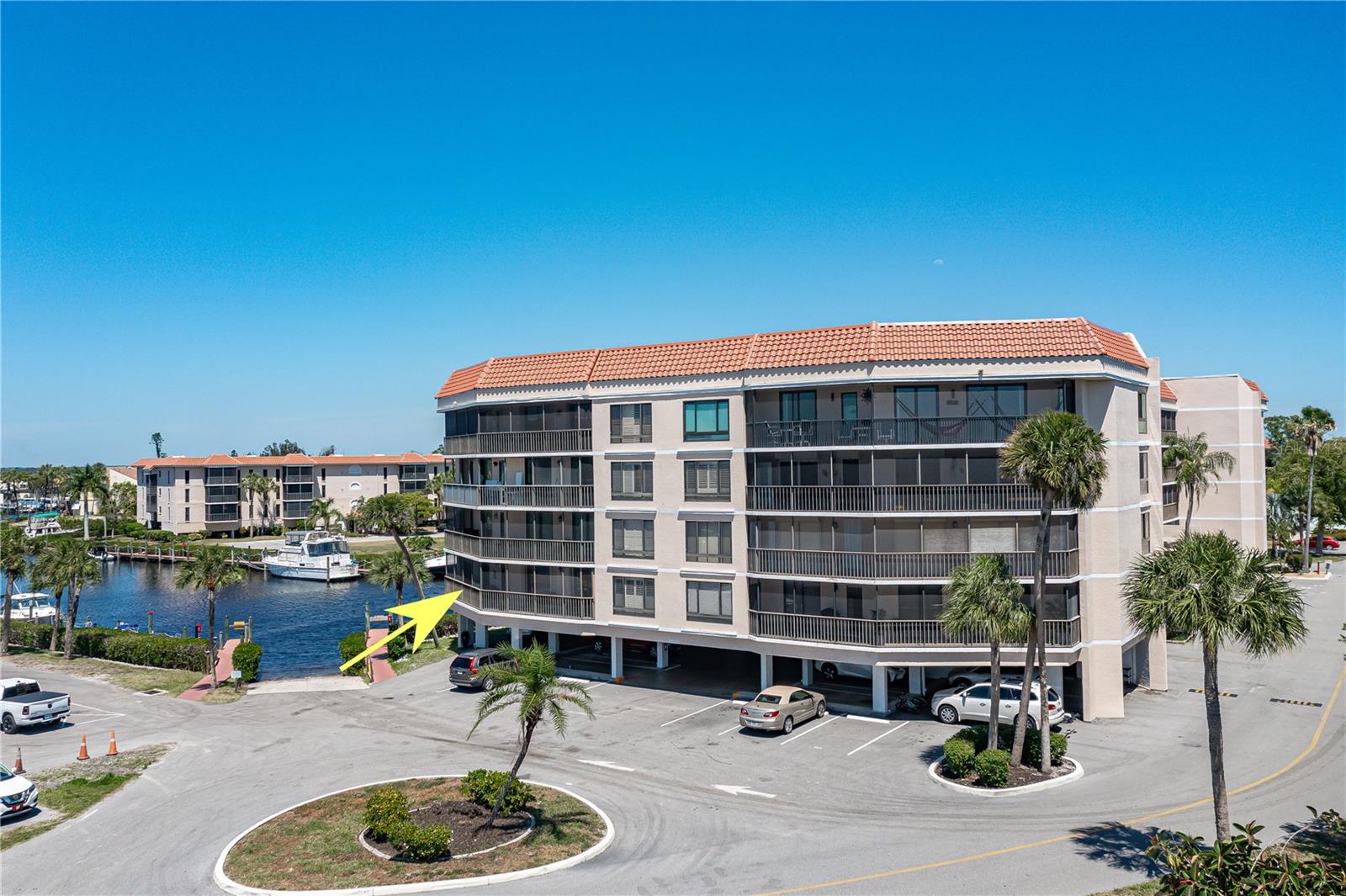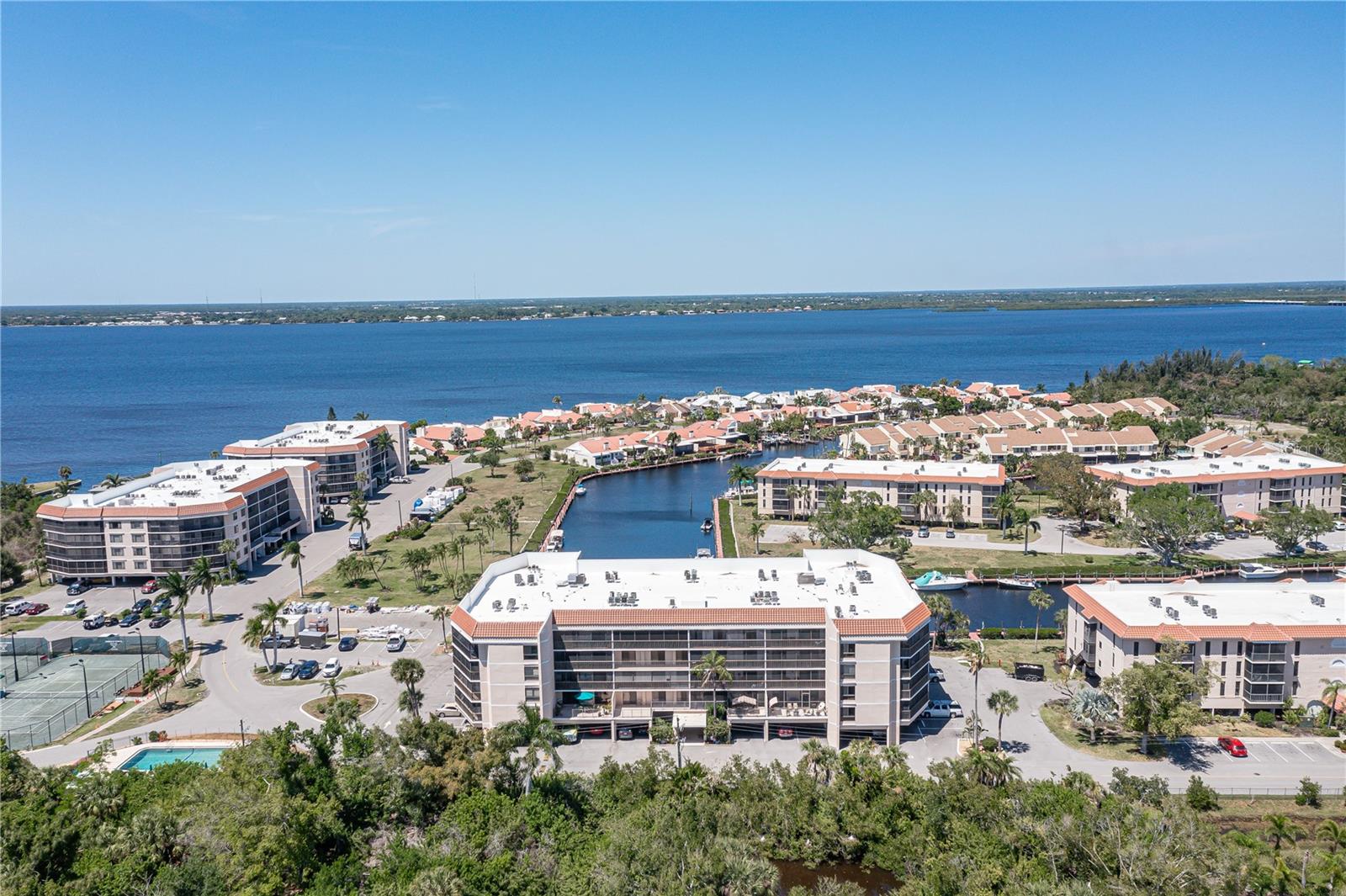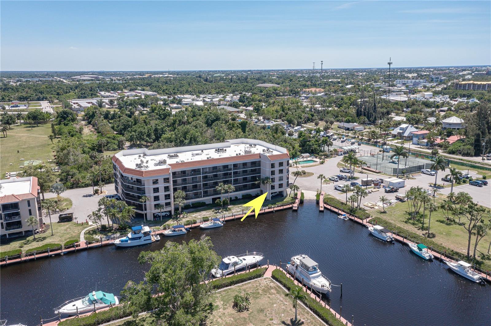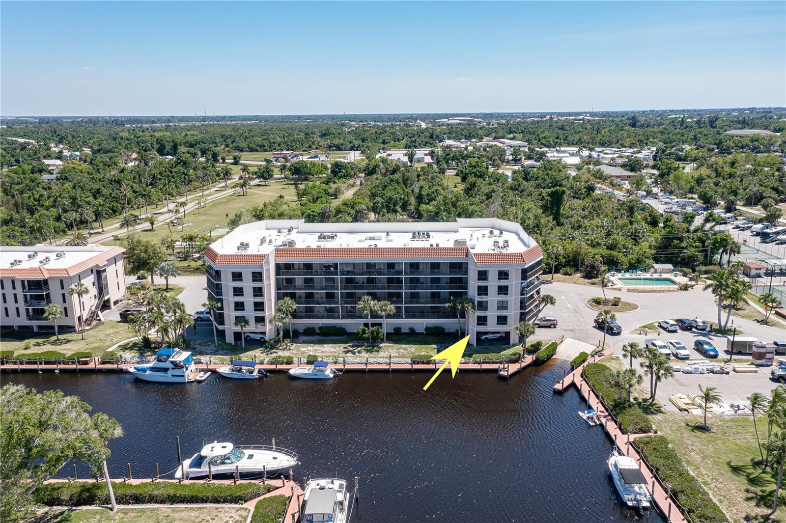 END-UNIT CONDO W/FABULOUS CANAL VIEW AT EMERALD POINTE! Looking for a place that feels like an all-inclusive resort? Look no further...this 3 bed/2 bath, corner unit w/over 2,100 sq ft of living space at the gated community of Emerald Pointe HAS IT ALL! Spectacular water front view, Charlotte Harbor and Gulf boating access, spacious open floor plan w/living room & formal dining room w/a wall of storage, tons of additional storage, large bedrooms, wet bar & chef's kitchen. Resort-like amenities include full-time tennis pro w/4 Har-Tru clay tennis courts, pickleball courts, as well as Bocce ball, putting green, three swimming pools, a clubhouse & a fitness center. There's also the marina w/dock space available. Bring your boat and keep it just steps away. Dock space INCLUDED with HOA dues! Reach open water in mere minutes & enjoy some of the best fishing & boating in SW Florida. At time of listing, dock space is available. Community also has an active social calendar w/book clubs, bridge group, poker night, a crafting group and so much more that makes everyday feel like you're on vacation! This corner unit is flooded w/natural light thanks to large picture windows & multiple sliding glass doors. Living room has a wet bar & fireplace plus amazing canal view. Kitchen offers a breakfast bar, pantry plus ample cabinet & counter space. The adjacent breakfast area features front row seat to the lovely canal view. Large master suite offers an oversized, walk-in closet & private master bath plus walk-out access to the screened lanai. Unit comes w/an assigned, under-building parking space, private storage closet next to unit, & two storage lockers near parking spot. UPDATES include new range (2020), new wine cooler (2017), new mini-refrigerator (2022), new dishwasher (2022) & new AC (2020). Reasonable condo fees include all that you'd expect plus basic cable, internet, water & trash. There is a credit to monthly fees for 2025 of $169 per month due to over-payment for previous special assessments regarding Hurricane Ian, resulting in monthly fees of about $600 / month. There are currently no special assessments outstanding for the building. Management office on site. Make appointment today.