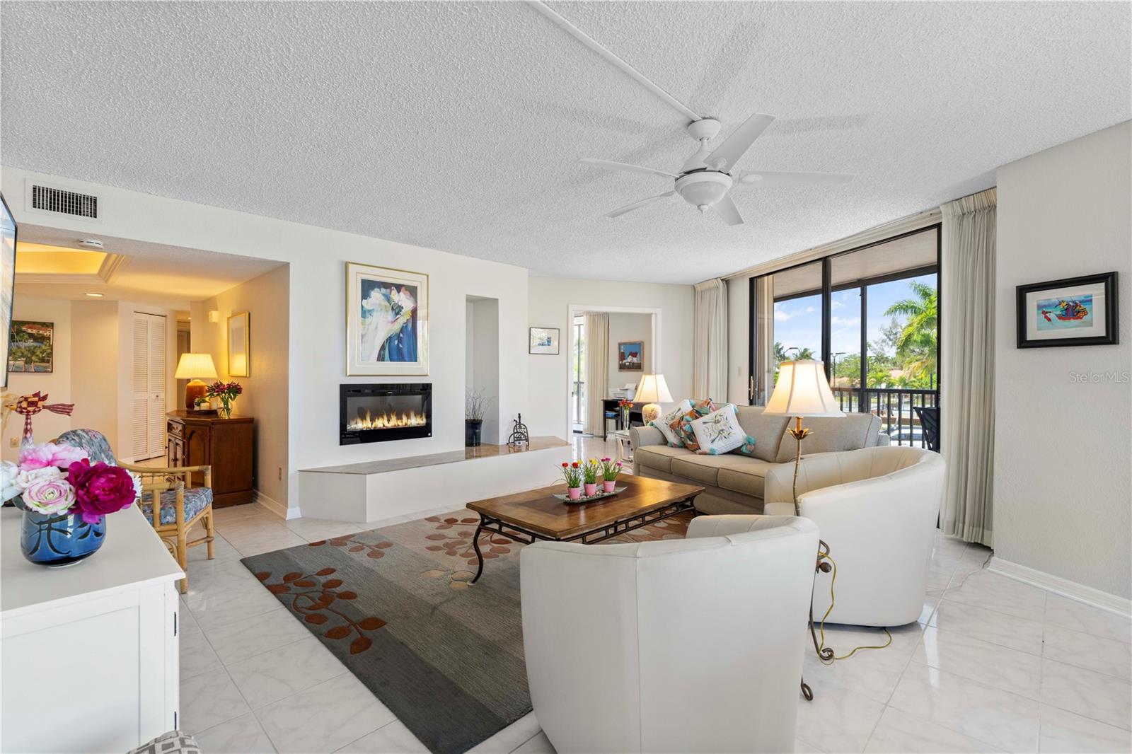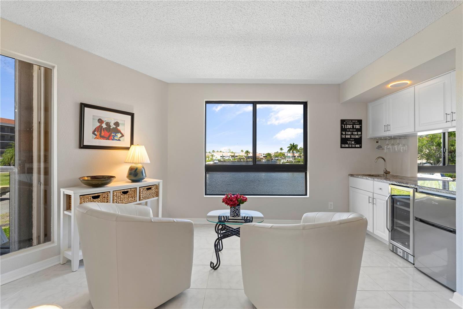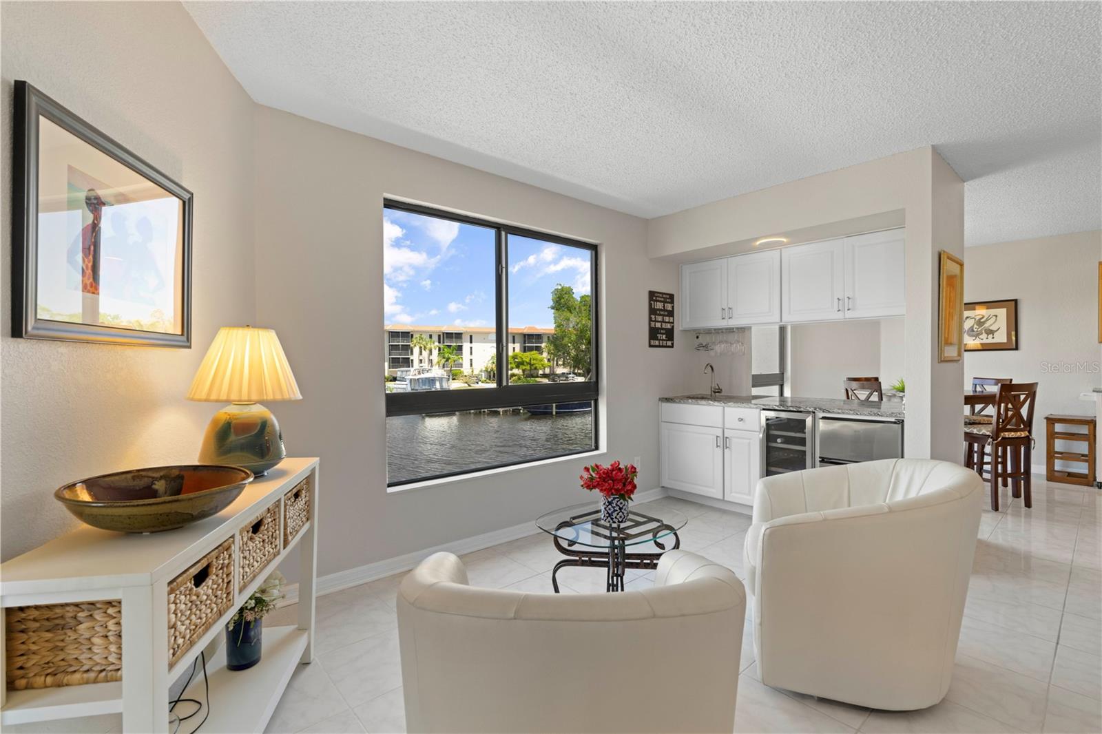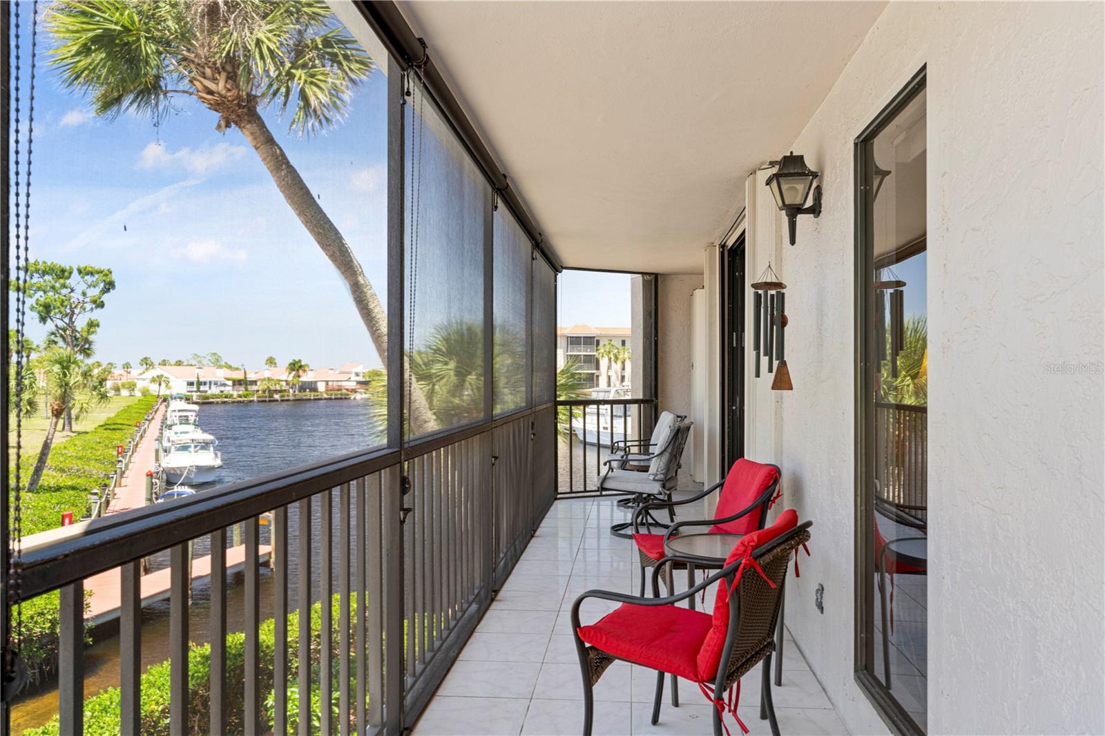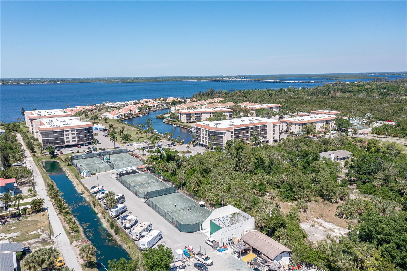 END-UNIT CONDO W/FABULOUS CANAL VIEW AT EMERALD POINTE! Looking for a place that feels like an all-inclusive resort? Look no further...this 3 bed/2 bath, corner unit w/over 2,100 sq ft of living space at the gated community of Emerald Pointe HAS IT ALL! Spectacular water front view, Charlotte Harbor and Gulf boating access, spacious open floor plan w/living room & formal dining room w/a wall of storage, tons of additional storage, large bedrooms, wet bar & chef's kitchen. Resort-like amenities include full-time tennis pro w/4 Har-Tru clay tennis courts, pickleball courts, as well as Bocce ball, putting green, three swimming pools, a clubhouse & a fitness center. There's also the marina w/dock space available. Bring your boat and keep it just steps away. Dock space INCLUDED with HOA dues! Reach open water in mere minutes & enjoy some of the best fishing & boating in SW Florida. At time of listing, dock space is available. Community also has an active social calendar w/book clubs, bridge group, poker night, a crafting group and so much more that makes everyday feel like you're on vacation! This corner unit is flooded w/natural light thanks to large picture windows & multiple sliding glass doors. Living room has a wet bar & fireplace plus amazing canal view. Kitchen offers a breakfast bar, pantry plus ample cabinet & counter space. The adjacent breakfast area features front row seat to the lovely canal view. Large master suite offers an oversized, walk-in closet & private master bath plus walk-out access to the screened lanai. Unit comes w/an assigned, under-building parking space, private storage closet next to unit, & two storage lockers near parking spot. UPDATES include new range (2020), new wine cooler (2017), new mini-refrigerator (2022), new dishwasher (2022) & new AC (2020). Reasonable condo fees include all that you'd expect plus basic cable, internet, water & trash. There is a credit to monthly fees for 2025 of $169 per month due to over-payment for previous special assessments regarding Hurricane Ian, resulting in monthly fees of about $600 / month. There are currently no special assessments outstanding for the building. Management office on site. Make appointment today.