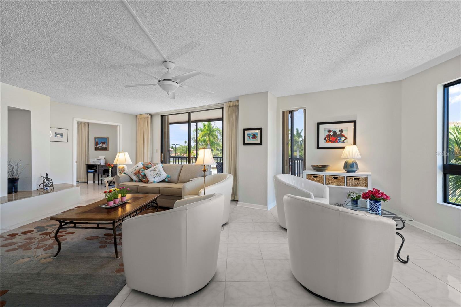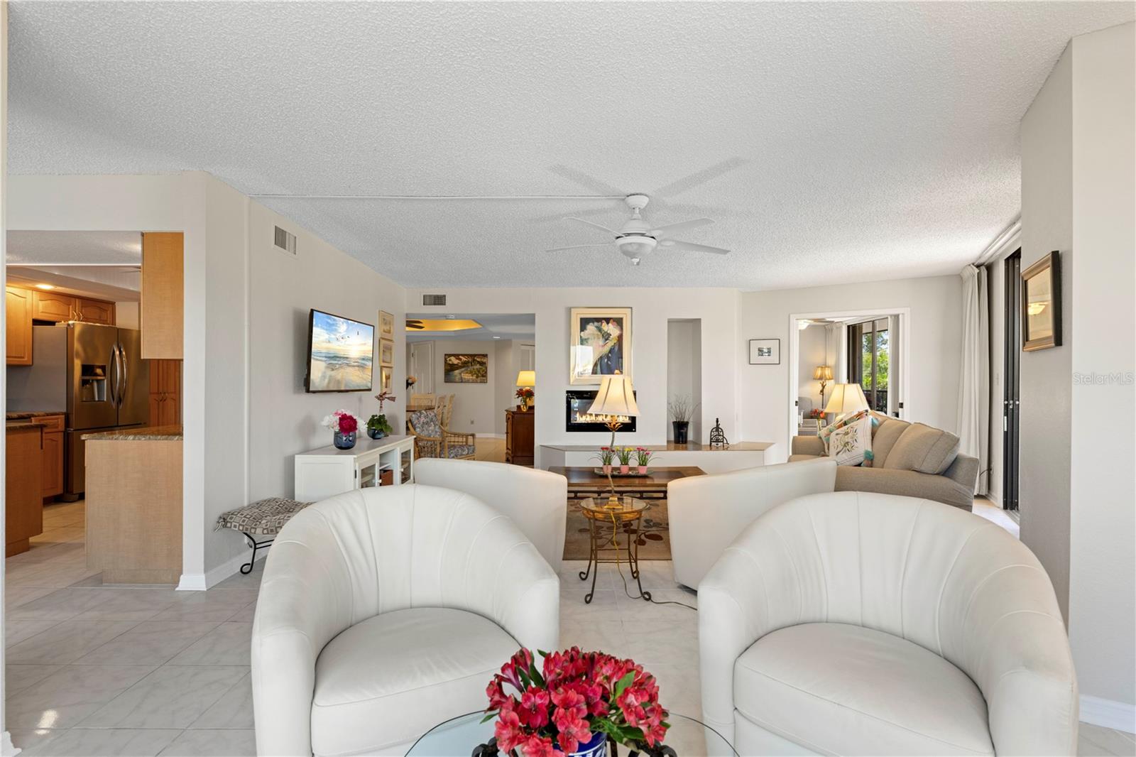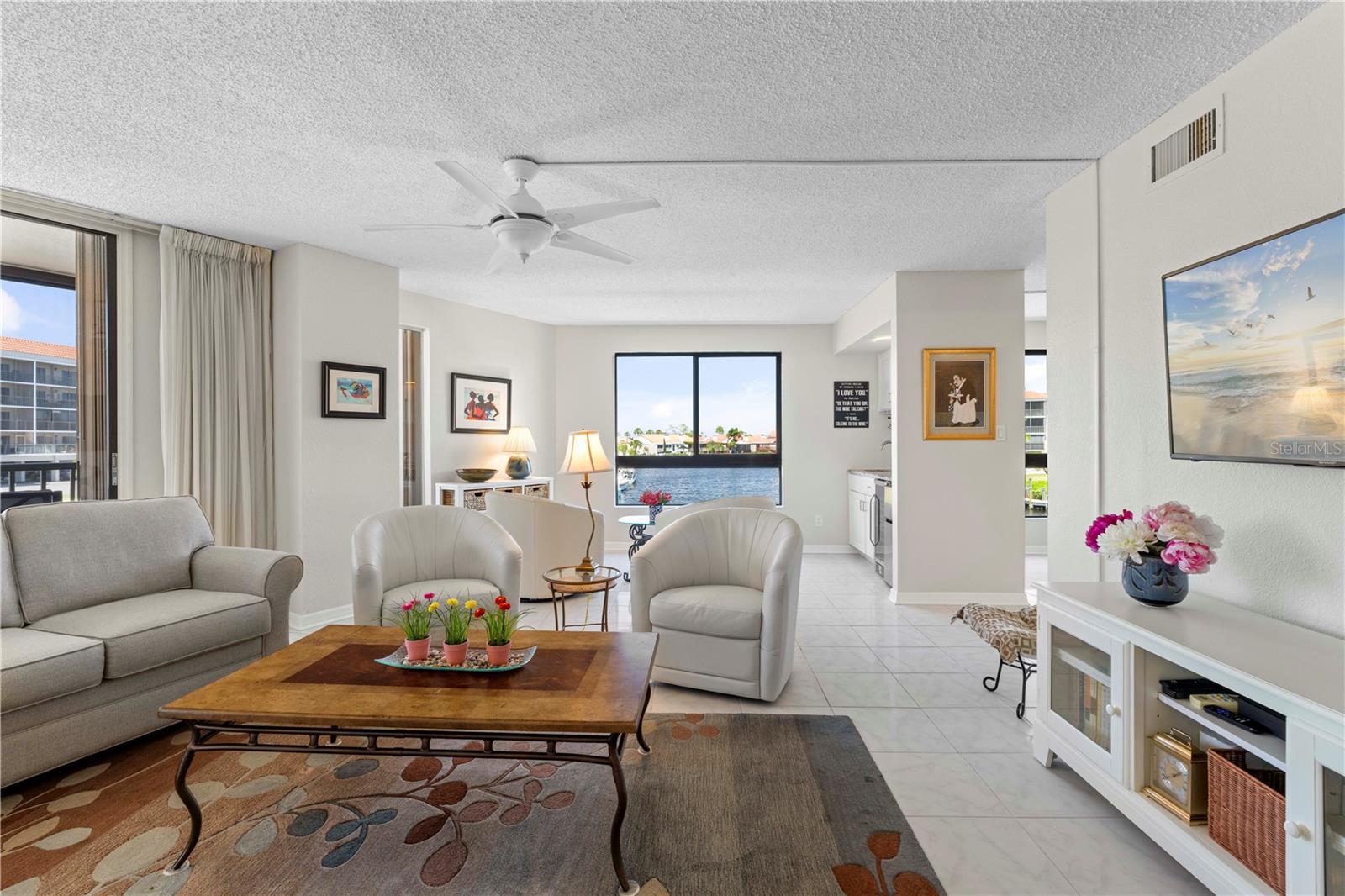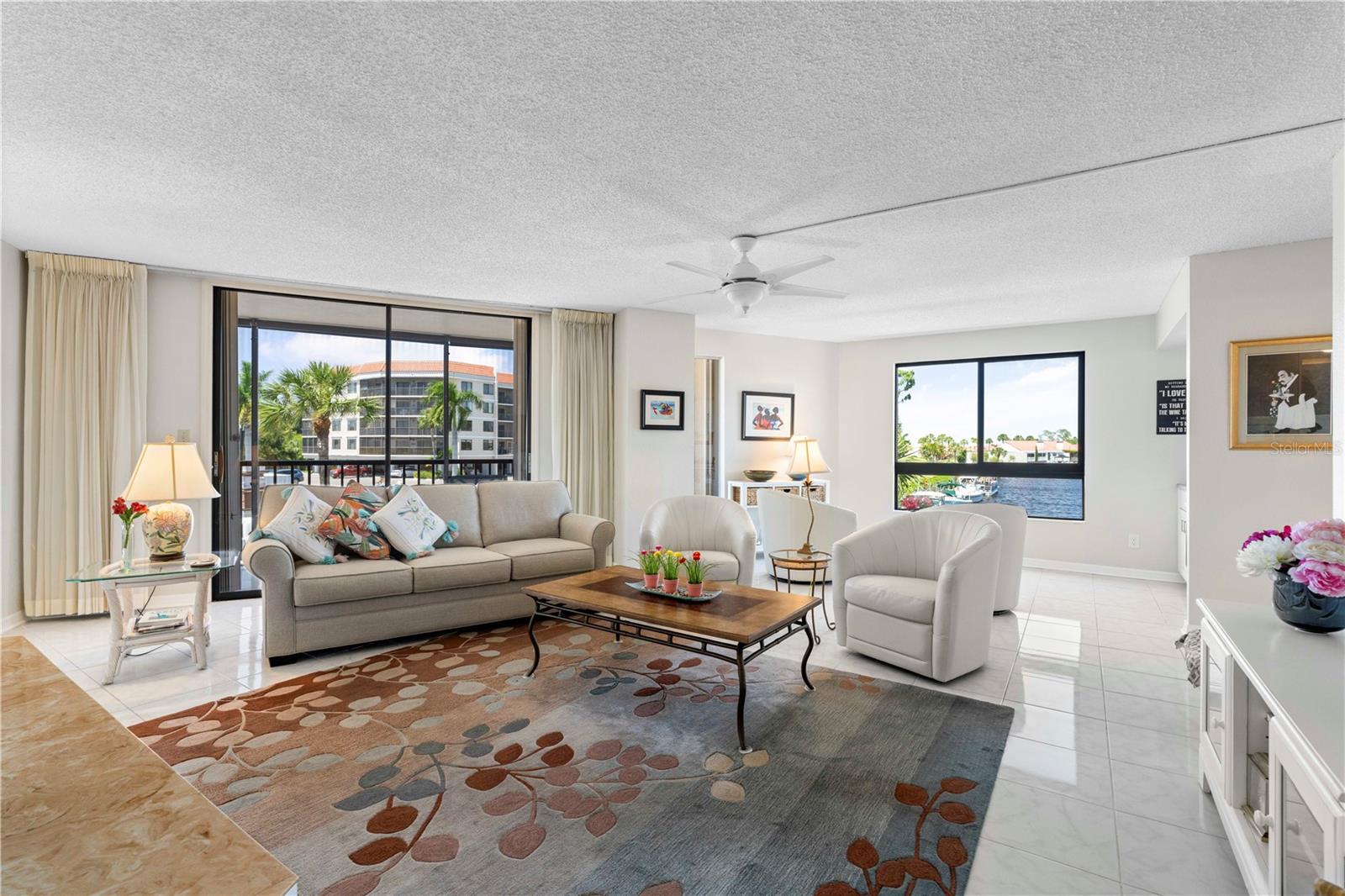 END-UNIT CONDO W/FABULOUS CANAL VIEW AT EMERALD POINTE! Looking for a place that feels like an all-inclusive resort? Look no further...this 3 bed/2 bath, corner unit w/over 2,100 sq ft of living space at the gated community of Emerald Pointe HAS IT ALL! Spectacular water front view, Charlotte Harbor and Gulf boating access, spacious open floor plan w/living room & formal dining room w/a wall of storage, tons of additional storage, large bedrooms, wet bar & chef's kitchen. Resort-like amenities include full-time tennis pro w/4 Har-Tru clay tennis courts, pickleball courts, as well as Bocce ball, putting green, three swimming pools, a clubhouse & a fitness center. There's also the marina w/dock space available. Bring your boat and keep it just steps away. Dock space INCLUDED with HOA dues! Reach open water in mere minutes & enjoy some of the best fishing & boating in SW Florida. At time of listing, dock space is available. Community also has an active social calendar w/book clubs, bridge group, poker night, a crafting group and so much more that makes everyday feel like you're on vacation! This corner unit is flooded w/natural light thanks to large picture windows & multiple sliding glass doors. Living room has a wet bar & fireplace plus amazing canal view. Kitchen offers a breakfast bar, pantry plus ample cabinet & counter space. The adjacent breakfast area features front row seat to the lovely canal view. Large master suite offers an oversized, walk-in closet & private master bath plus walk-out access to the screened lanai. Unit comes w/an assigned, under-building parking space, private storage closet next to unit, & two storage lockers near parking spot. UPDATES include new range (2020), new wine cooler (2017), new mini-refrigerator (2022), new dishwasher (2022) & new AC (2020). Reasonable condo fees include all that you'd expect plus basic cable, internet, water & trash. There is a credit to monthly fees for 2025 of $169 per month due to over-payment for previous special assessments regarding Hurricane Ian, resulting in monthly fees of about $600 / month. There are currently no special assessments outstanding for the building. Management office on site. Make appointment today.