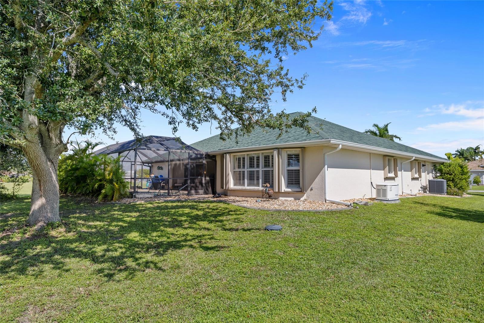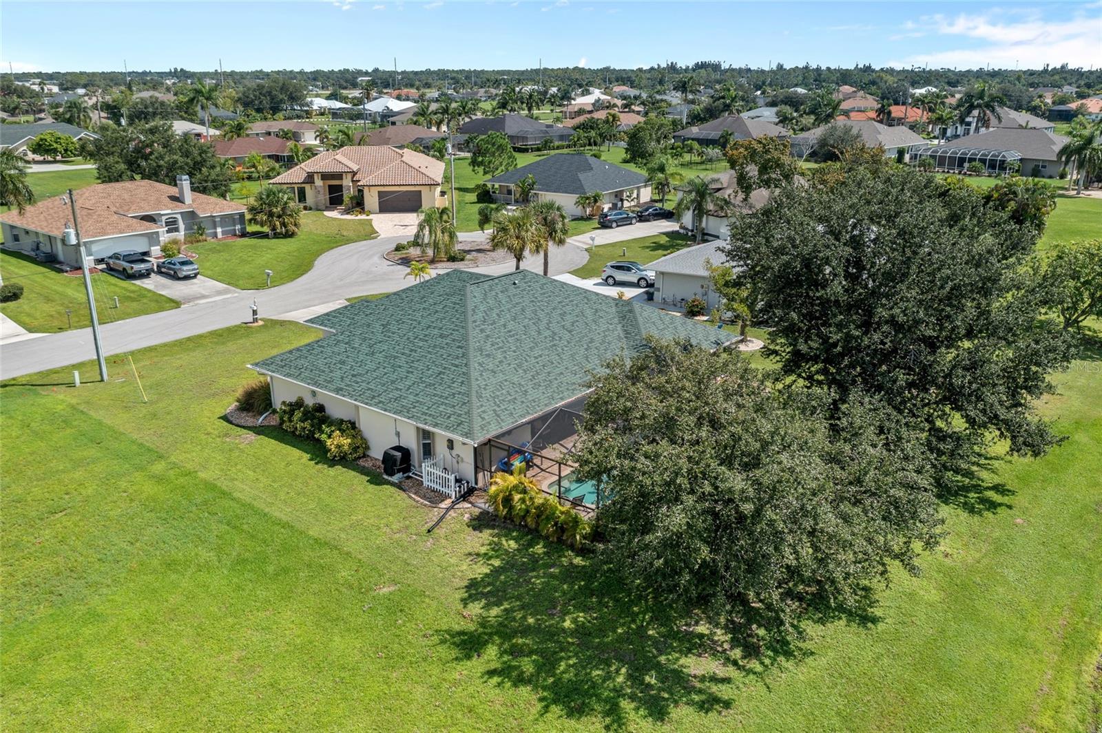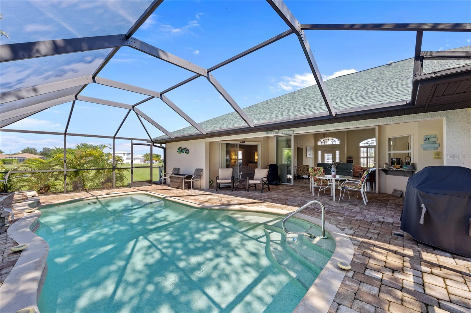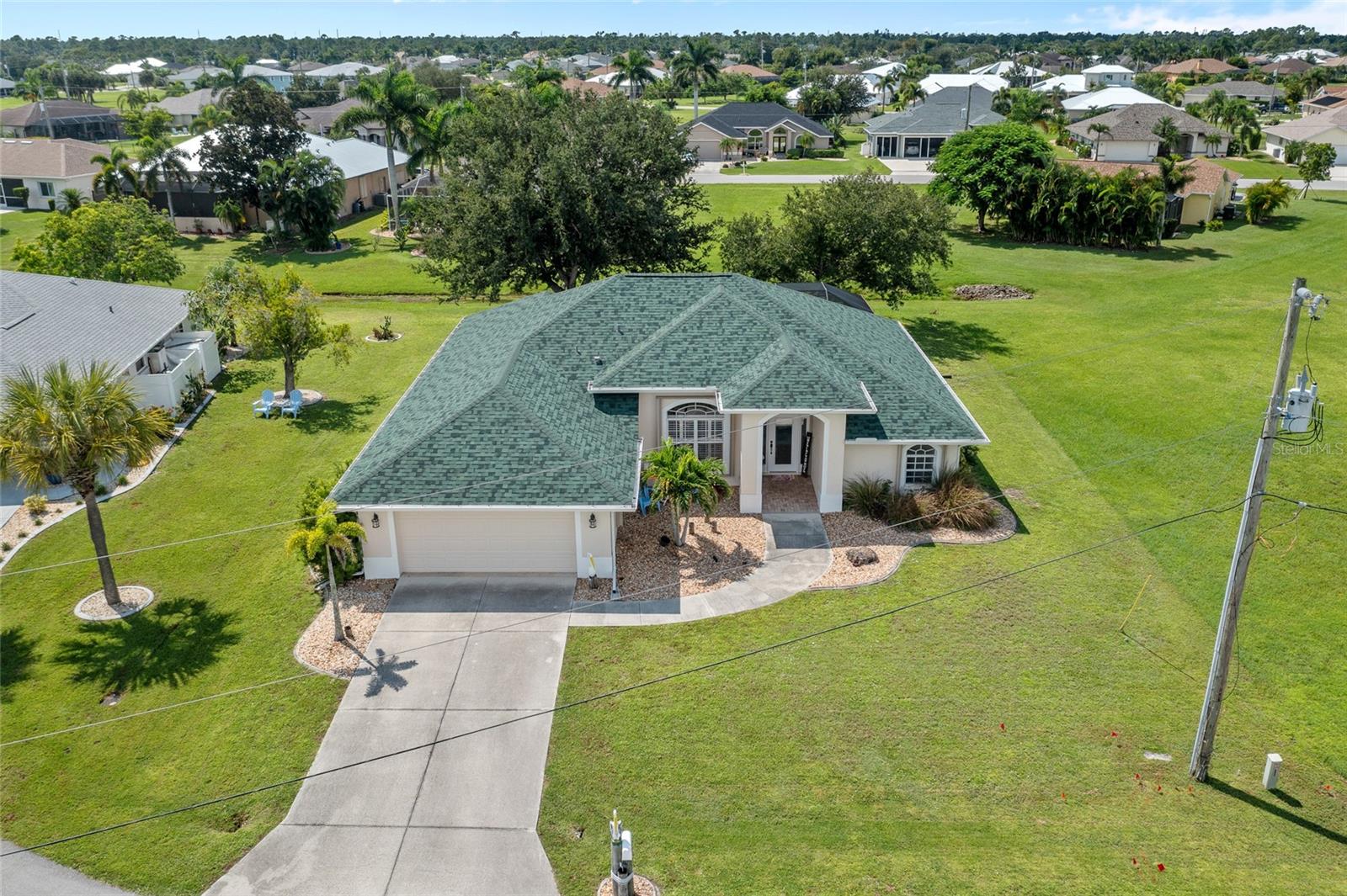 Impeccably remodeled 3-bedroom, 2-bath, 2-car garage pool home nestled on a quiet cul-de-sac street Burnt Store Meadows. This home boasts a serene greenbelt backdrop and a perfect blend of modern luxury with natural beauty. Step inside and be greeted by an open, airy floor plan, achieved by thoughtful architectural enhancements. High ceilings, neutral décor palette and 24-inch diagonal tiles, complemented by plantation shutters, create a bright and inviting atmosphere. The living room features a large pocketing slider that opens to the lanai and pool, seamlessly blending indoor and outdoor living. The gourmet kitchen is equipped with new wood cabinetry, gleaming granite countertops, and state-of-the-art stainless appliances. A convenient breakfast bar makes it a perfect spot for casual dining or entertaining guests. Adjacent to the kitchen, the flexible living area is bathed in natural light, thanks to a wall of windows and an additional slider. Retreat to the generous primary suite, complete with a tray ceiling and private access to the lanai. The ensuite bath is a spa-like haven, featuring dual sinks and a Roman shower. The split floor plan ensures privacy, with two additional bedrooms and a separate full guest bath. Outdoor enthusiasts will love the covered lanai and screened, heated saltwater pool, surrounded by a paver deck, mature oak trees for shade and lush tropical landscaping. It's an ideal spot for relaxing or entertaining. This home is not just beautiful but also boasts practical features like a BRAND NEW 26KW WHOLE HOUSE GENERATOR (12/2024), full hurricane protection including electric shutters, new roof in 2023, exterior paint in 2023, air handler with UV lights for mold protection, plus not in a flood zone - all ensuring peace of mind. This deed restricted community is conveniently located with easy access to I-75, Punta Gorda Airport, restaurants, shopping, golf, and more, this home is an exceptional find. Experience the best of Florida living with a quick drive to downtown historic Punta Gorda, offering community events, entertainment, and world-class fishing and boating. Don’t miss the opportunity to make this exceptional home your new Florida retreat or permanent residence. Schedule your private showing today!