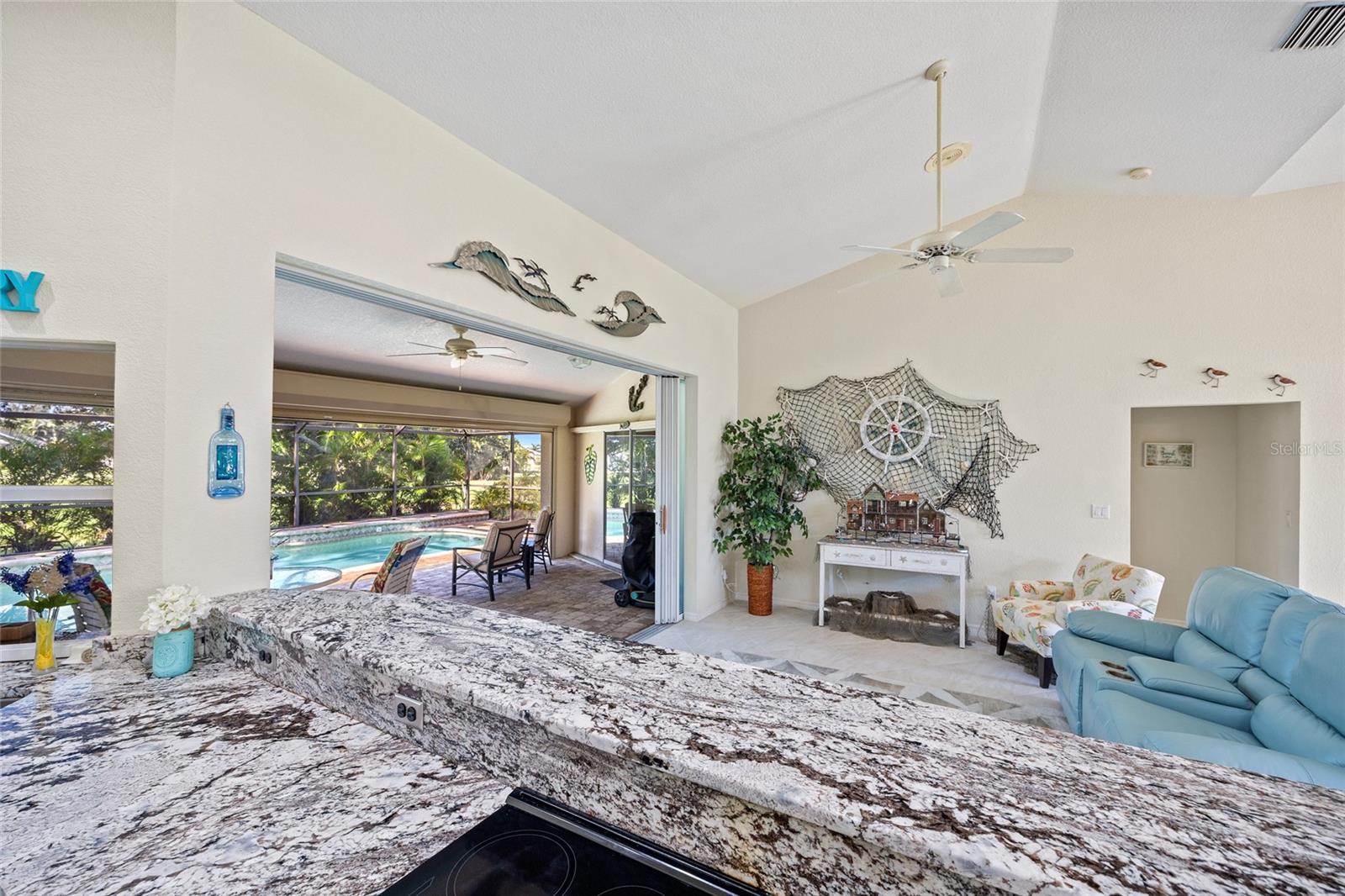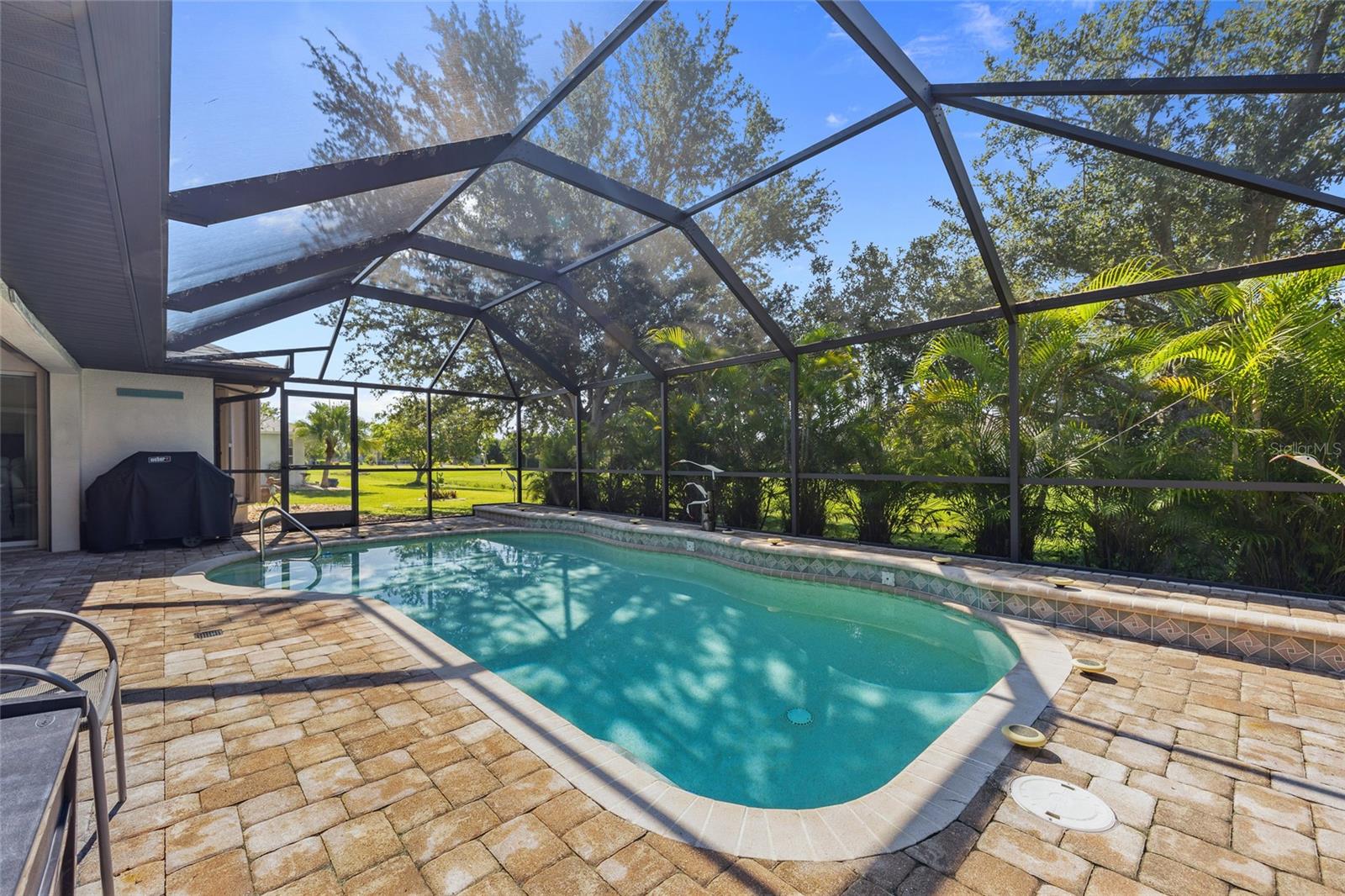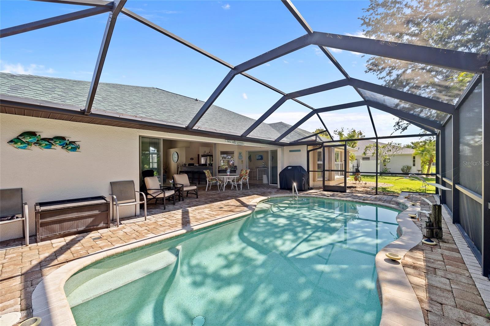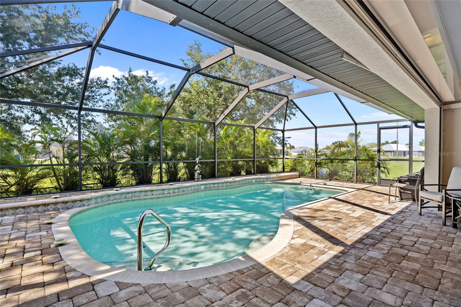 Impeccably remodeled 3-bedroom, 2-bath, 2-car garage pool home nestled on a quiet cul-de-sac street Burnt Store Meadows. This home boasts a serene greenbelt backdrop and a perfect blend of modern luxury with natural beauty. Step inside and be greeted by an open, airy floor plan, achieved by thoughtful architectural enhancements. High ceilings, neutral décor palette and 24-inch diagonal tiles, complemented by plantation shutters, create a bright and inviting atmosphere. The living room features a large pocketing slider that opens to the lanai and pool, seamlessly blending indoor and outdoor living. The gourmet kitchen is equipped with new wood cabinetry, gleaming granite countertops, and state-of-the-art stainless appliances. A convenient breakfast bar makes it a perfect spot for casual dining or entertaining guests. Adjacent to the kitchen, the flexible living area is bathed in natural light, thanks to a wall of windows and an additional slider. Retreat to the generous primary suite, complete with a tray ceiling and private access to the lanai. The ensuite bath is a spa-like haven, featuring dual sinks and a Roman shower. The split floor plan ensures privacy, with two additional bedrooms and a separate full guest bath. Outdoor enthusiasts will love the covered lanai and screened, heated saltwater pool, surrounded by a paver deck, mature oak trees for shade and lush tropical landscaping. It's an ideal spot for relaxing or entertaining. This home is not just beautiful but also boasts practical features like a BRAND NEW 26KW WHOLE HOUSE GENERATOR (12/2024), full hurricane protection including electric shutters, new roof in 2023, exterior paint in 2023, air handler with UV lights for mold protection, plus not in a flood zone - all ensuring peace of mind. This deed restricted community is conveniently located with easy access to I-75, Punta Gorda Airport, restaurants, shopping, golf, and more, this home is an exceptional find. Experience the best of Florida living with a quick drive to downtown historic Punta Gorda, offering community events, entertainment, and world-class fishing and boating. Don’t miss the opportunity to make this exceptional home your new Florida retreat or permanent residence. Schedule your private showing today!