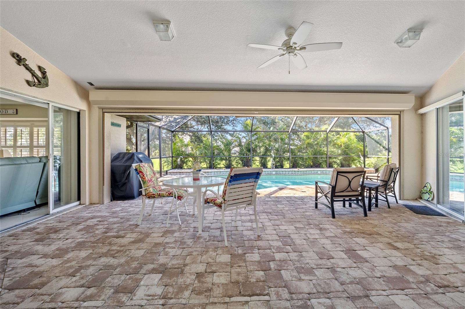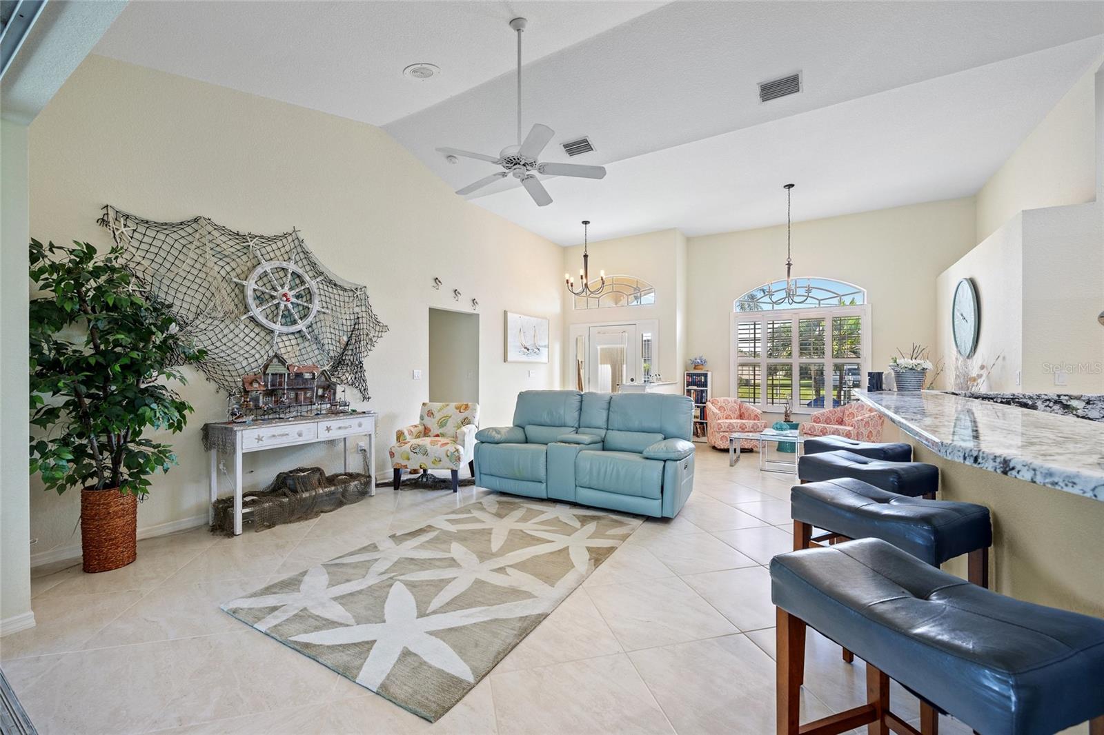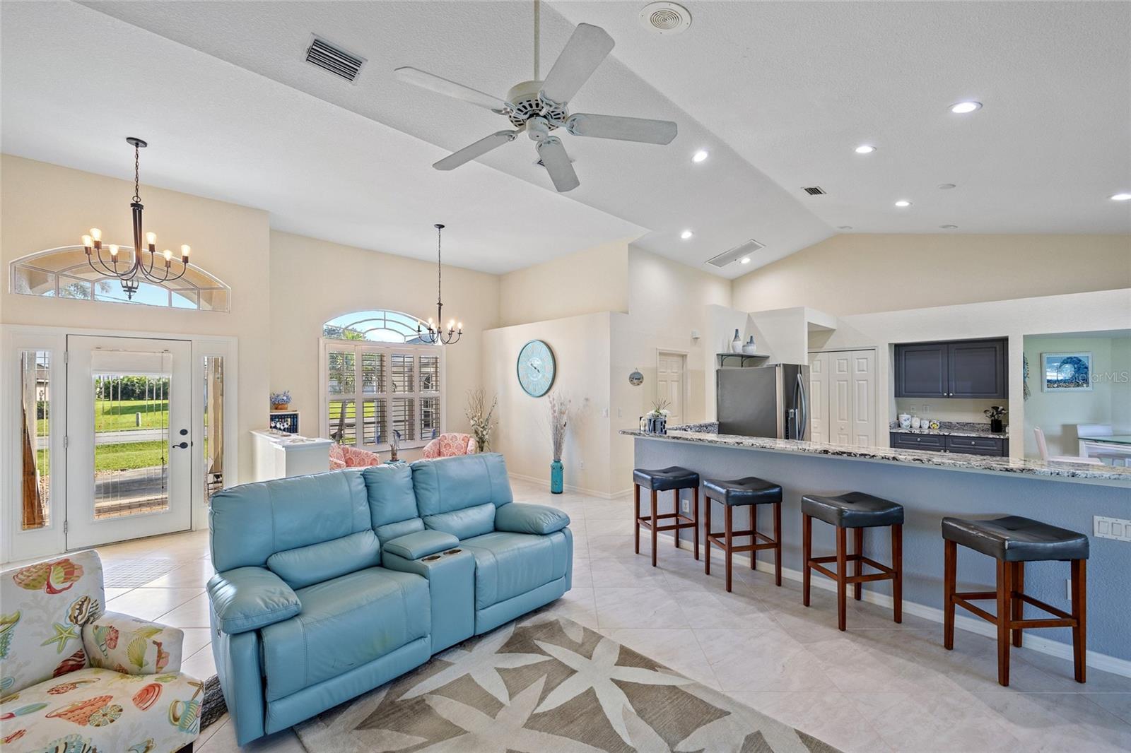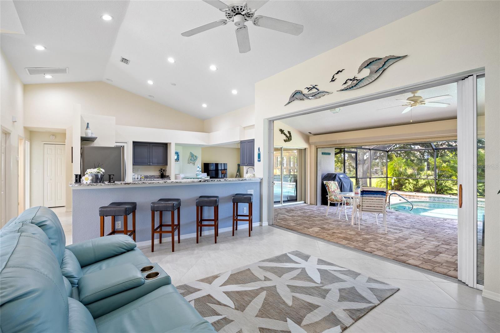 Impeccably remodeled 3-bedroom, 2-bath, 2-car garage pool home nestled on a quiet cul-de-sac street Burnt Store Meadows. This home boasts a serene greenbelt backdrop and a perfect blend of modern luxury with natural beauty. Step inside and be greeted by an open, airy floor plan, achieved by thoughtful architectural enhancements. High ceilings, neutral décor palette and 24-inch diagonal tiles, complemented by plantation shutters, create a bright and inviting atmosphere. The living room features a large pocketing slider that opens to the lanai and pool, seamlessly blending indoor and outdoor living. The gourmet kitchen is equipped with new wood cabinetry, gleaming granite countertops, and state-of-the-art stainless appliances. A convenient breakfast bar makes it a perfect spot for casual dining or entertaining guests. Adjacent to the kitchen, the flexible living area is bathed in natural light, thanks to a wall of windows and an additional slider. Retreat to the generous primary suite, complete with a tray ceiling and private access to the lanai. The ensuite bath is a spa-like haven, featuring dual sinks and a Roman shower. The split floor plan ensures privacy, with two additional bedrooms and a separate full guest bath. Outdoor enthusiasts will love the covered lanai and screened, heated saltwater pool, surrounded by a paver deck, mature oak trees for shade and lush tropical landscaping. It's an ideal spot for relaxing or entertaining. This home is not just beautiful but also boasts practical features like a BRAND NEW 26KW WHOLE HOUSE GENERATOR (12/2024), full hurricane protection including electric shutters, new roof in 2023, exterior paint in 2023, air handler with UV lights for mold protection, plus not in a flood zone - all ensuring peace of mind. This deed restricted community is conveniently located with easy access to I-75, Punta Gorda Airport, restaurants, shopping, golf, and more, this home is an exceptional find. Experience the best of Florida living with a quick drive to downtown historic Punta Gorda, offering community events, entertainment, and world-class fishing and boating. Don’t miss the opportunity to make this exceptional home your new Florida retreat or permanent residence. Schedule your private showing today!