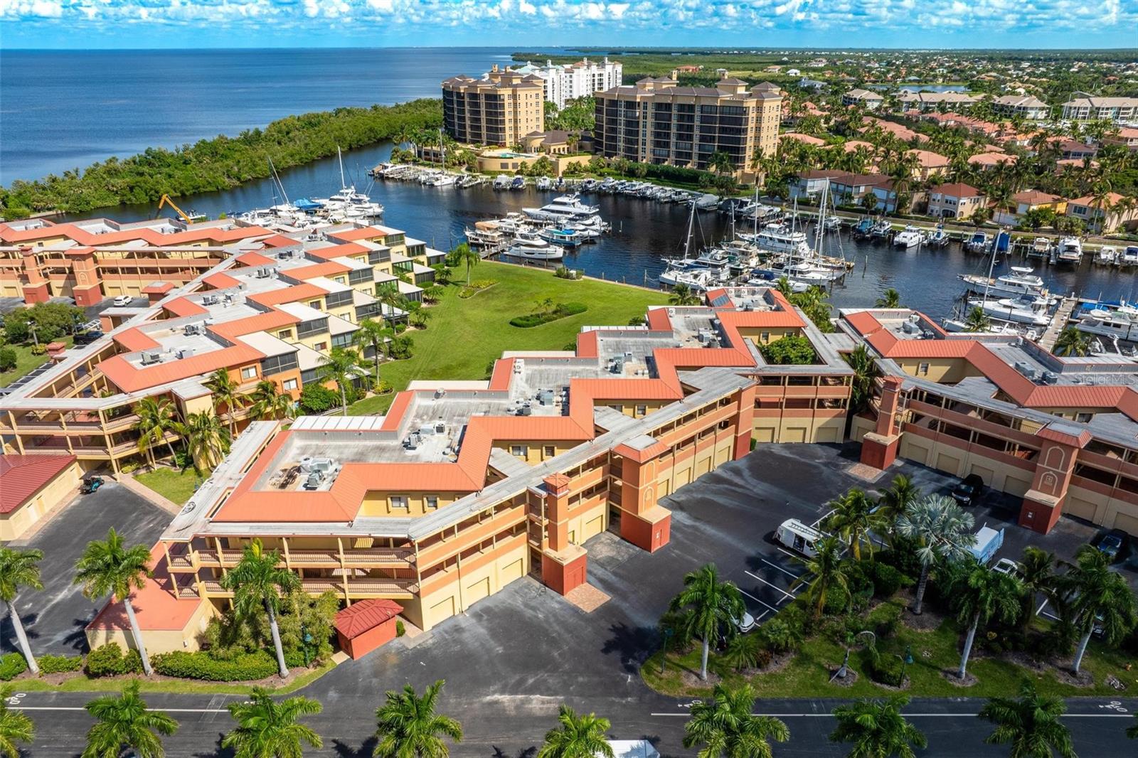 Welcome to Marina Southshore Nestled within the premier waterfront community of Burnt Store Marina & Country Club, this inviting ground-level end unit offers a perfect mix of comfort and practicality. Featuring three spacious bedrooms and lovely views of the south marina basin, this home is ready for you to move in and make it your own. Step onto the oversized glass-enclosed lanai, adding 500 square feet of versatile living space—ideal for unwinding or hosting friends. The open-concept layout feels bright and welcoming, with floor-to-ceiling sliding doors that blend indoor and outdoor living effortlessly. The living and dining areas are generously sized, offering plenty of room for furniture arrangements to suit your style, whether for cozy nights in or casual gatherings. The well-equipped kitchen boasts new appliances, ample storage with pull-out drawers, and a handy breakfast bar—perfect for quick meals or entertaining. The roomy master bedroom overlooks the harbor and features an ensuite bath with updated dual vanities and a walk-in shower, plus a large walk-in closet for all your storage needs. The split floorplan ensures privacy for guests, with oversized bedrooms and a thoughtfully designed guest bathroom. Practical touches include a spacious laundry room with a new "Smart" water heater, whole-condo water filtration, and an oversized one-car garage—great for your vehicle or golf cart, complete with extra storage, a new opener, and an outside keypad. This home is truly move-in ready, featuring AC from '22, new LVP, tile, and carpet flooring from '24, fresh paint throughout, and a new condo roof in '24. Marina Southshore is a gated community with a heated pool, a charming clubhouse, and plenty of green space for outdoor enjoyment—all within the secure, friendly confines of Burnt Store Marina. With direct access to Charlotte Harbor and the Gulf of Mexico, you’re steps away from the Southwest Florida lifestyle. Join neighbors for tennis, pickleball, or social activities, and settle into a home that’s comfortable and ready to go, with an optional complete furniture package available. **Exciting offer! Seller will place $5,000 in escrow for one year to cover any potential future assessments. If no assessments arise during that time, the buyer will receive a $2,500 credit at the end of one year (at closing date) — providing peace of mind and added value!