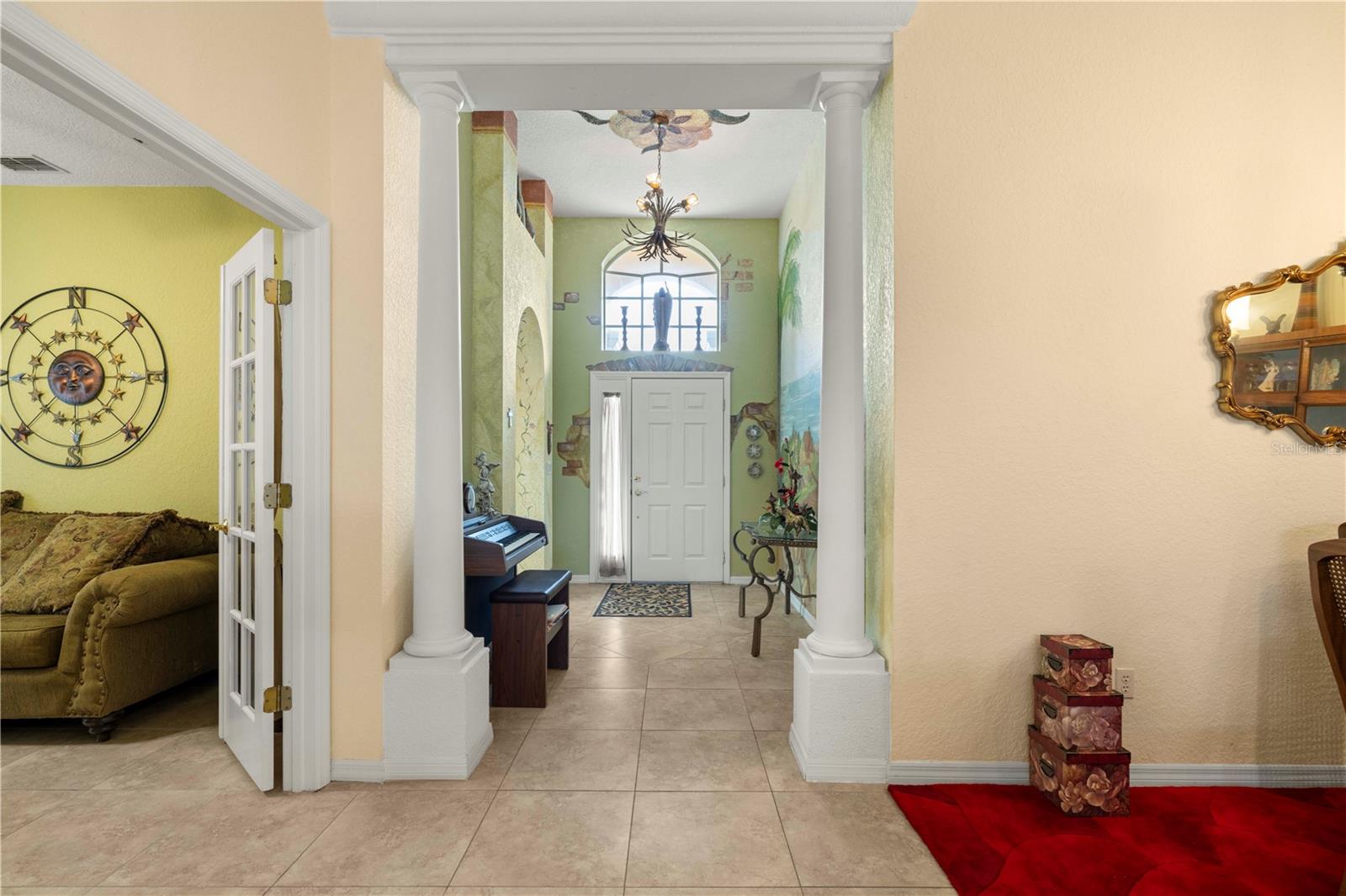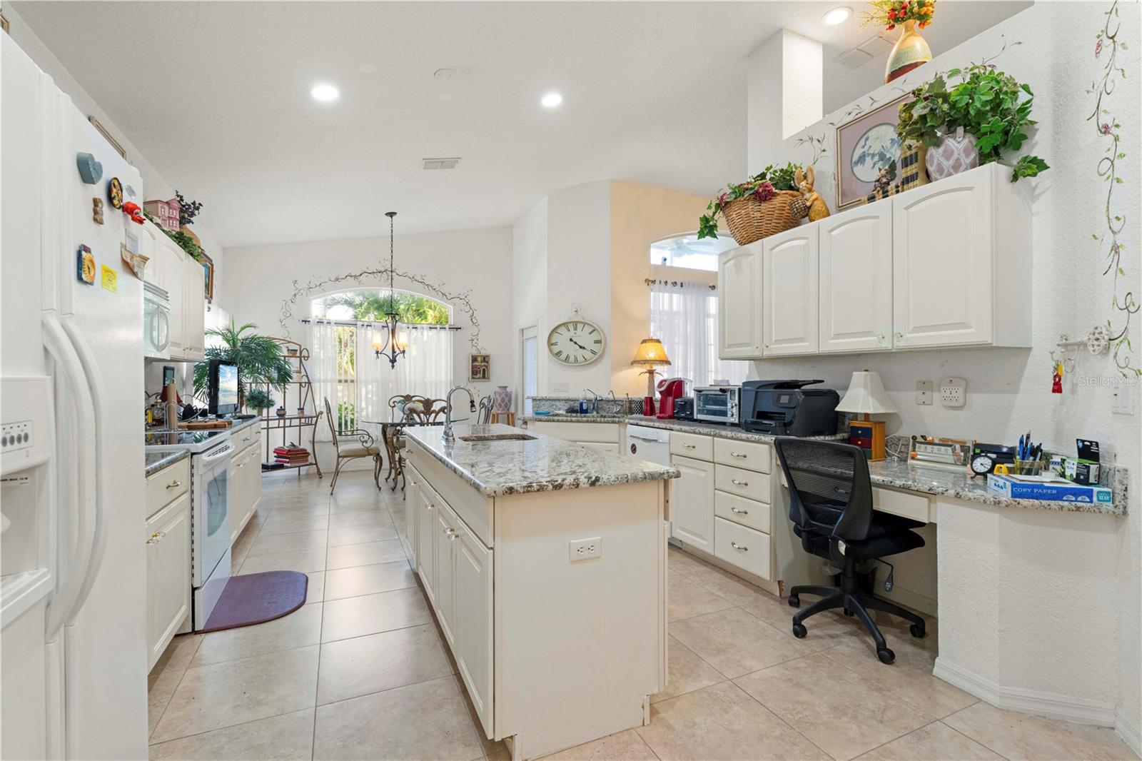 LIVE LIKE YOU'RE ON VACATION IN THE GATED COMMUNITY OF KINGS GATE! Check out this 2 bed/2 bath + den home in the gated community of Kings Gate. Fresco-style mural greets you as you enter the home. The interior layout of the home features a great room w/soaring cathedral ceilings, two large bedrooms & a den. The large kitchen boasts a built-in recipe desk, center island & closet pantry. The master suite boasts a large en-suite master bath w/oversized walk-in closet. Guest bedroom is tucked away off the entry w/the adjacent guest bath allowing owners & guests alike a bit of privacy. The den makes a great home office or additional 3rd guest room, if needed. Great room opens to an enclosed lanai w/vinyl screens ensuring you can make use of the space in any type of weather. Enjoy the best of resort-style living at Kings Gate It offers an 18-hole executive golf course, year-round heated Olympic-sized pool, clubhouse, fitness center, computer room, billiards, tennis courts, bocce ball, lawn bowling, horseshoes & shuffleboard. The Lion's Den is the community's on-site restaurant. You don't have to go far for lunch or dinner, if you don't want to. Kings Gate has a full-time activities director - ensuring that there is always something fun & entertaining to do! Golf-cart friendly community means you don't have to take your car to the clubhouse. Nearby shopping center offers grocery & pharmacy so you can make running errands a quick trip. Location of several nearby restaurants ensures you don't have to go far if you're looking for variety. Start living your Florida dream here. Neighborhood has well-maintained, tropical landscaping providing a manicured & elegant feel throughout.