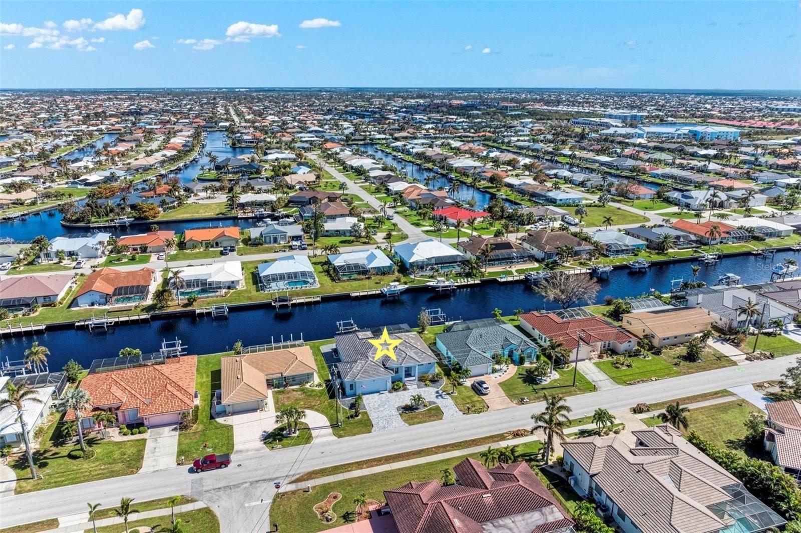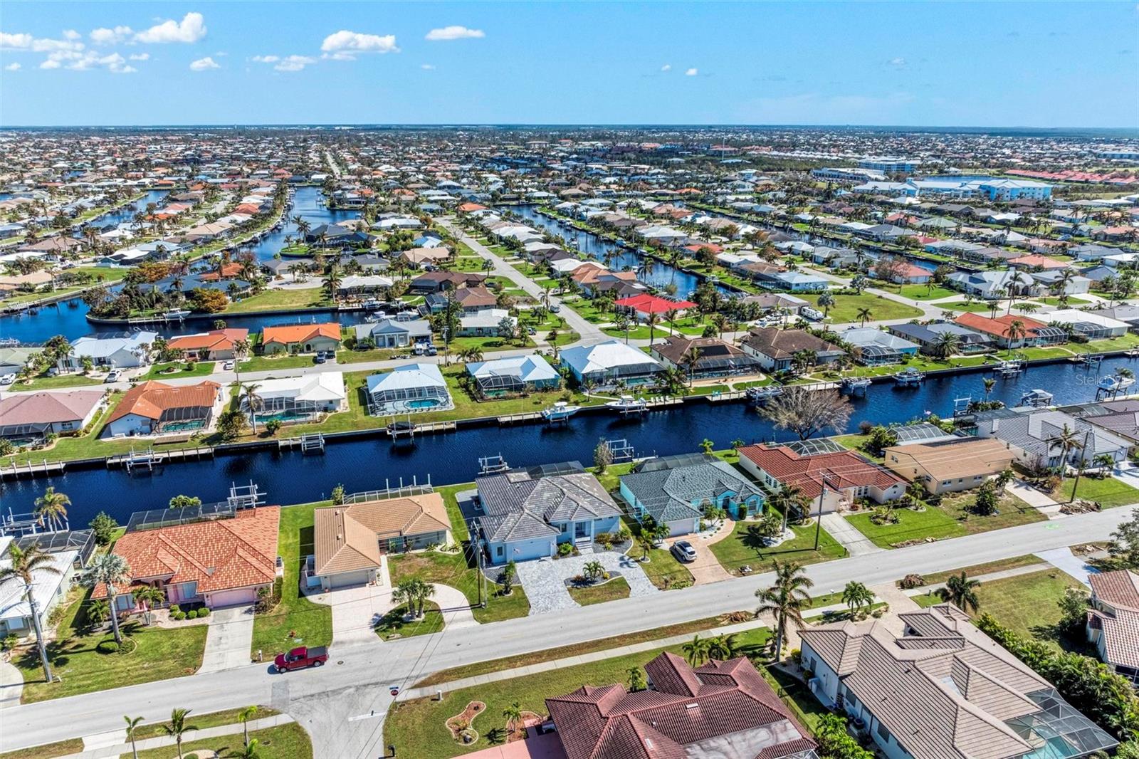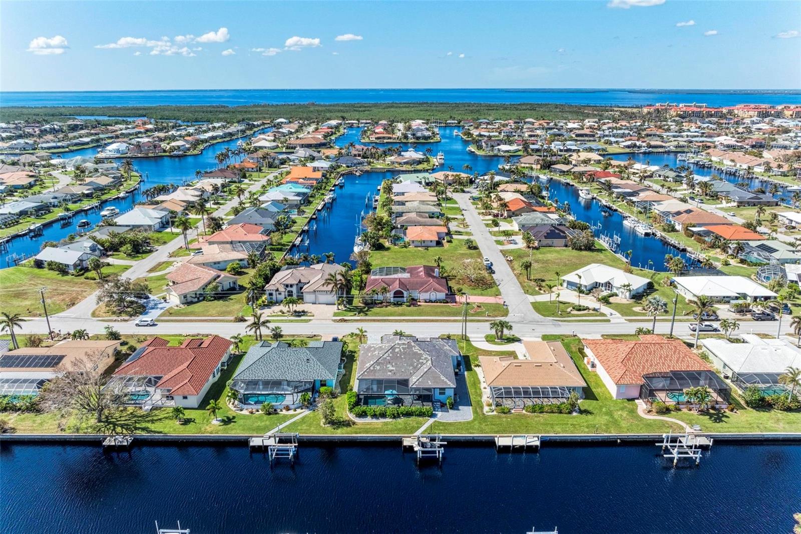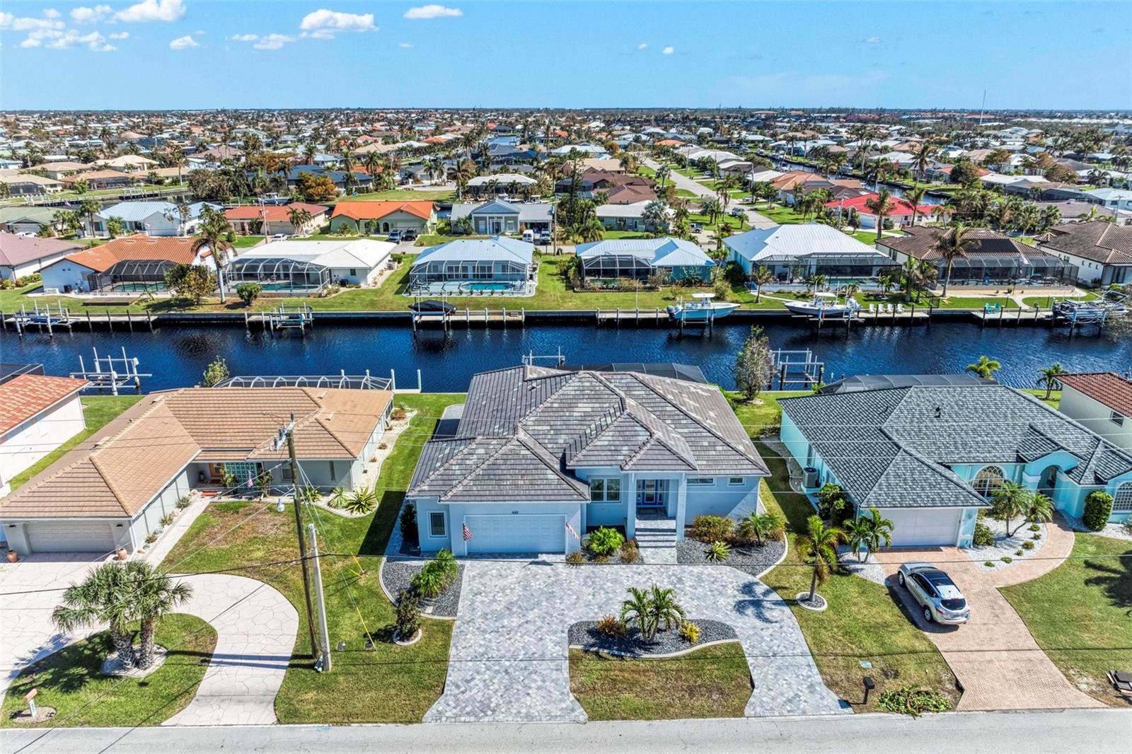 Like new, clean and MOVE IN READY! 2021 CUSTOM BUILT WATERFRONT, POOL home in Punta Gorda Isles. DIRECT POWER BOATING ACCESS TO CHARLOTTE HARBOR AND BEYOND. Reach open water in 15 minutes or less! Enjoy having your boat in your backyard with your own private CONCRETE DOCK, 10,000 BOAT LIFT AND CITY MAINTAINED CONCRETE SEAWALL. OPEN CONCEPT Florida living with split bedrooms offering you and your guests privacy. THIS HOME HAS THE BEST CLOSETS I HAVE SEEN WITH FLOOR TO CEILING SHELVES IN ALL CLOSETS! Lots of natural light fills this home through multiple IMPACT GLASS WINDOWS INCLUDING TRANSOM WINDOWS. The floors are wood look luxury vinyl throughout the home and are easy to maintain. The kitchen is at the center of the home featuring a HUGE QUARTZ ISLAND WITH ROOM FOR 6 CHAIRS, white shaker style cabinetry with ample storage space BUILT IN STAINLESS APPLIANCES AND CUSTOM RANGE HOOD WITH LIGHTS AND FANS! All appliances will convey! GENERAC GENERATOR with buried propane tank and IMPACT GLASS WINDOWS + HURRICANE SHUTTERS offer PEACE OF MIND! The GARAGE IS OVERSIZED and your huge CIRCULAR BRICK PAVER DRIVEWAY greets you at the entrance of the home. Call today for a showing and for all of the details! Punta Gorda is located on Charlotte Harbor and is a boutique town with weekly farmer's markets, Fishermen's Village Waterfront Mall, waterfront dining, fine & casual dining, parks, boat ramps and SO MUCH MORE!