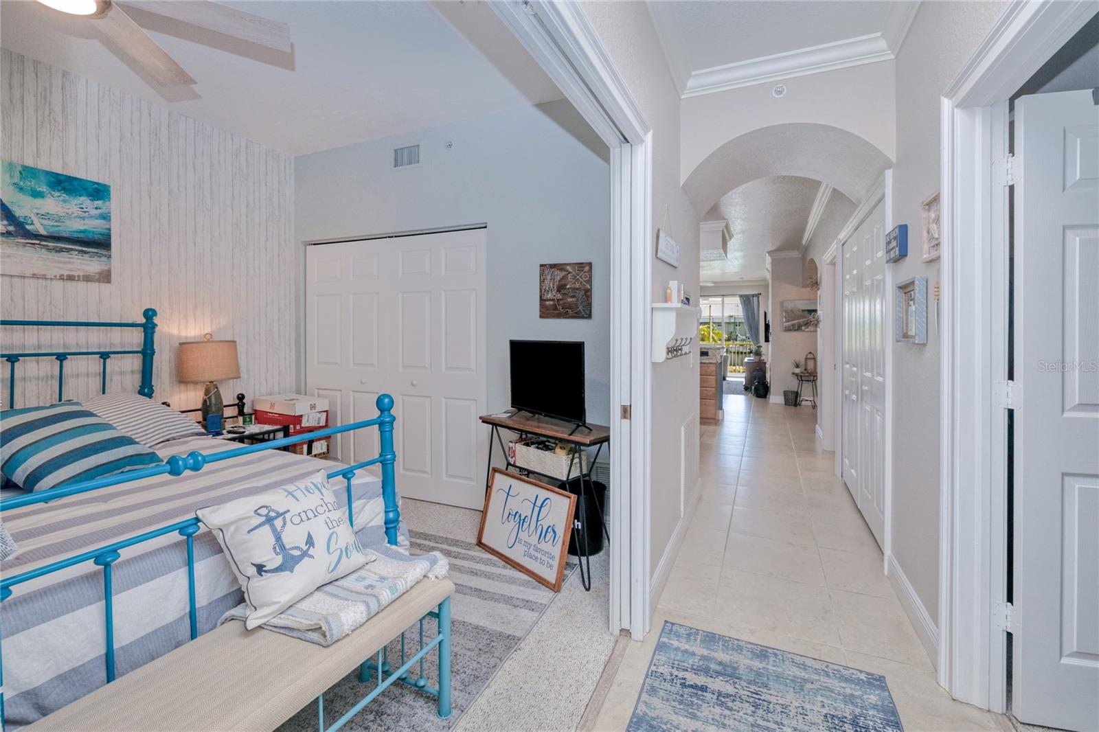 HUGE PRICE IMPROVEMNT TURNKEY!! This 3 bedroom, 2 bathroom condo is TURNKEY. The interior is smartly decorated with a touch of coastal colors. The exterior and new roof were done in 2023. Building is feshly painted There is NO damage from Helene or Milton making this a safe place to live.The are ceiling fans throughout. The one car garage provides plenty of storage space for all of the toys. This is a perfect place to kayak or paddle board right in front of the condo. You will just have to see this wonderful space and you will fall in love. This is close to Fisherman's Village, as well parks and downtown shops and dining. Just pack your bags and move right in.