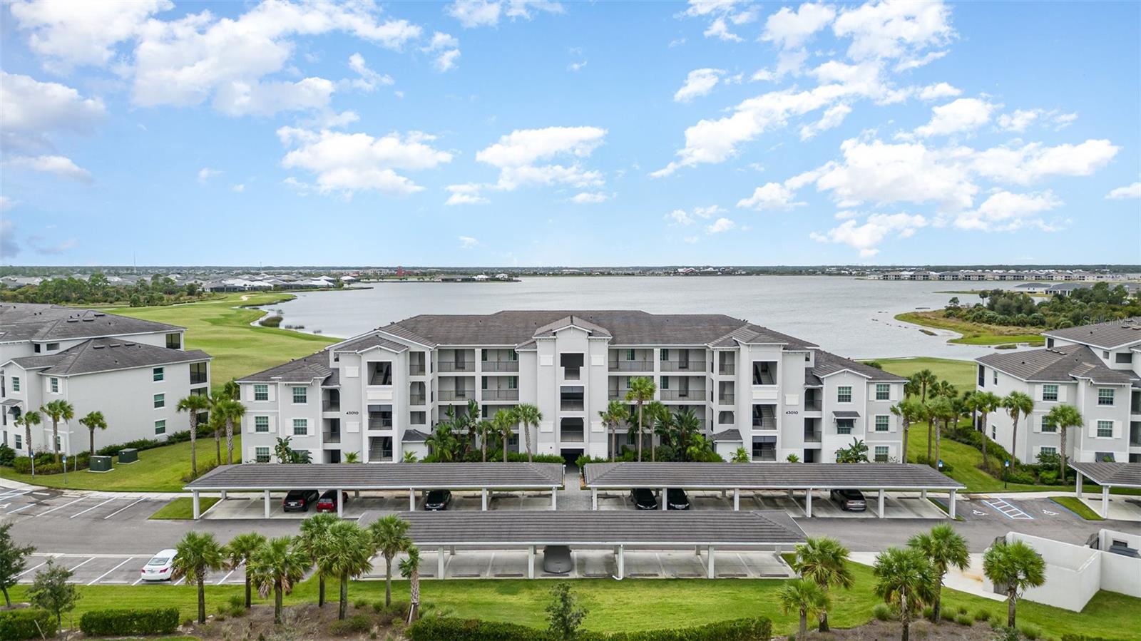 Discover this spectacular GOLF-BUNDLED Terrace condo overlooking Lake Babcock! The Birkdale unit features a luxurious owner’s suite and a comfortable spacious bedroom for guests. The open layout includes a kitchen, dining room, and living room, ideal for entertaining. The lanai provides an unbeatable southwest view of Lake Babcock, the golf course, Innovation Tower, and Founders Square, making it the perfect spot to relax and enjoy stunning Florida sunsets each evening. Truly a million dollar view! This condo features several added upgrades, including plantation shutters, a luxury shade at the sliding door, and privacy screens for the lanai. The gathering and kitchen areas boast upgraded flooring, and an ultraviolet light has been added to the HVAC system to reduce condensation and mold. Enjoy a range of luxurious amenities, including an 18-hole Gordon Lewis-designed golf course. After a round of golf, explore additional facilities like the resort-style pool, lap pool, gym, fitness classes, saunas, locker rooms, bocce ball court, pickleball, and tennis courts. Unwind with a casual meal at the Watershed Grill after your active day. The main clubhouse with fine dining and event rooms is coming soon. Along with the main pool, there are three satellite pools in Babcock National. Owners also have access to Babcock Ranch amenities, such as two community pools, parks, hiking trails, a dog park, restaurants, and shopping.